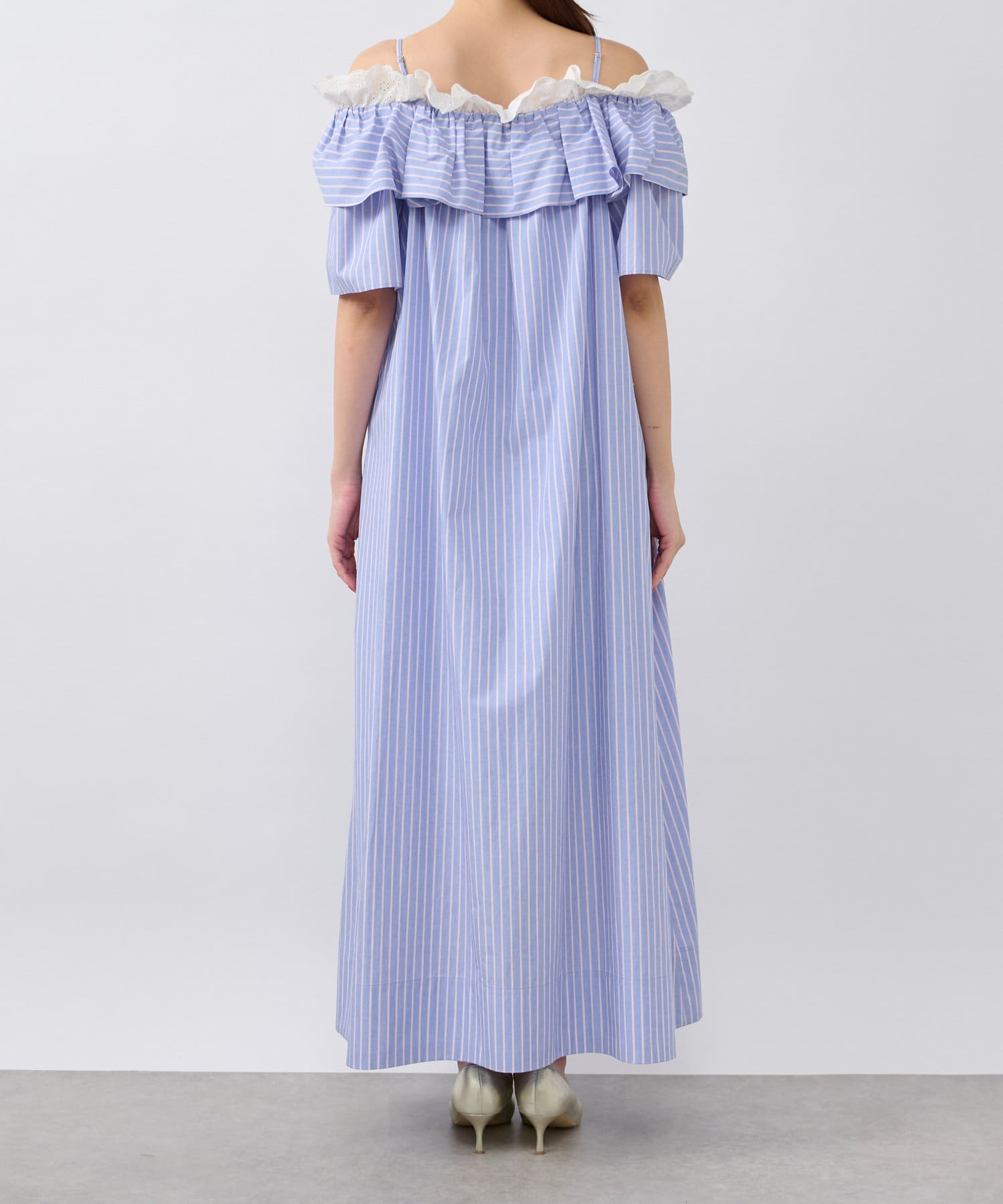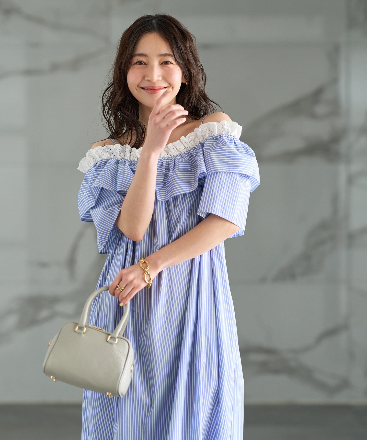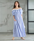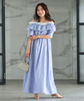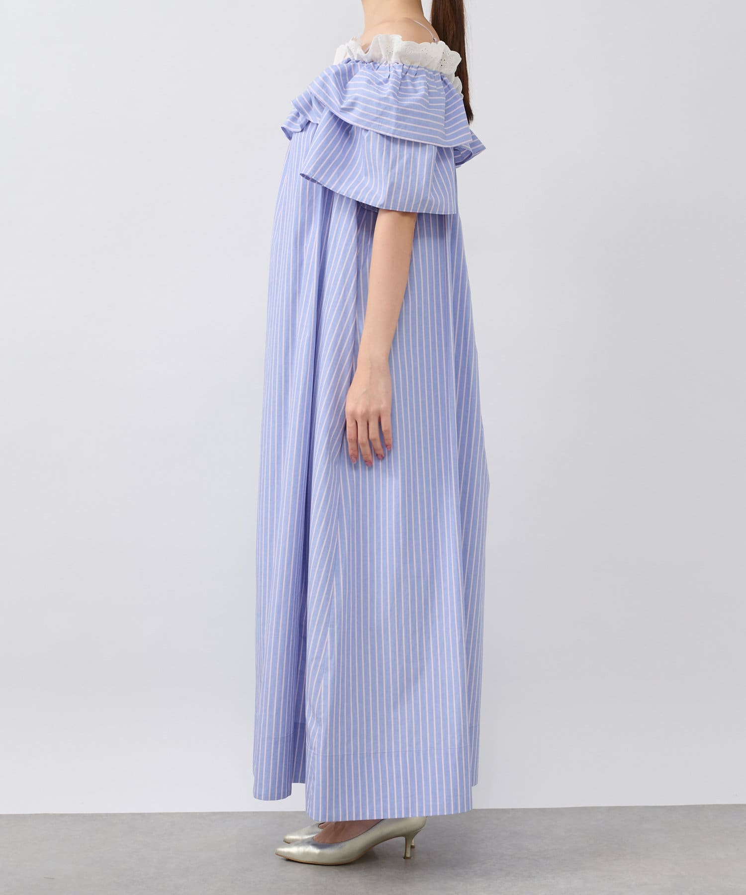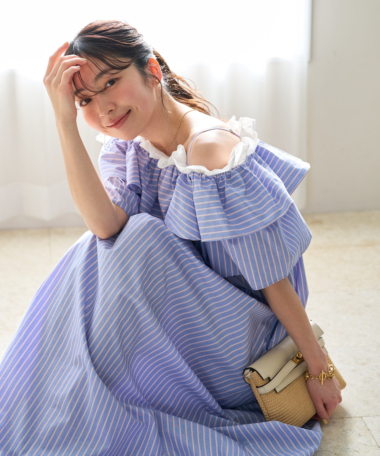 胸元のフリルと白レース使いで大人の可愛いを詰め込んだマキシワンピース