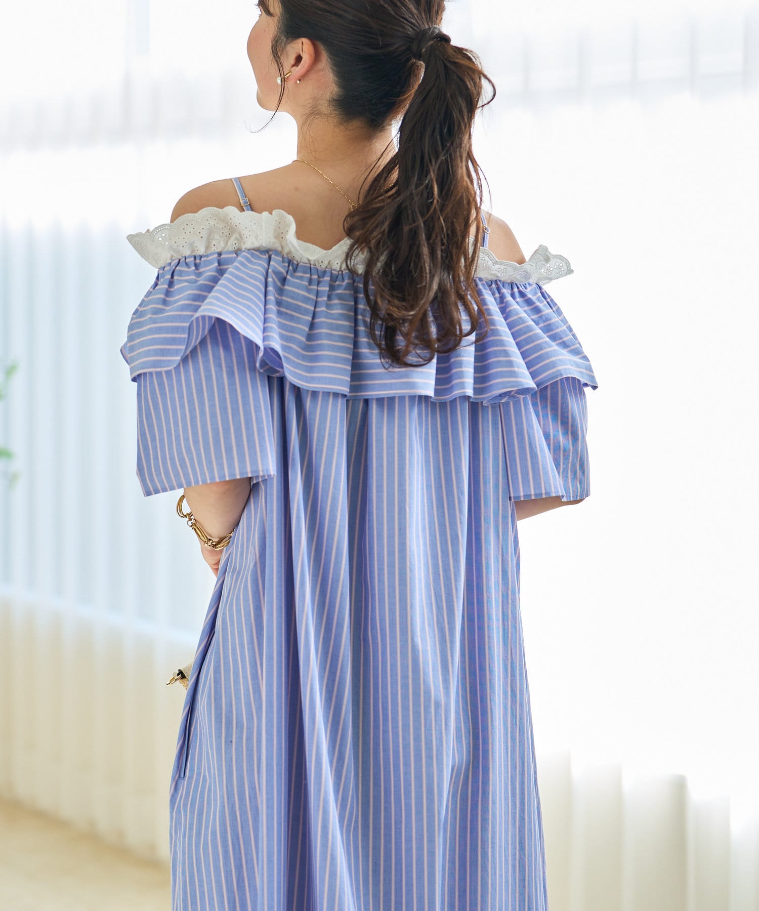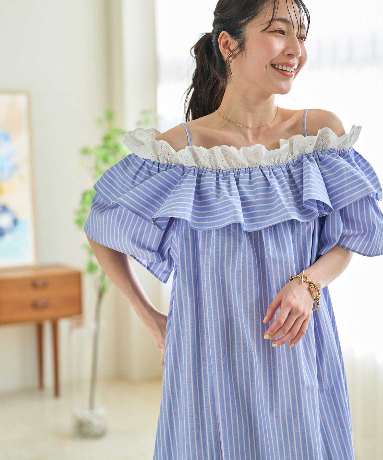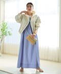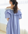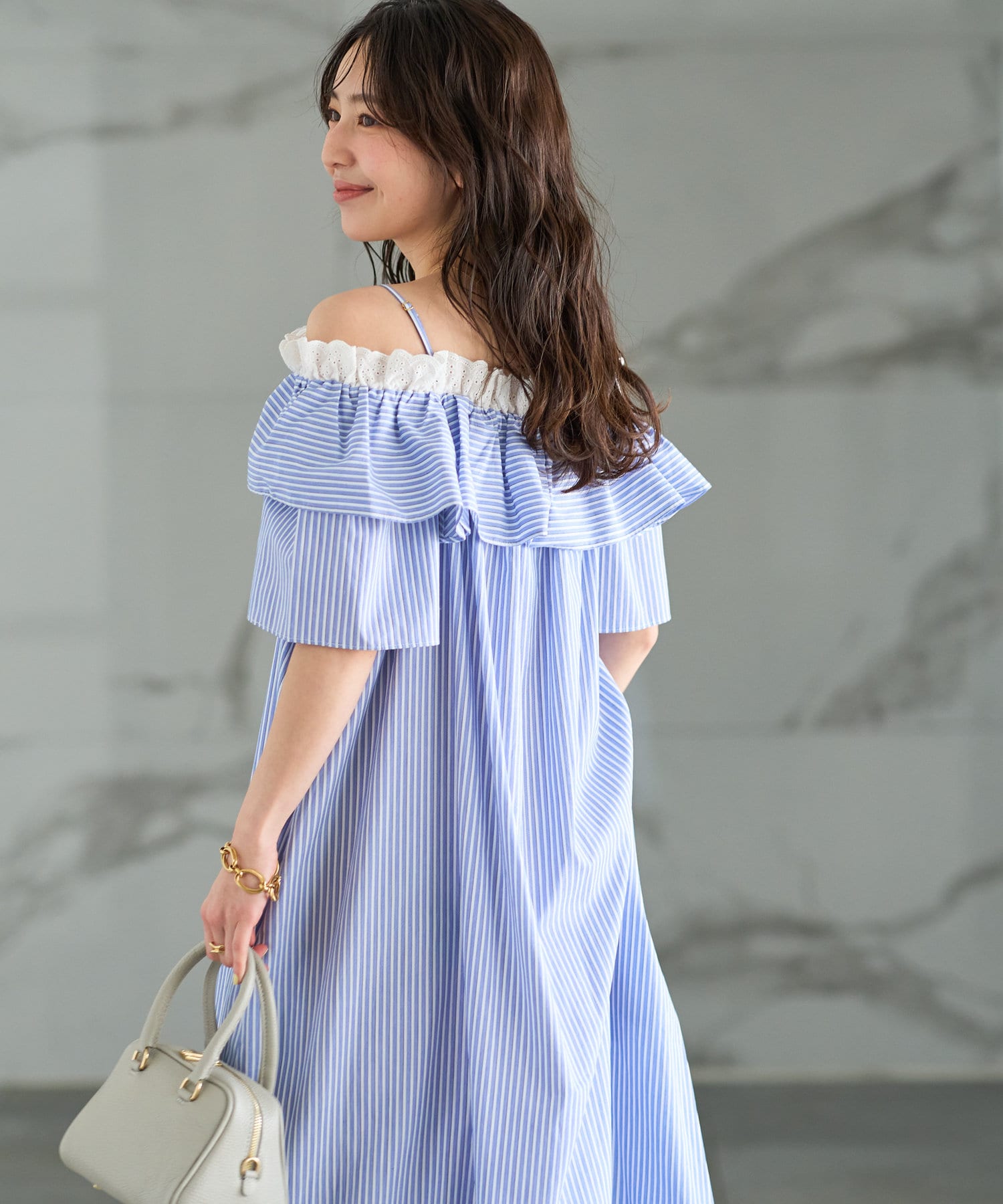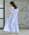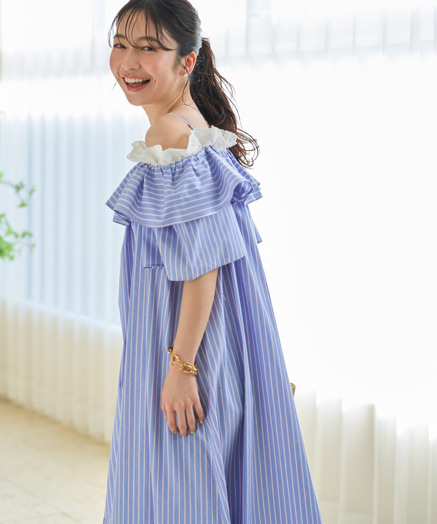 胸元のフリルと白レース使いで大人の可愛いを詰め込んだマキシワンピース