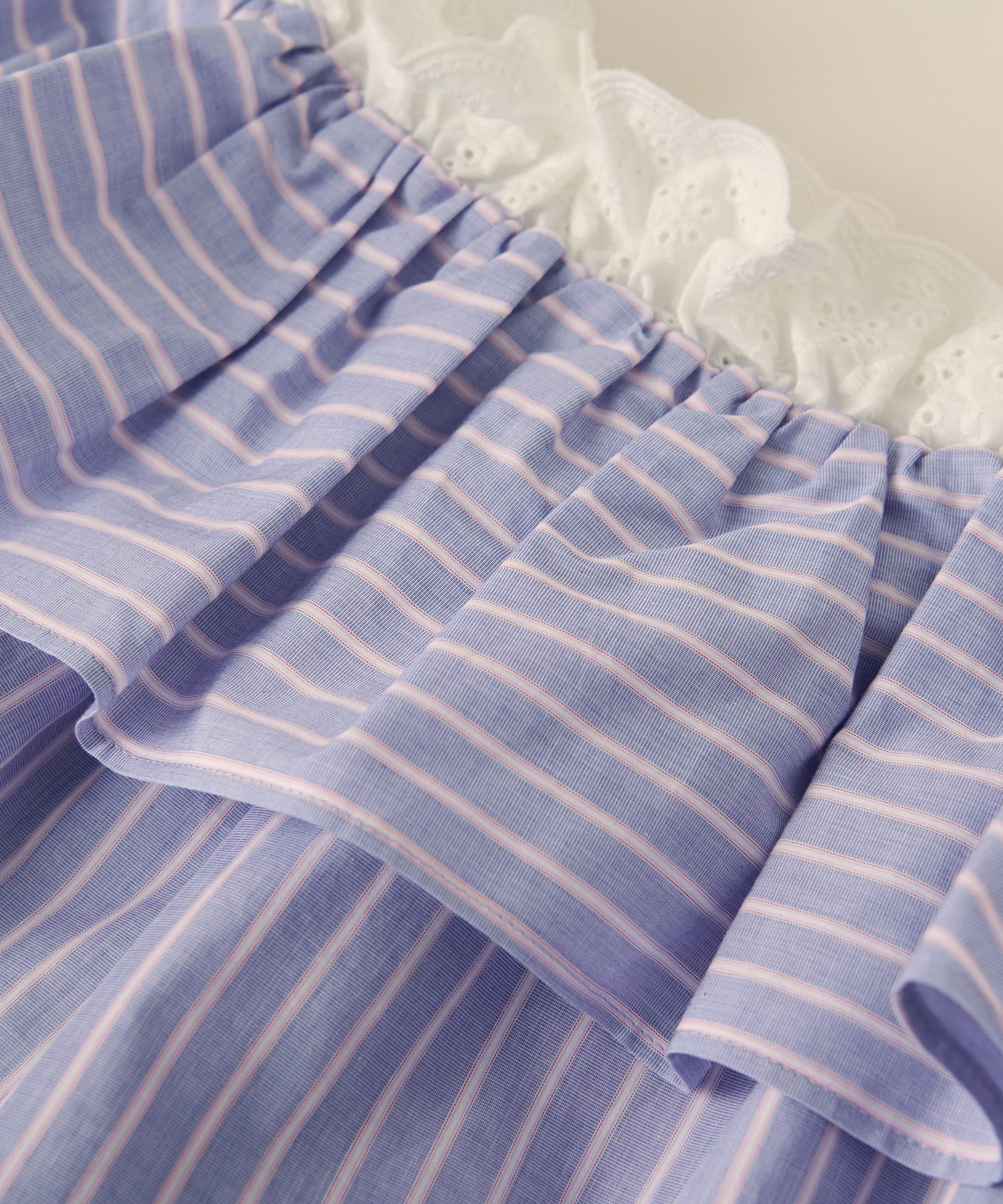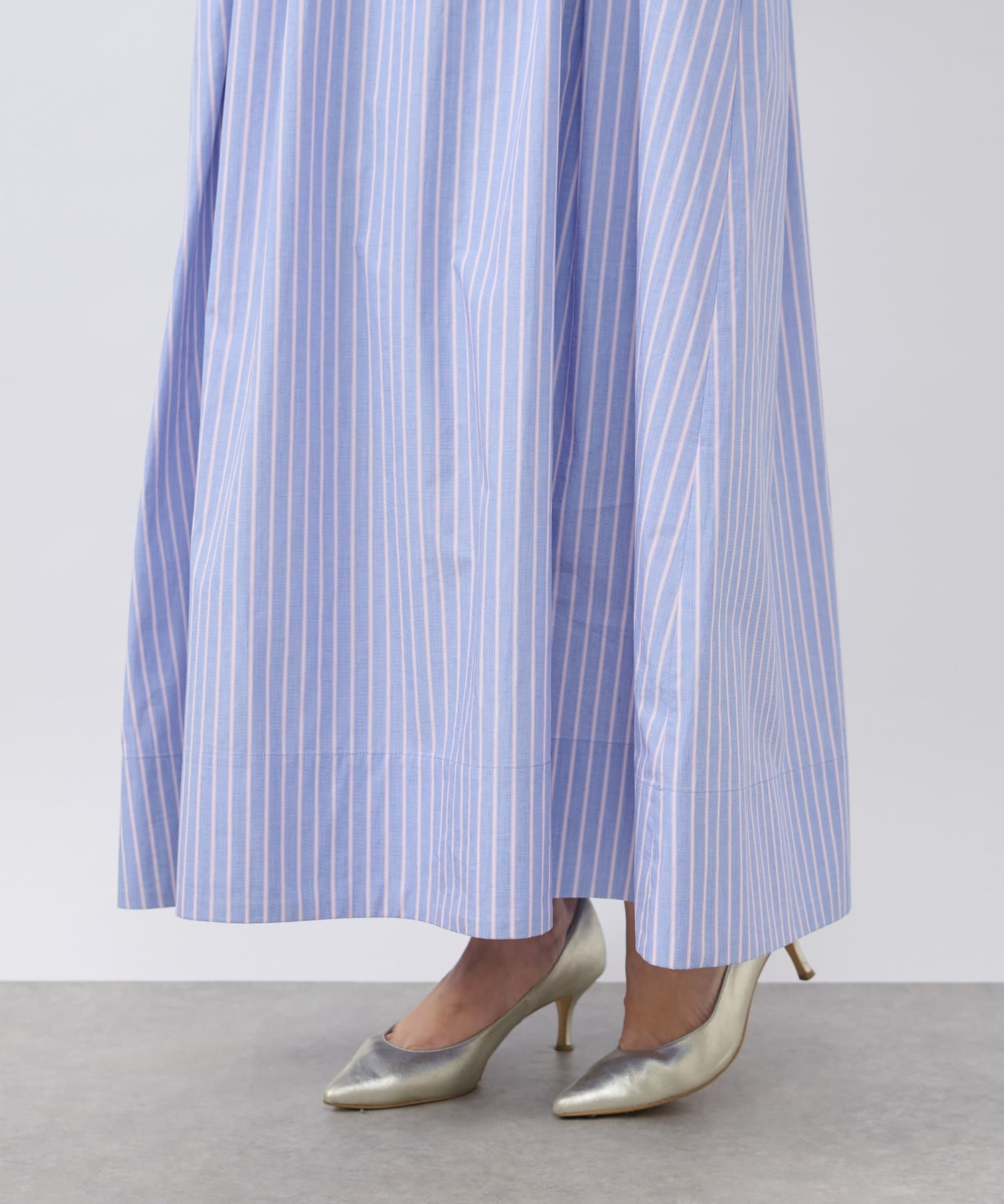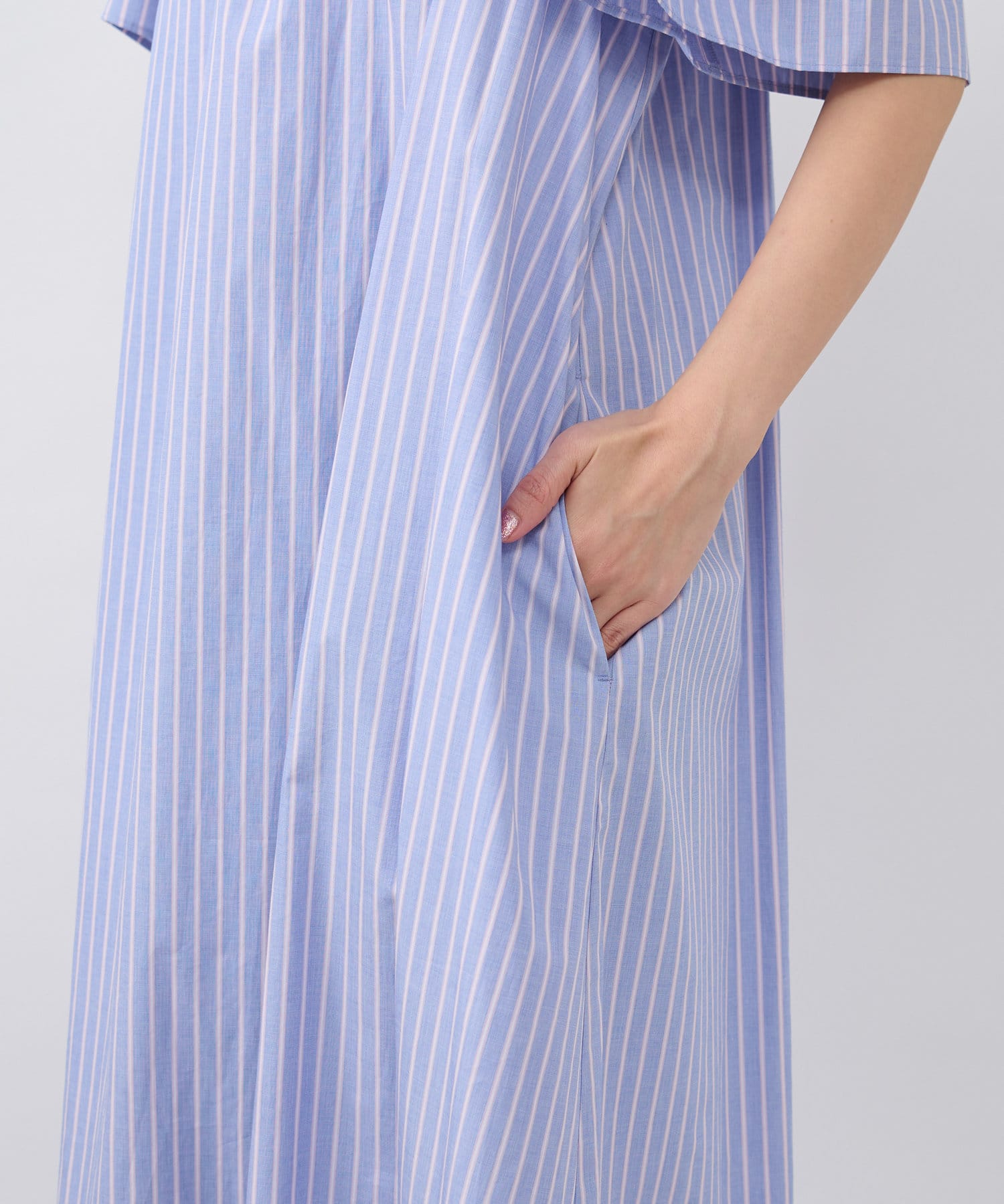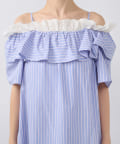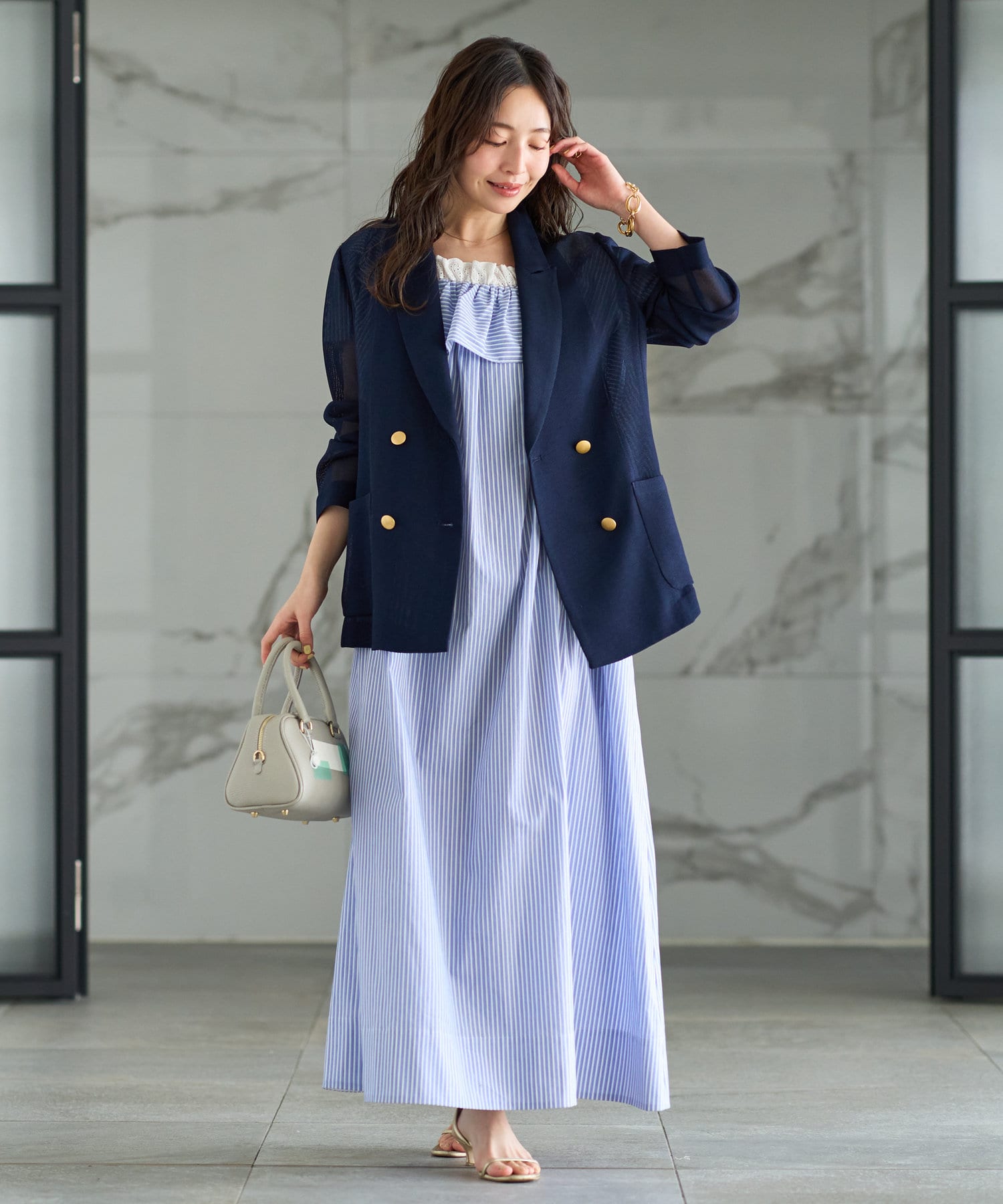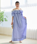 胸元のフリルと白レース使いで大人の可愛いを詰め込んだマキシワンピース