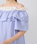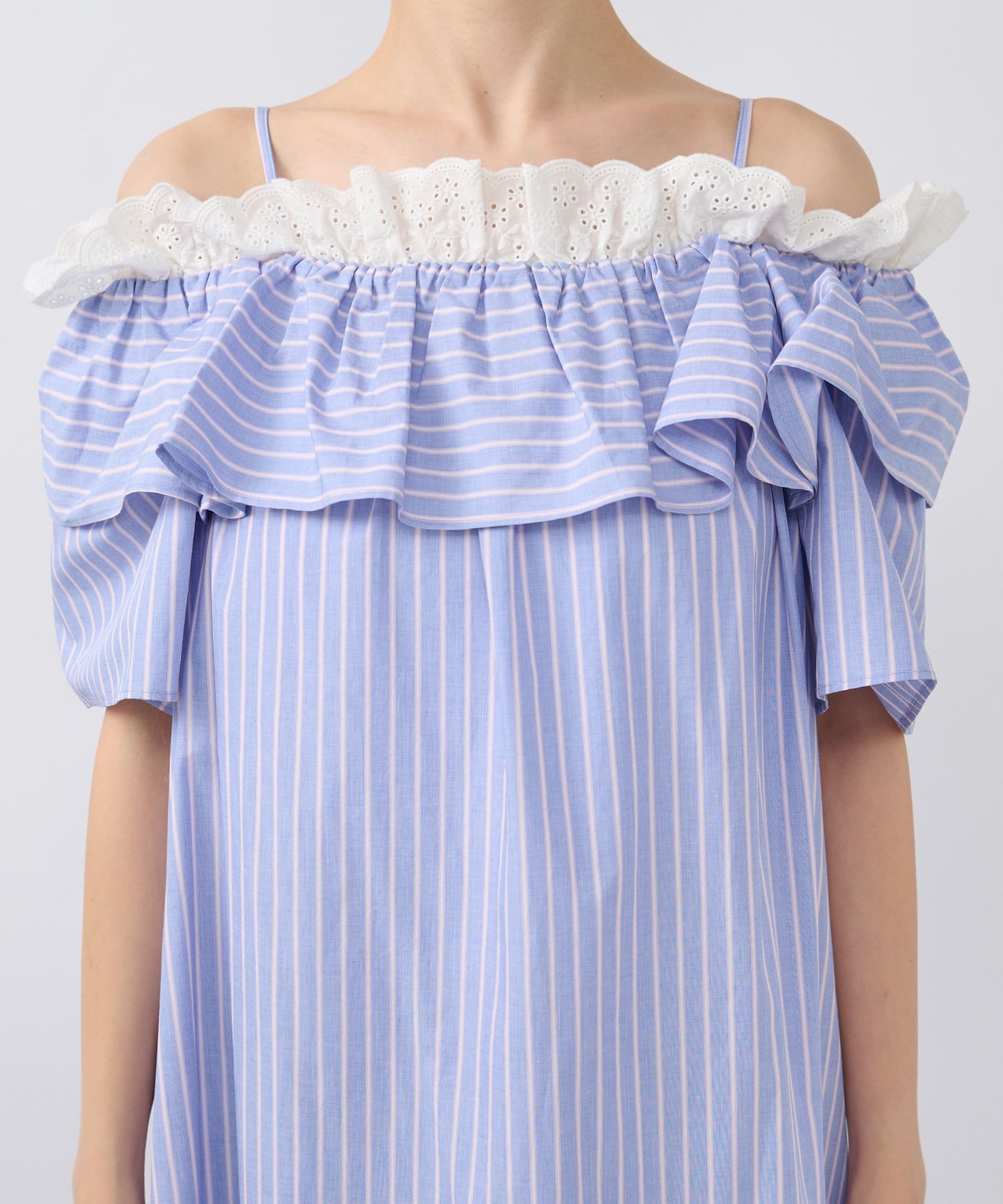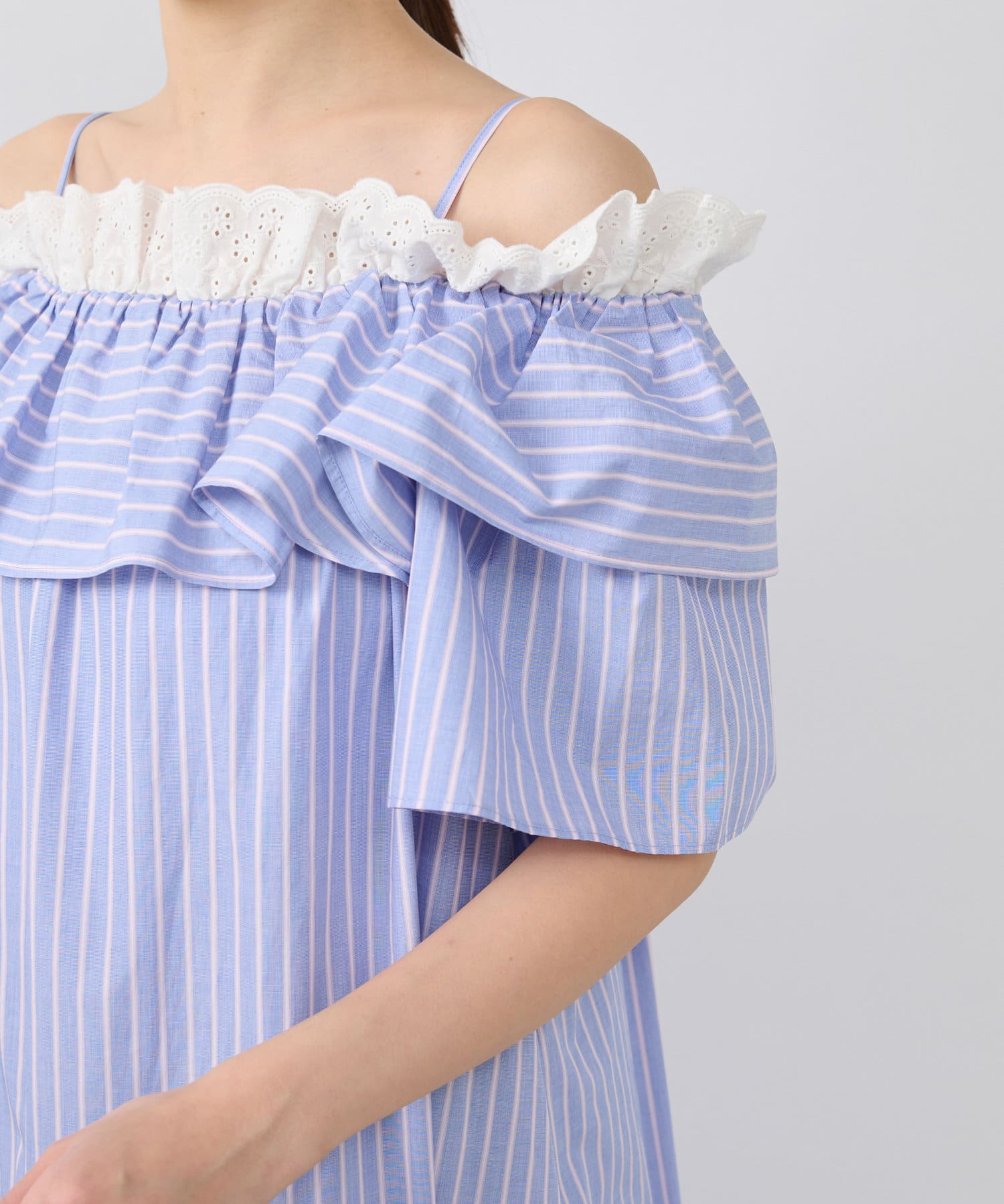 大胆に露出した肩と細いキャミストラップで華奢見え効果も抜群