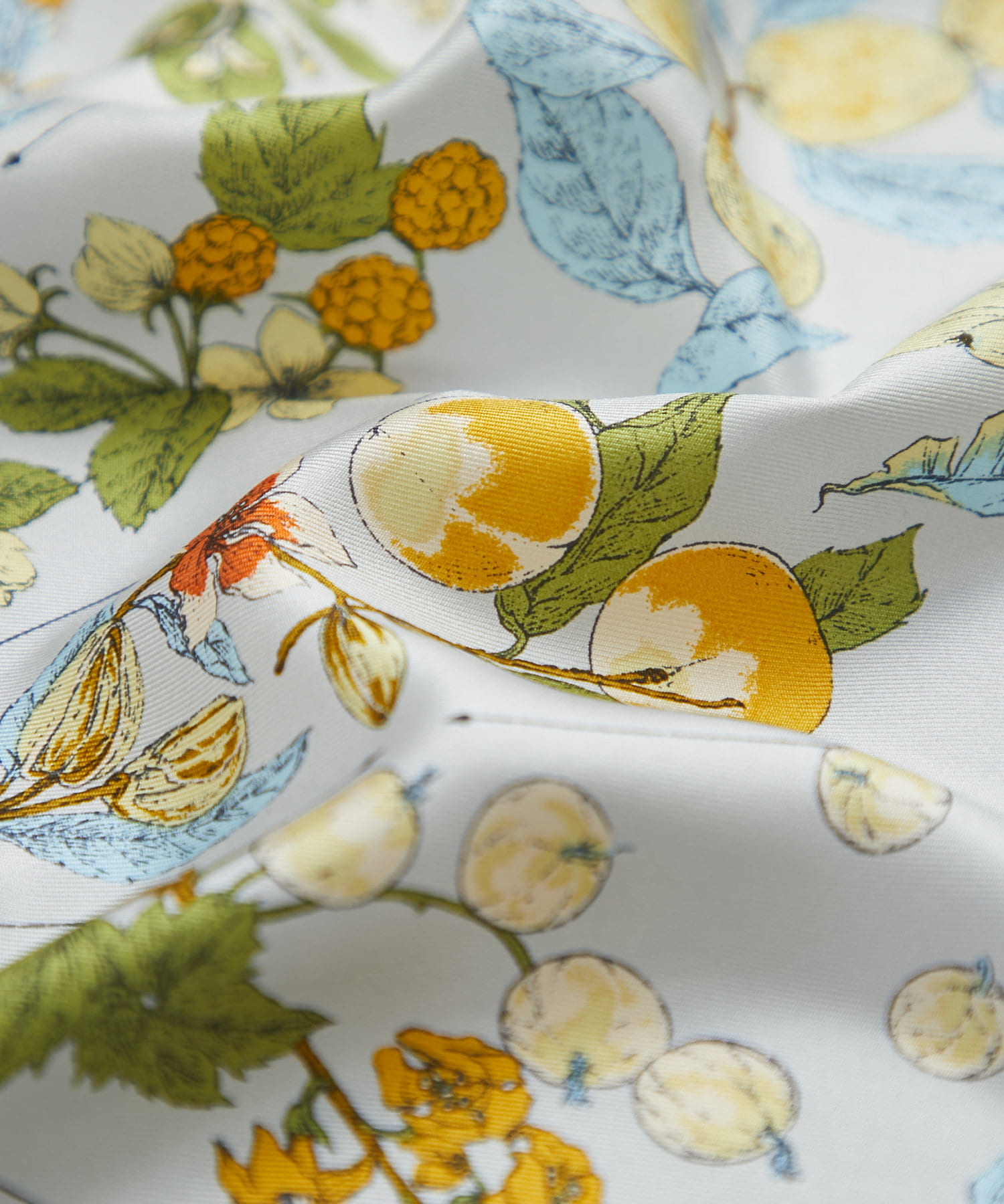 四季折々のフルーツ柄がアクセントになるスカーフ