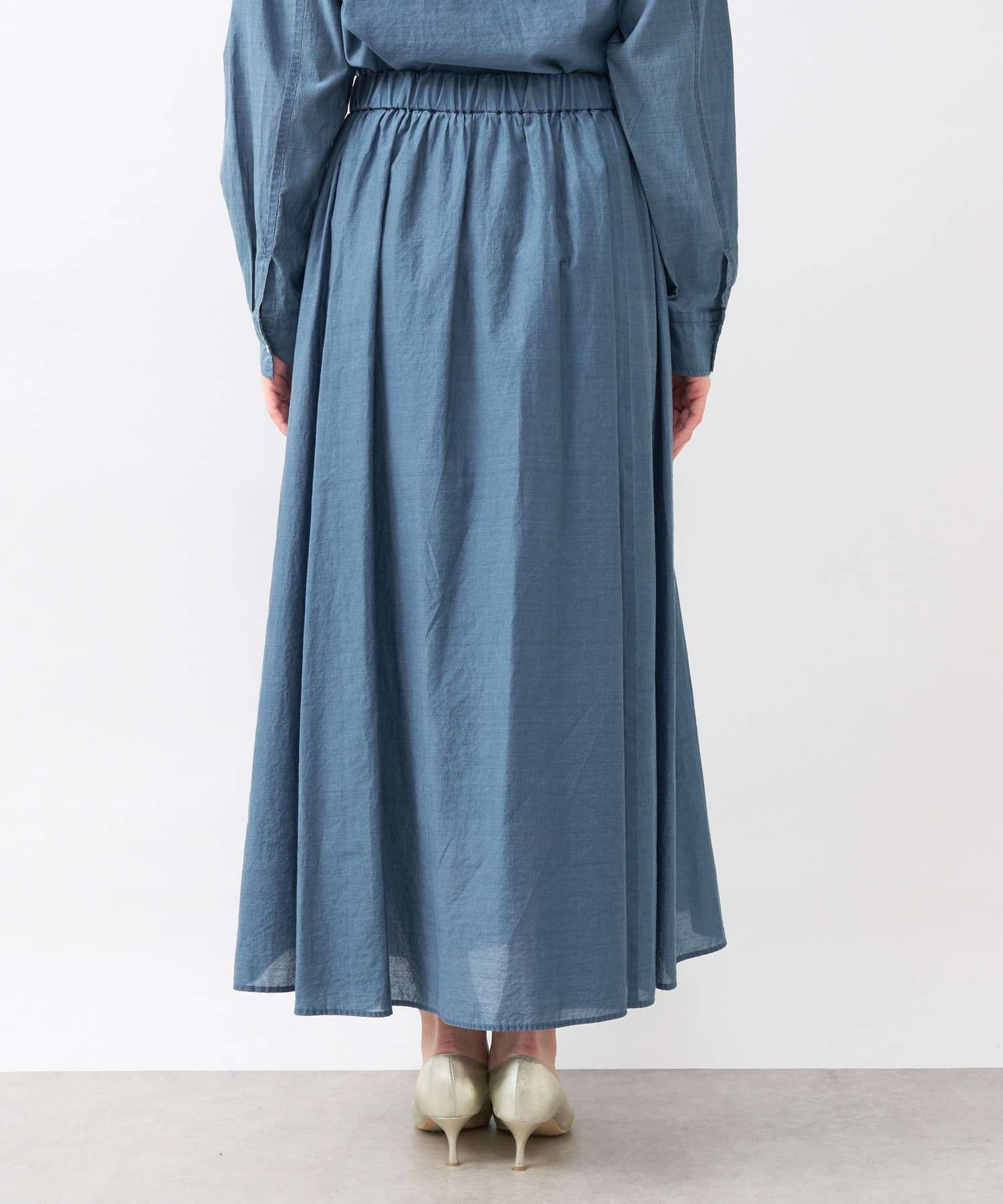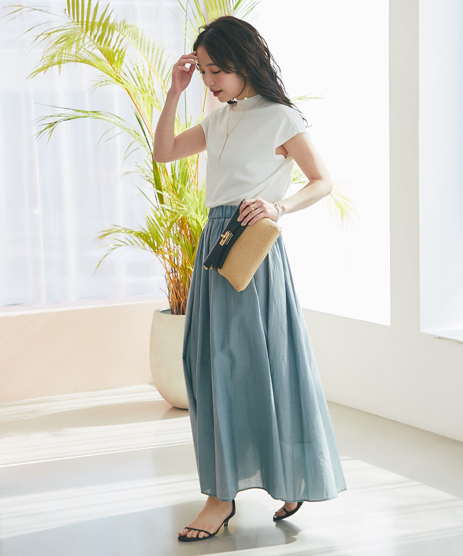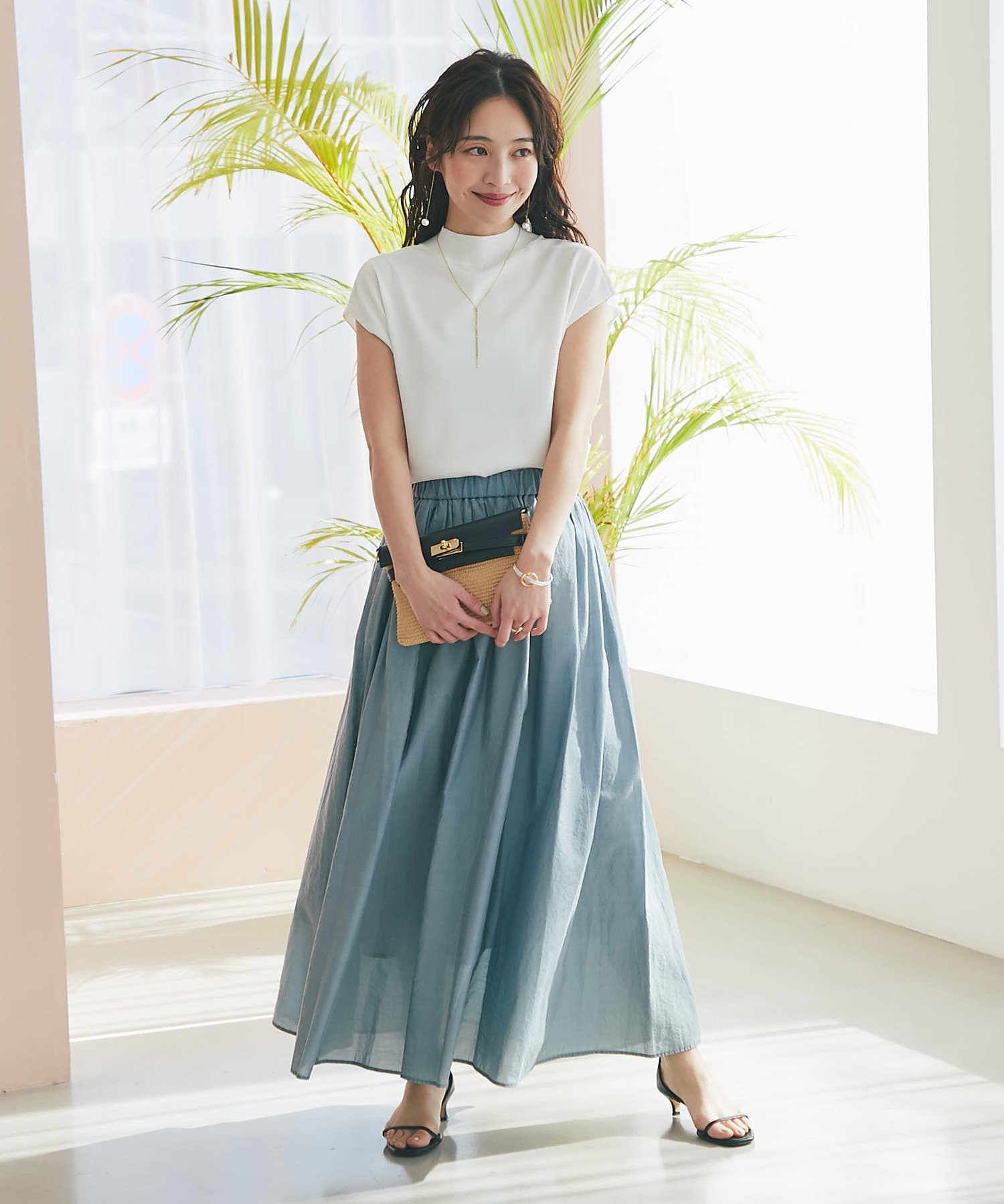 シンプルなトップスがスカートのデザインを引き立ててくれます。