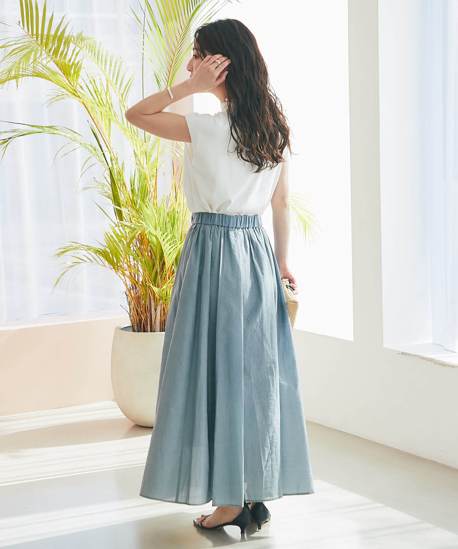 柔らかくふんわり広がるデザインで、女性らしいシルエットが叶います。