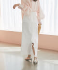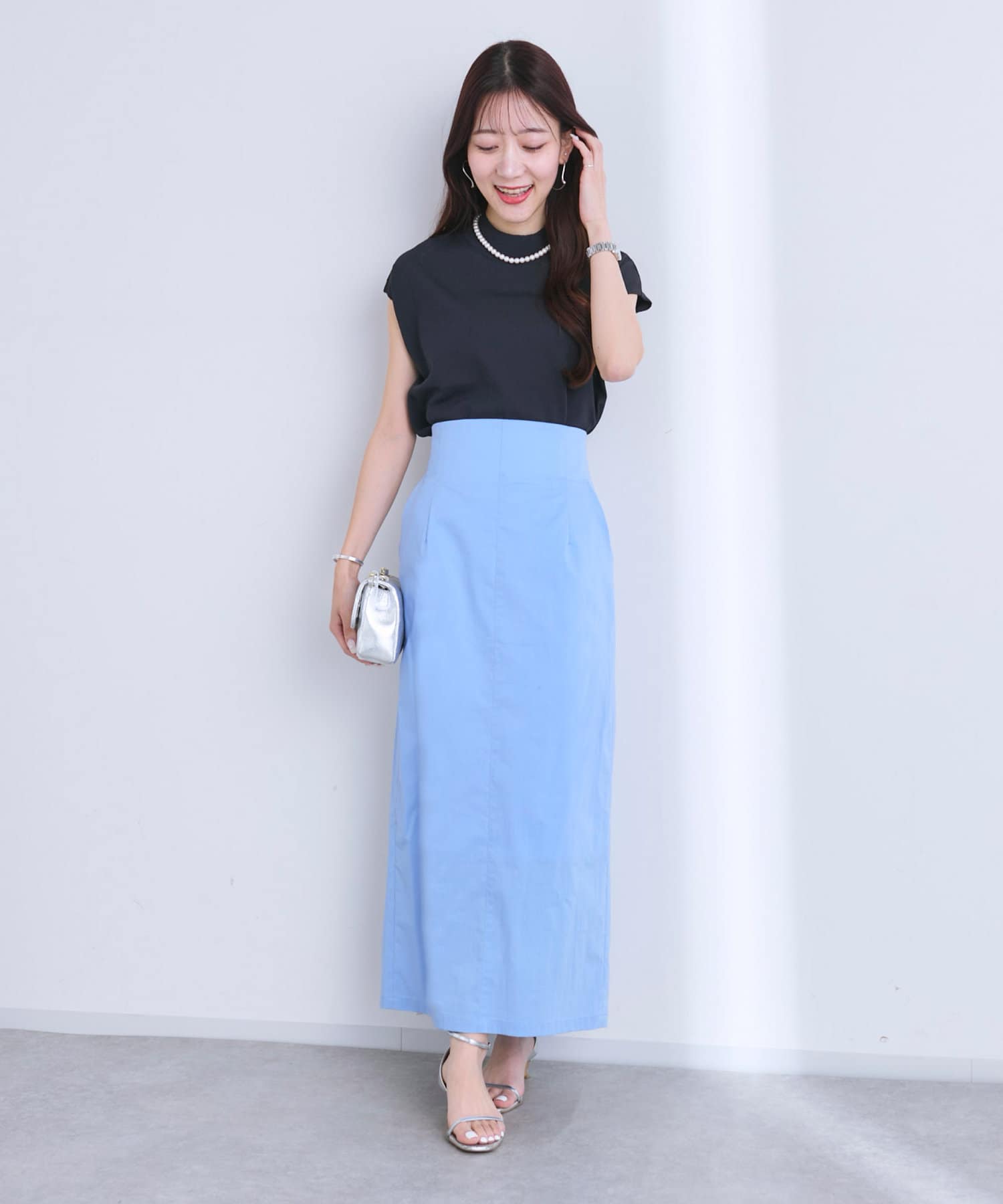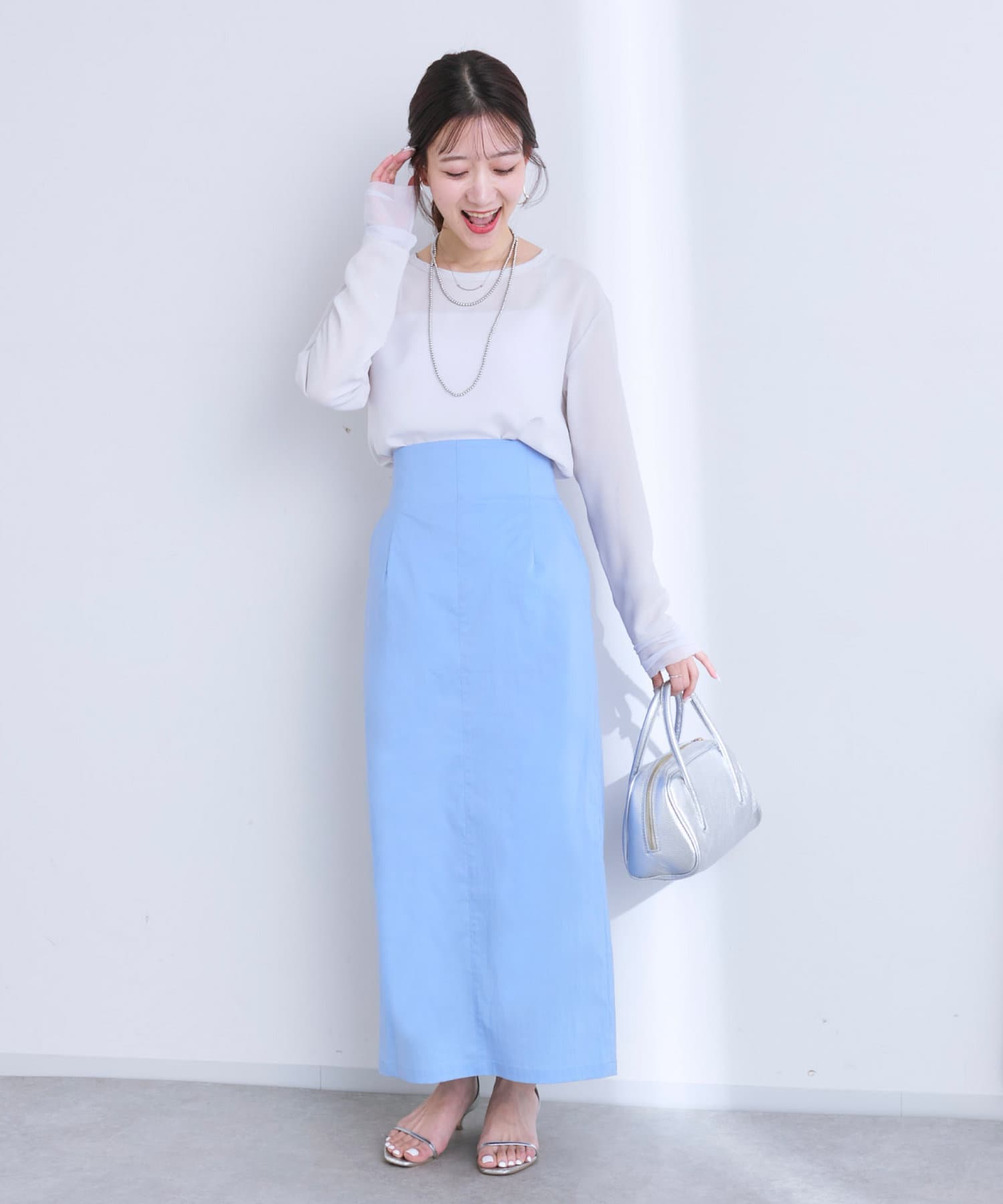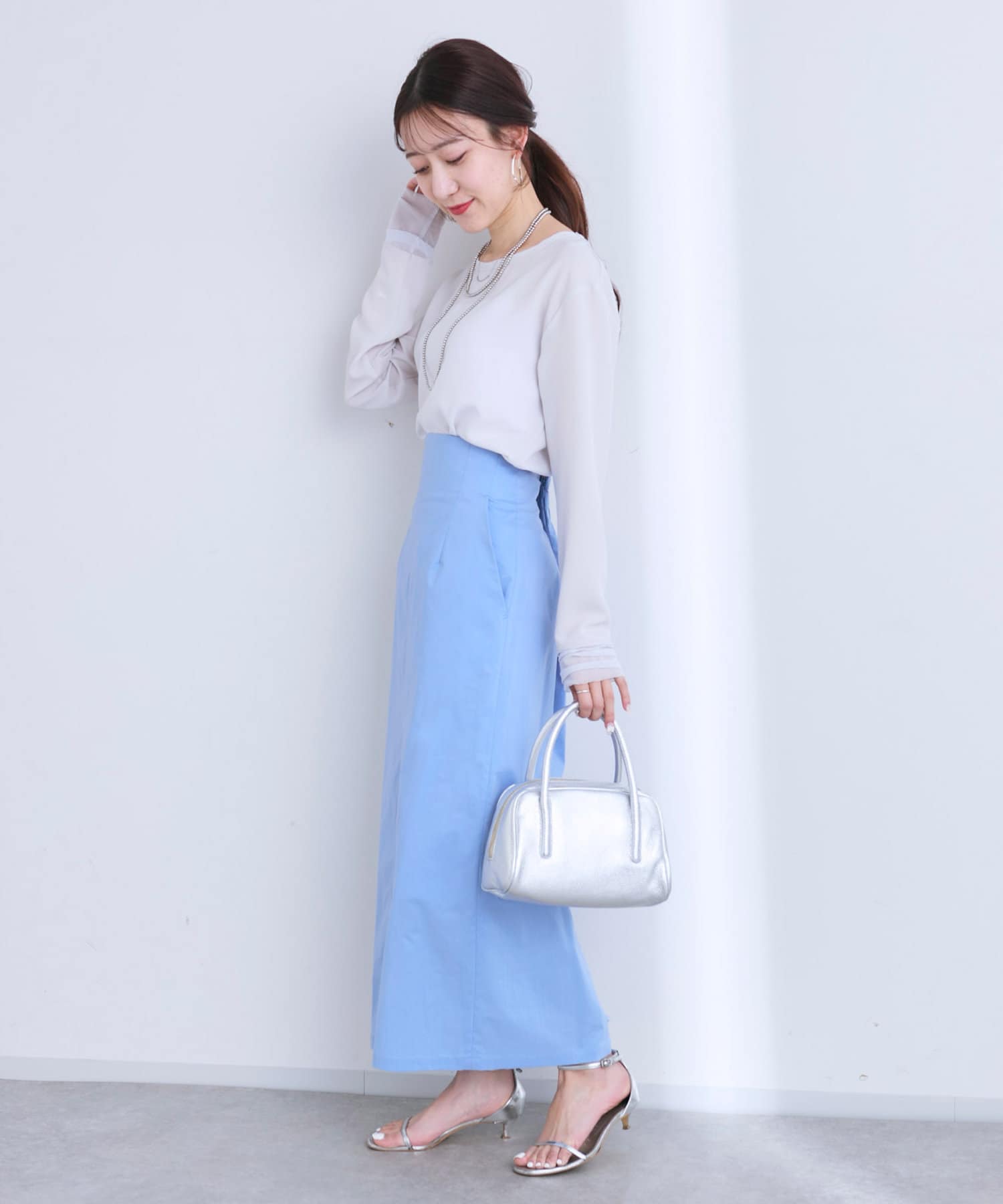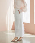 シンプルなトップスインスタイルはスカートのデザインを引き立ててくれます。