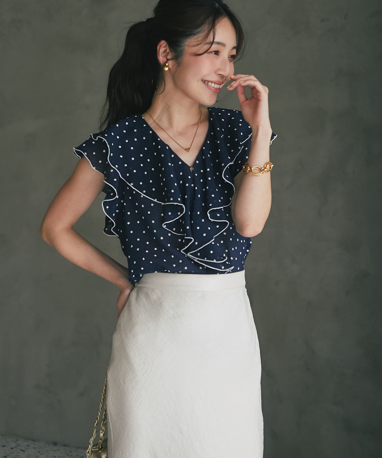 甘く、そして大人っぽく。一枚で主役級のドット柄ブラウス