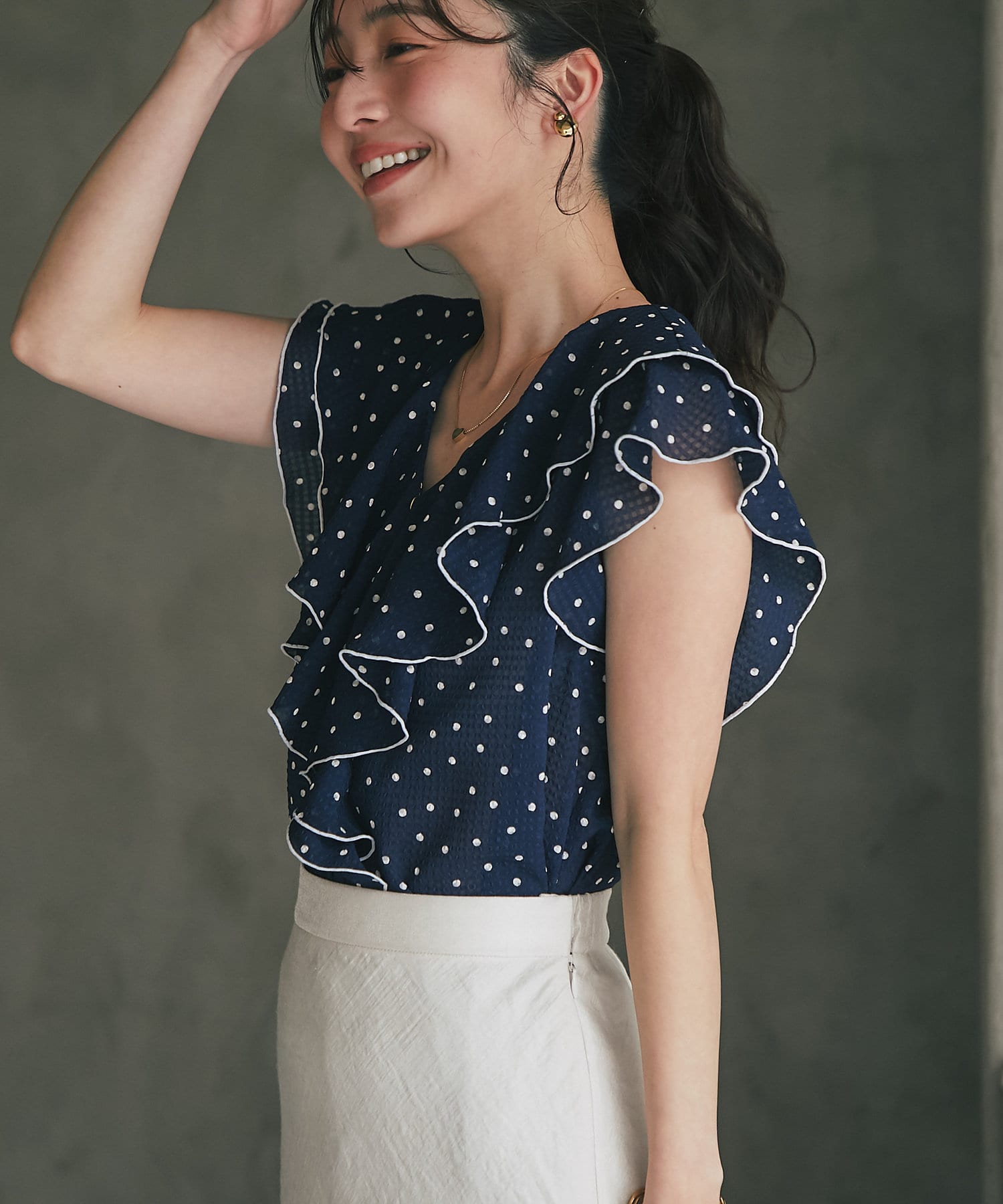 【追加オーダー決定!最強愛されブラウス】ドットラッフルブラウス