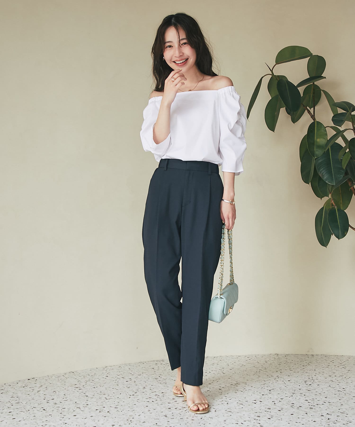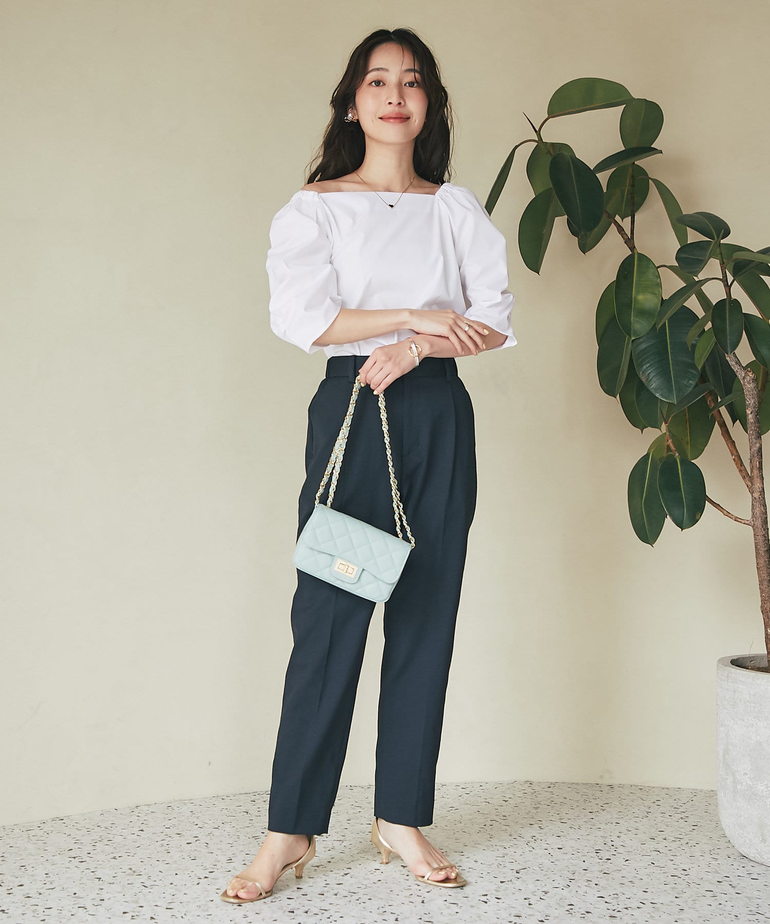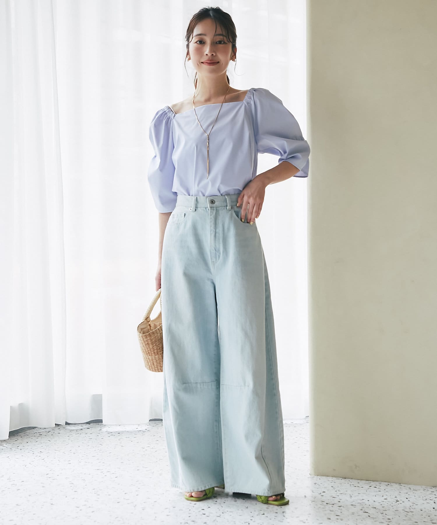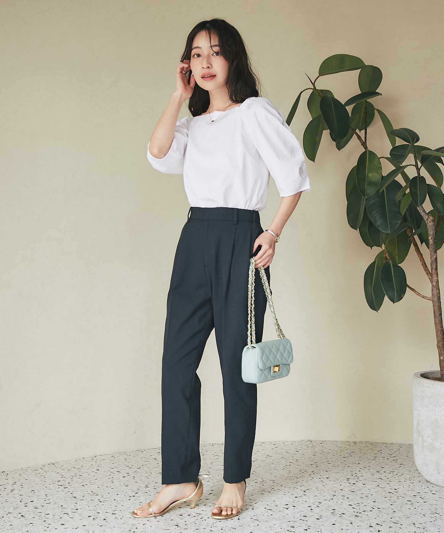 ボリュームのあるブラウスなので、シンプルなタイトスカートやワイドパンツ合わせがお勧めです。