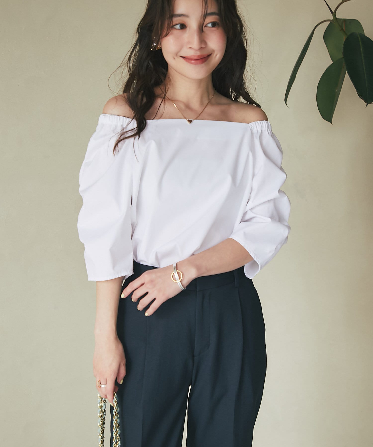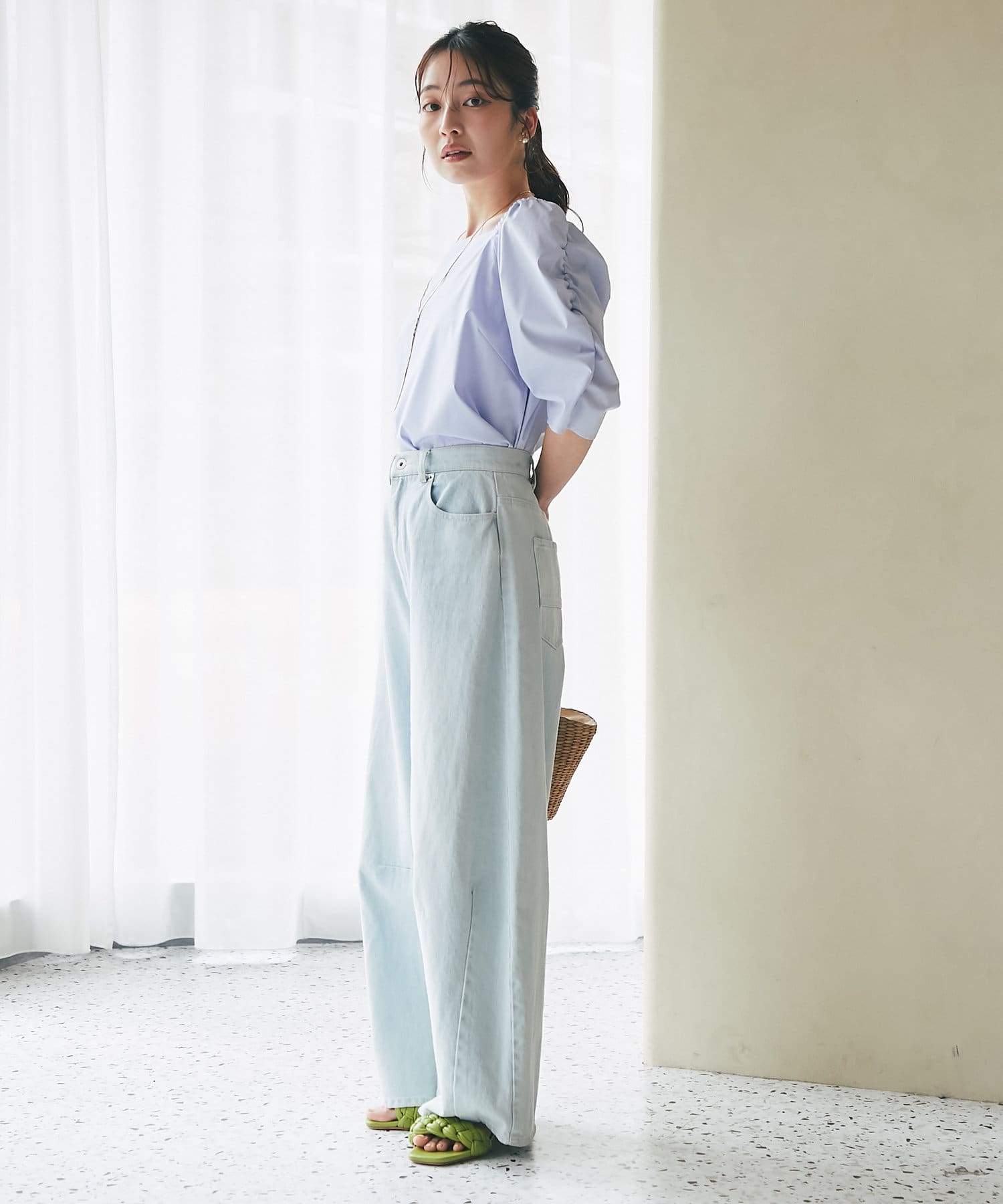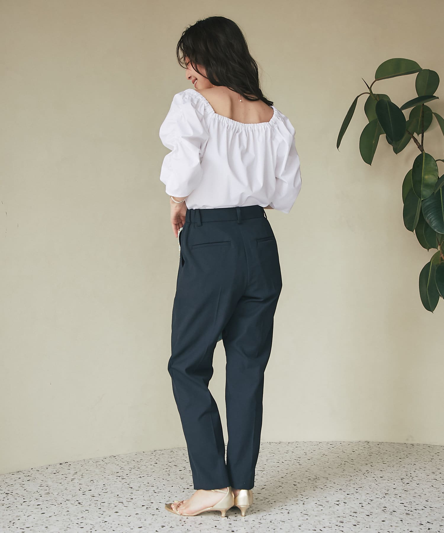 ボリュームのあるブラウスなので、シンプルなタイトスカートやワイドパンツ合わせがお勧めです。