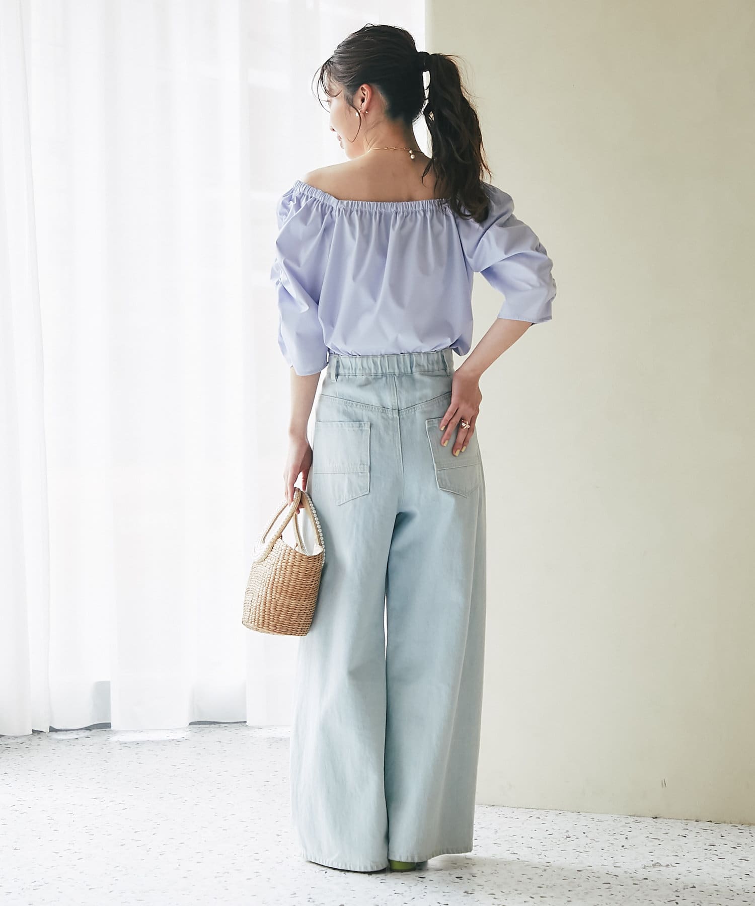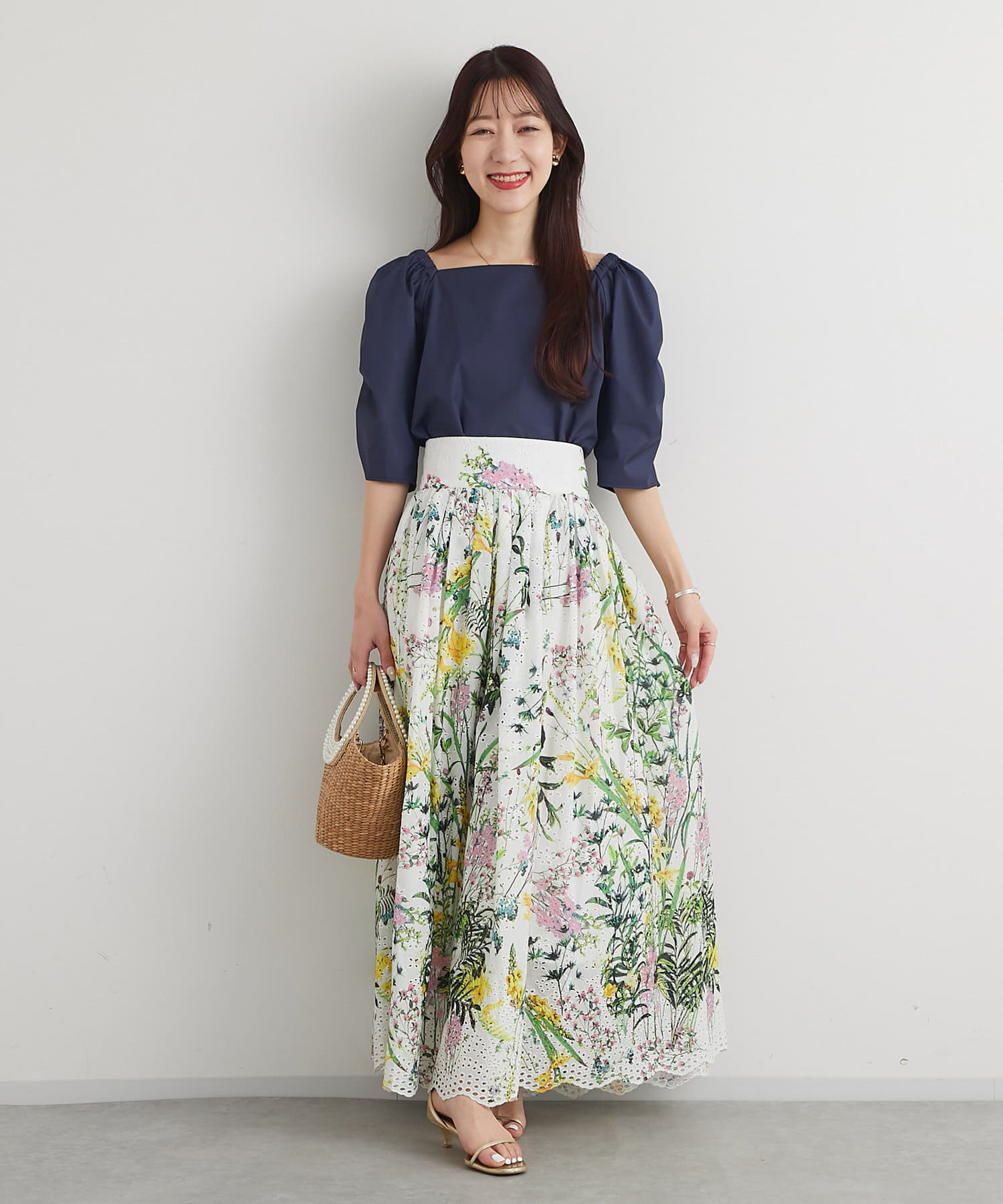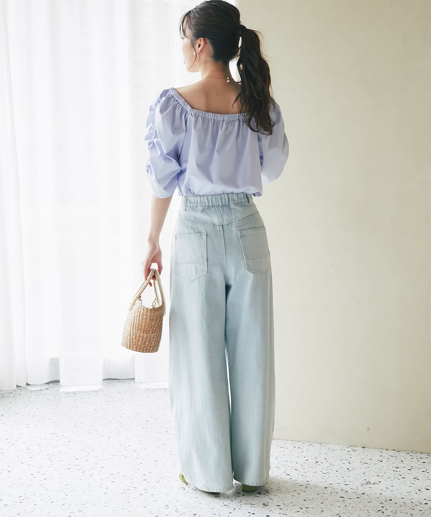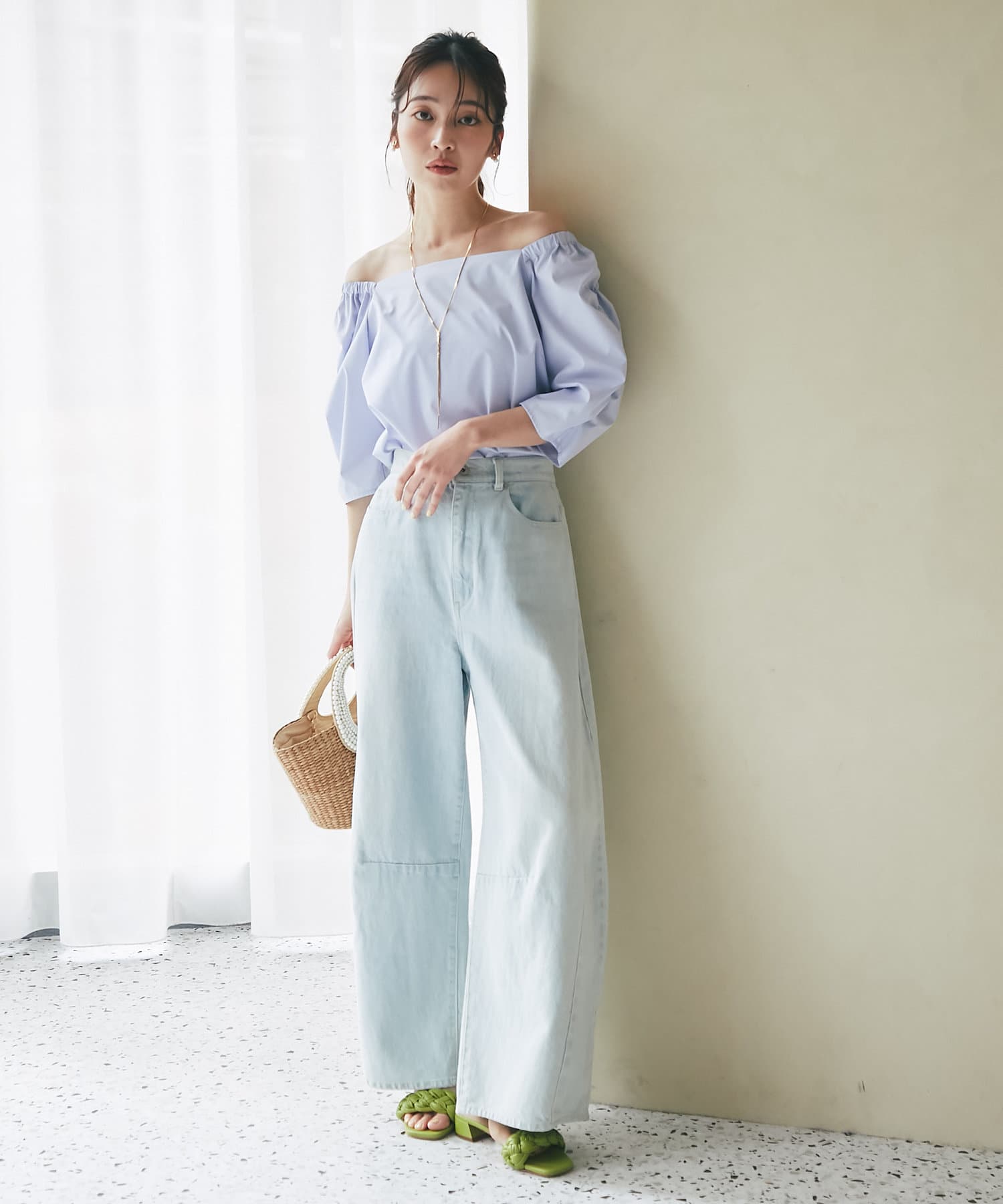 ボリュームのあるブラウスなので、シンプルなタイトスカートやワイドパンツ合わせがお勧めです。