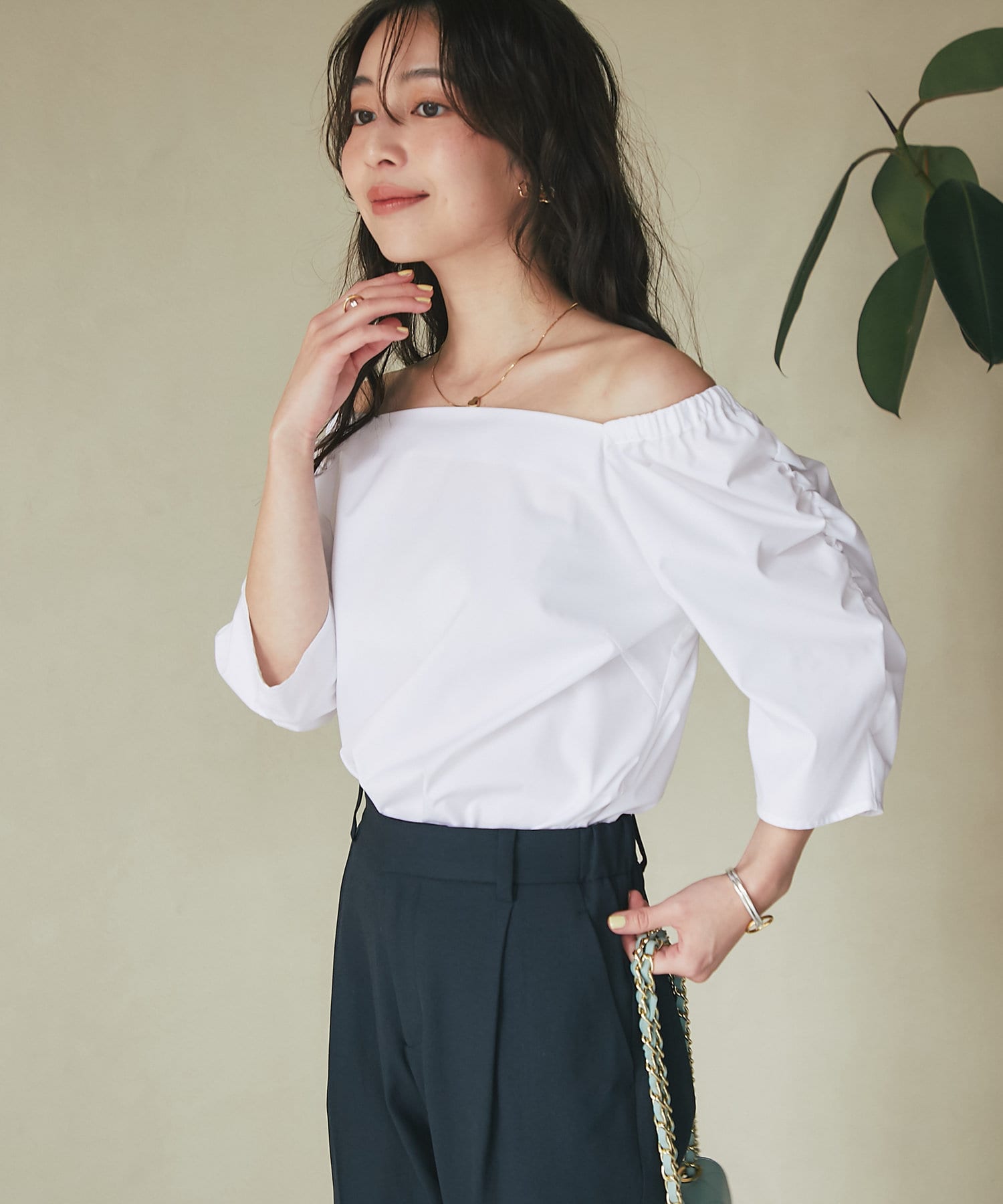 最大のポイントは、肩のラインに施されたパフスリーブ。