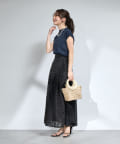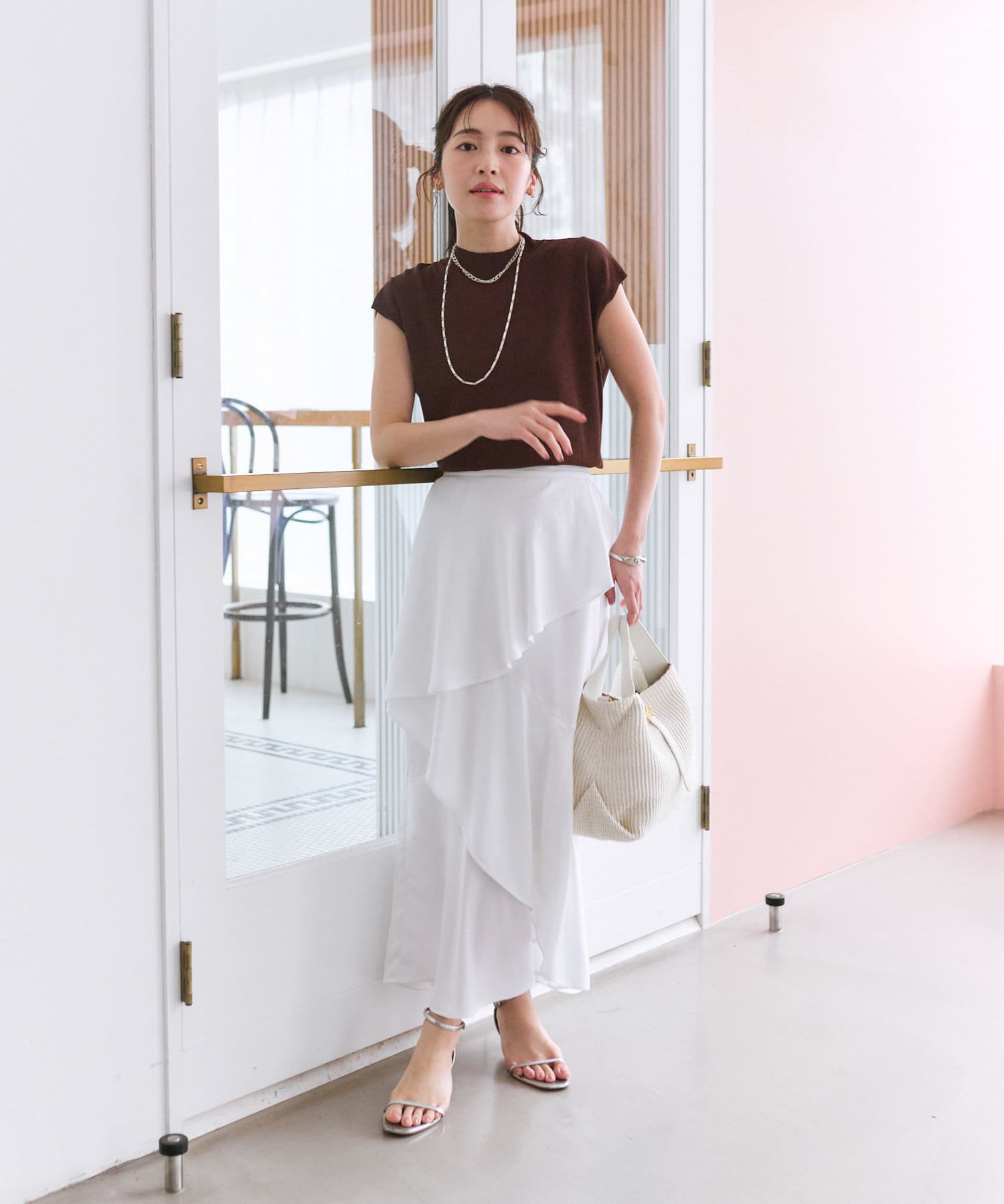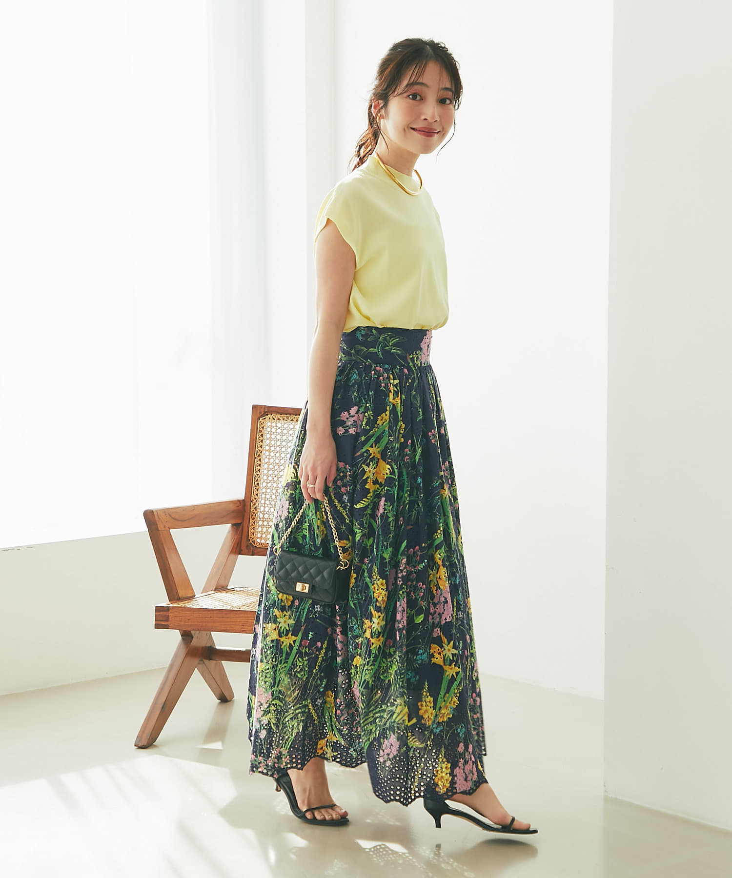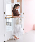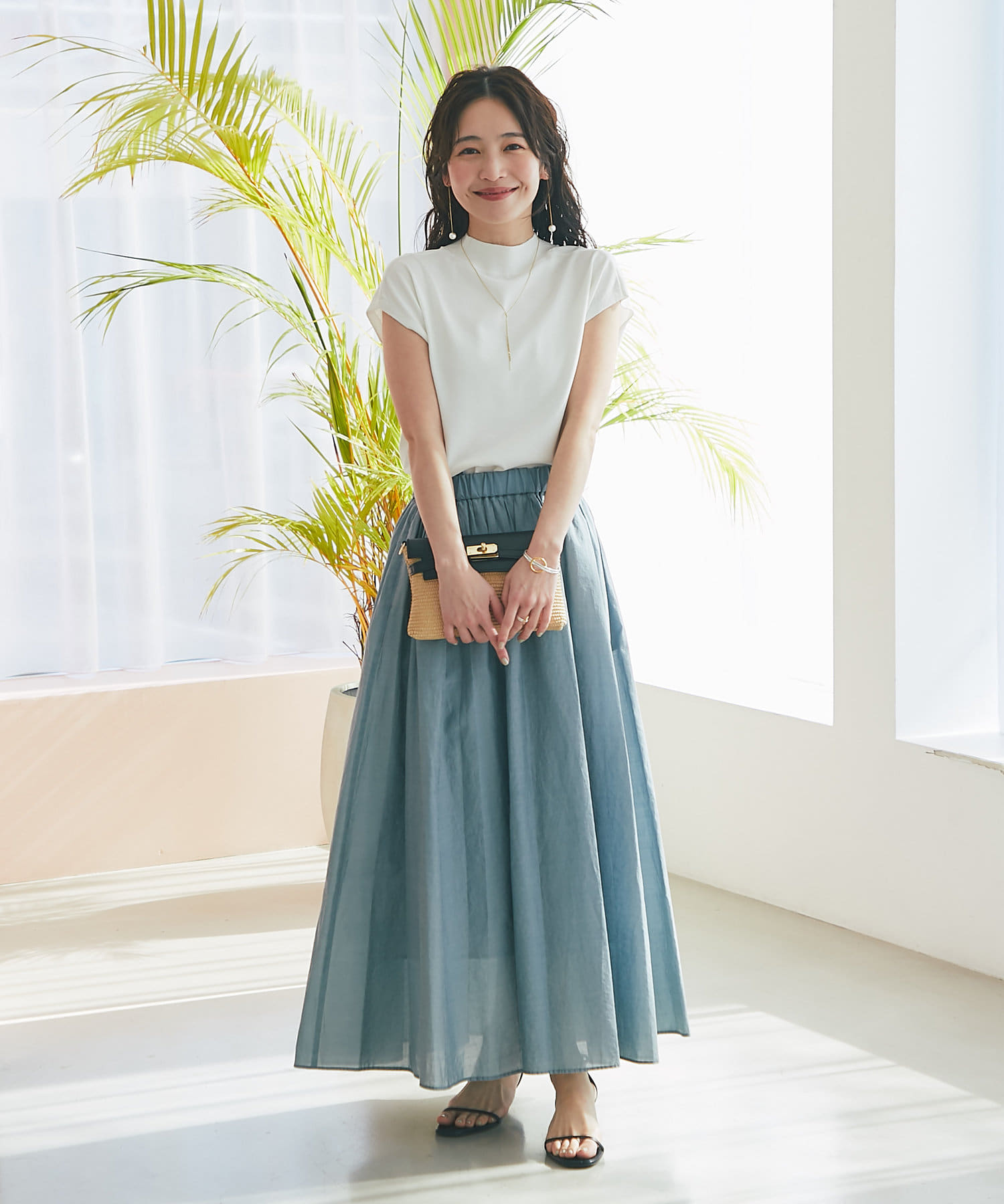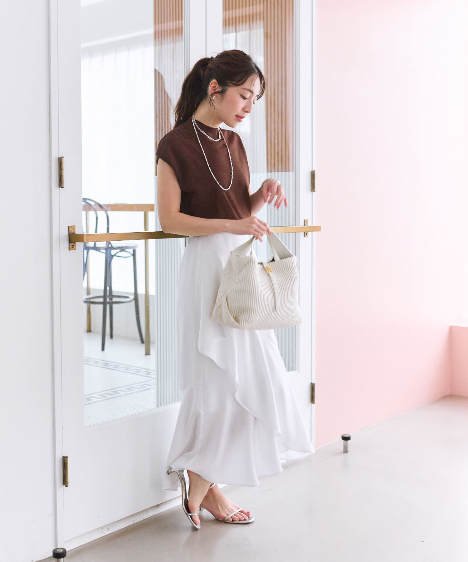 ボリュームのあるスカートに合わせて大人のお出かけスタイルに。
