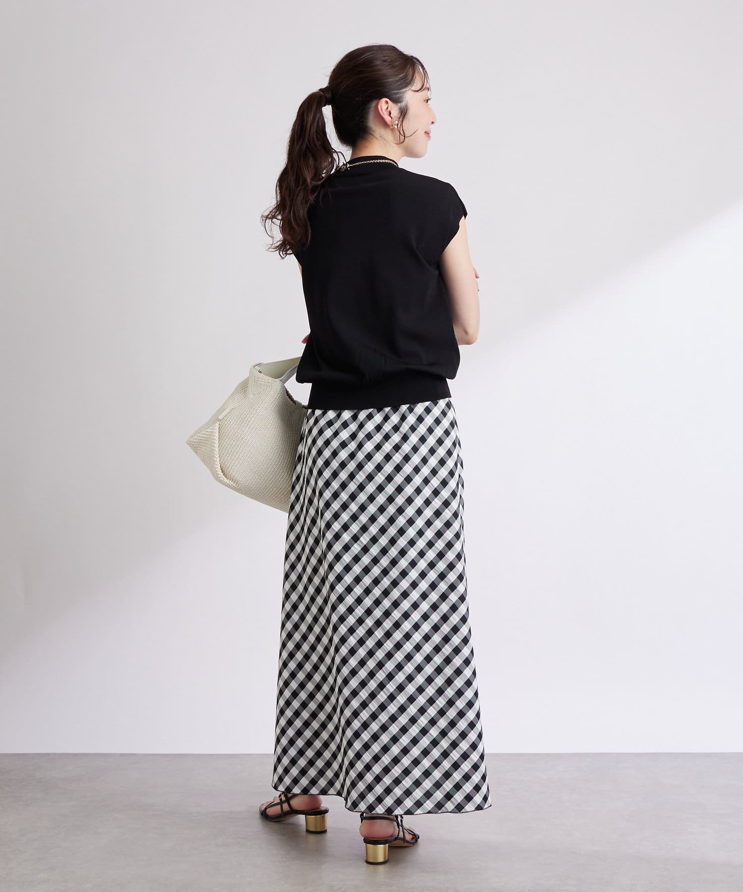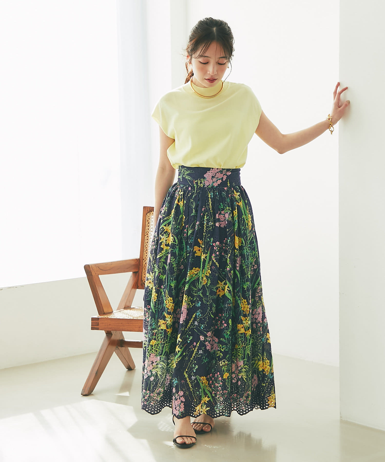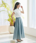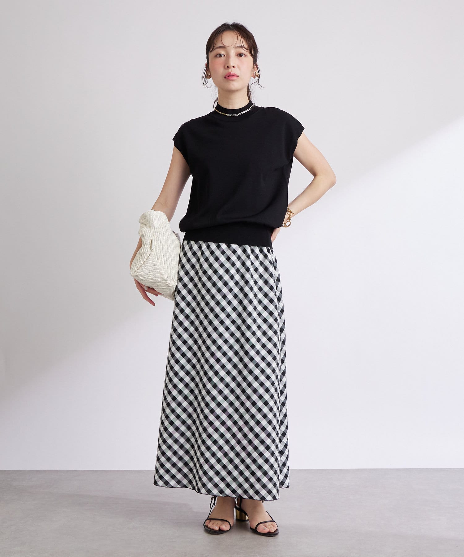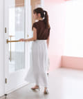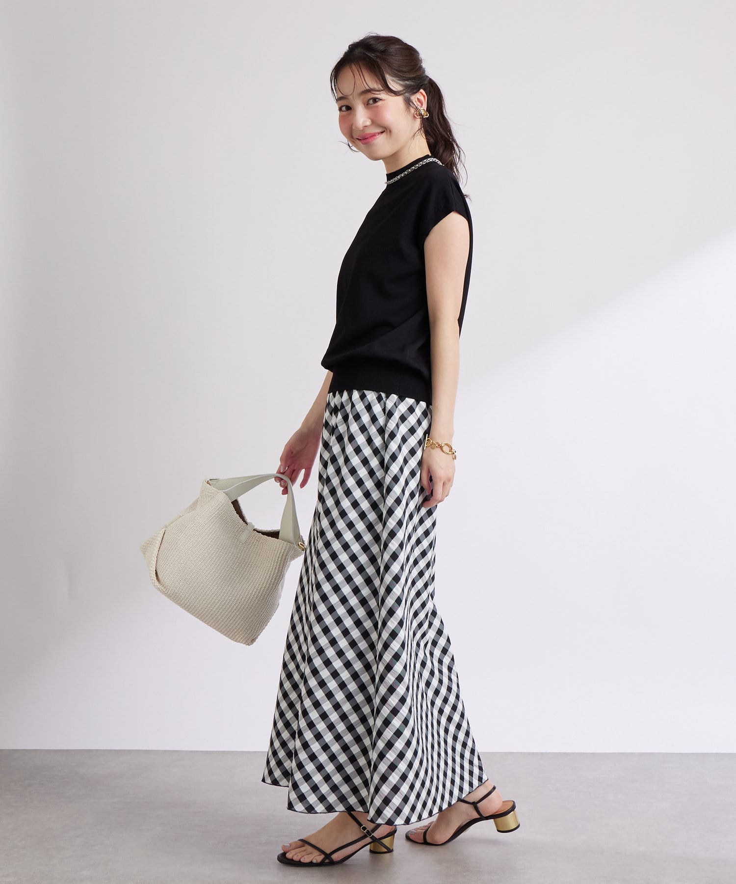 ボリュームのあるスカートに合わせて大人のお出かけスタイルに。