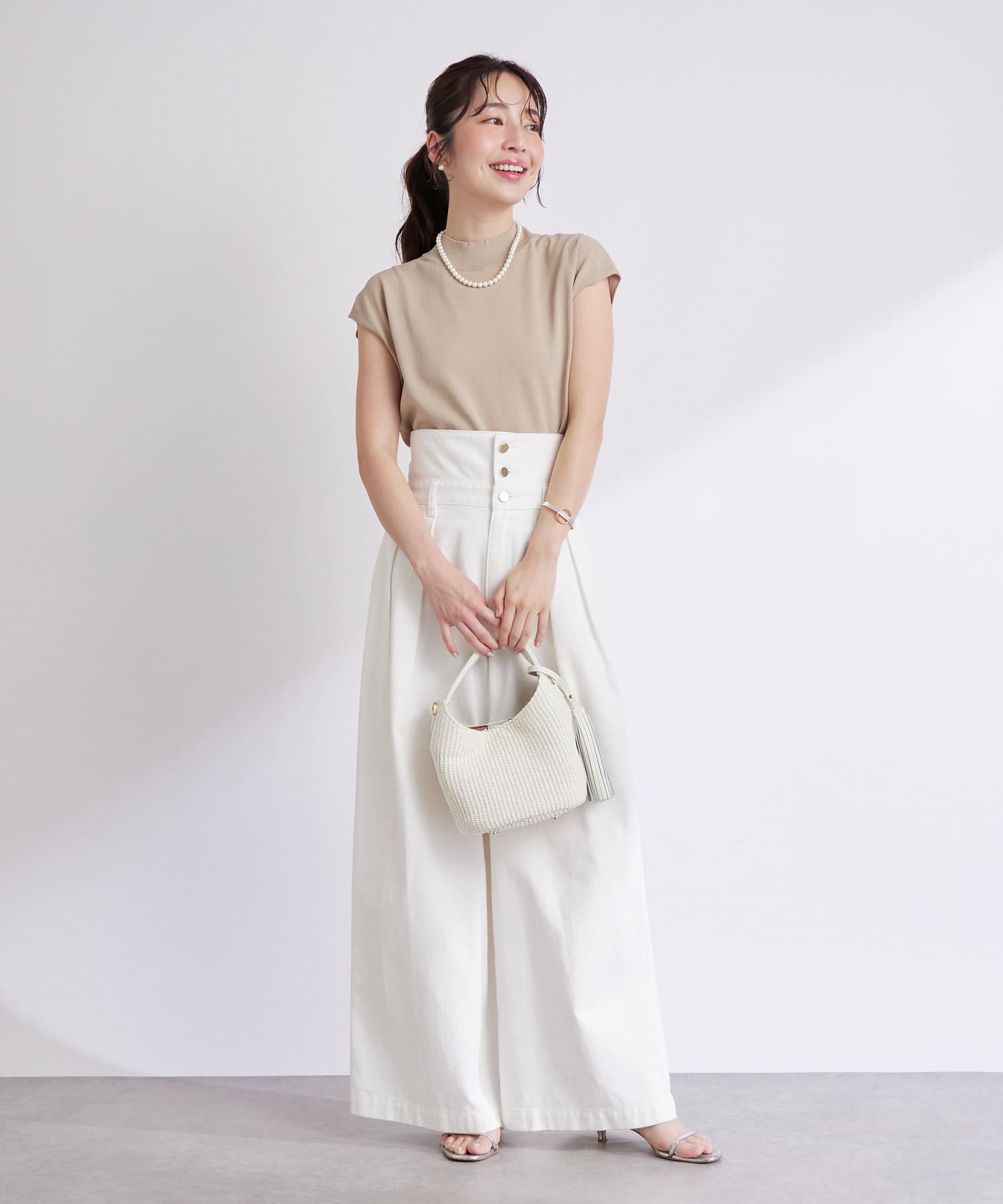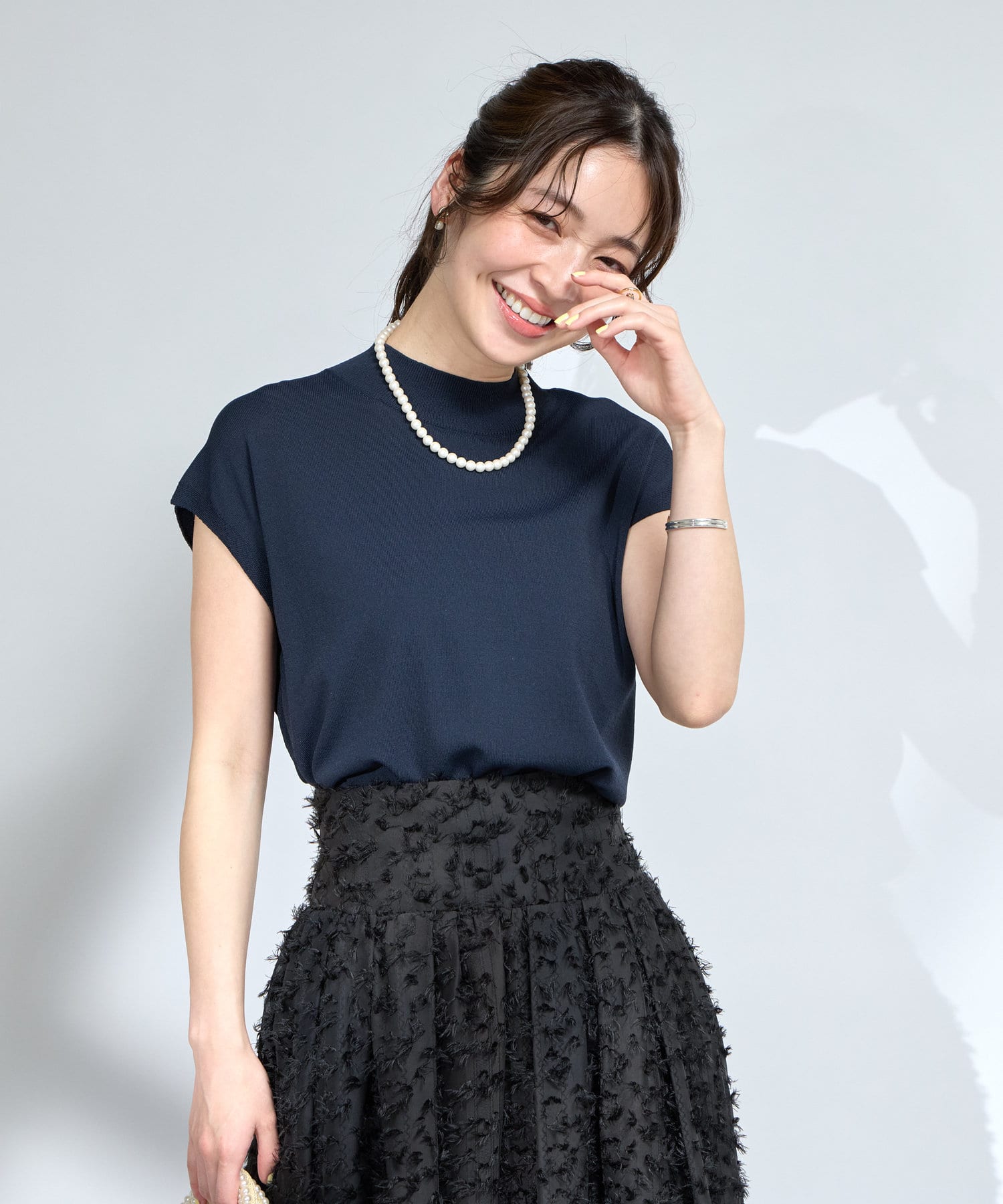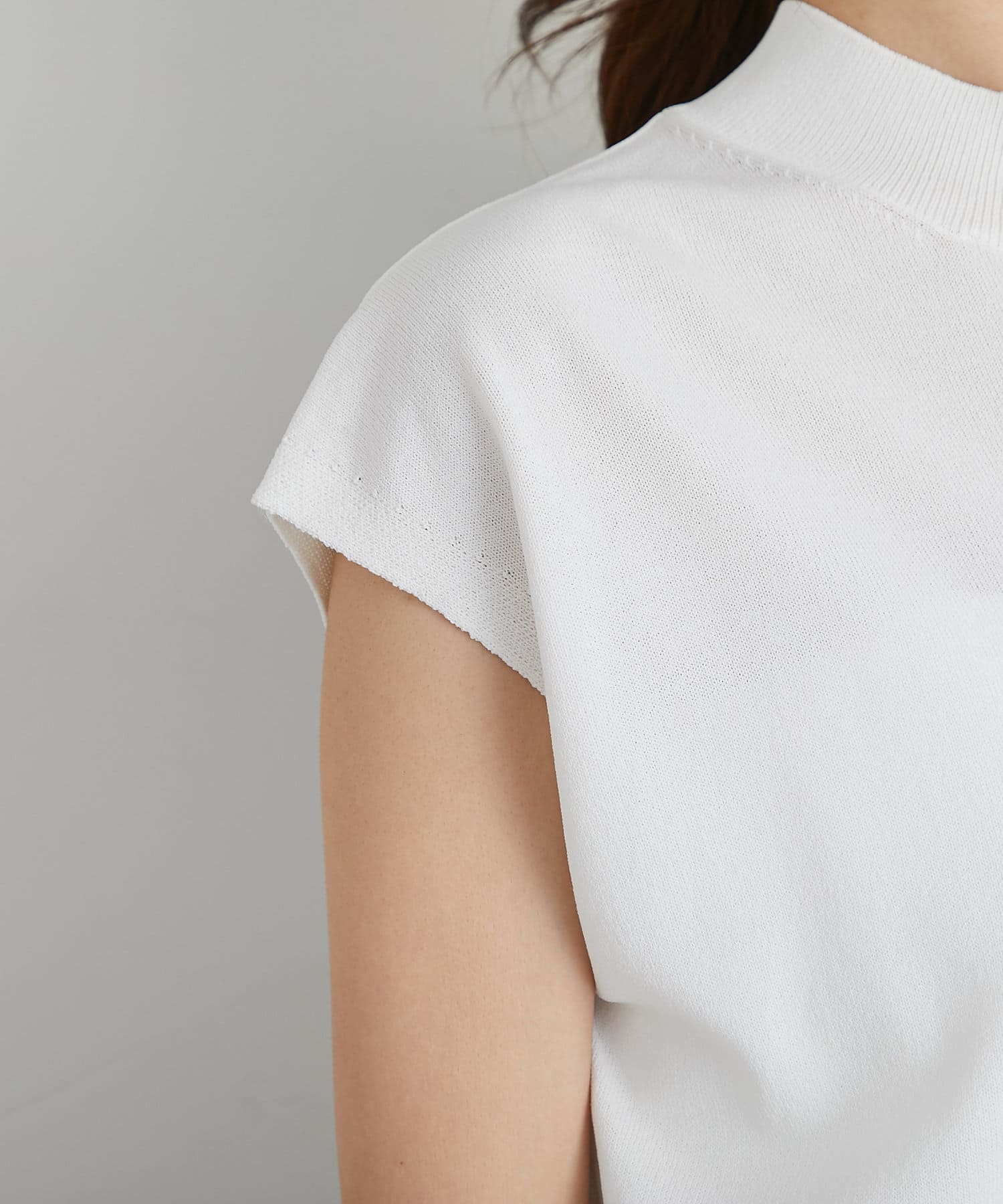 一見ベーシックなデザインですが、さり気なく色香を宿すハイネックや清潔感のあるフレンチスリーブで