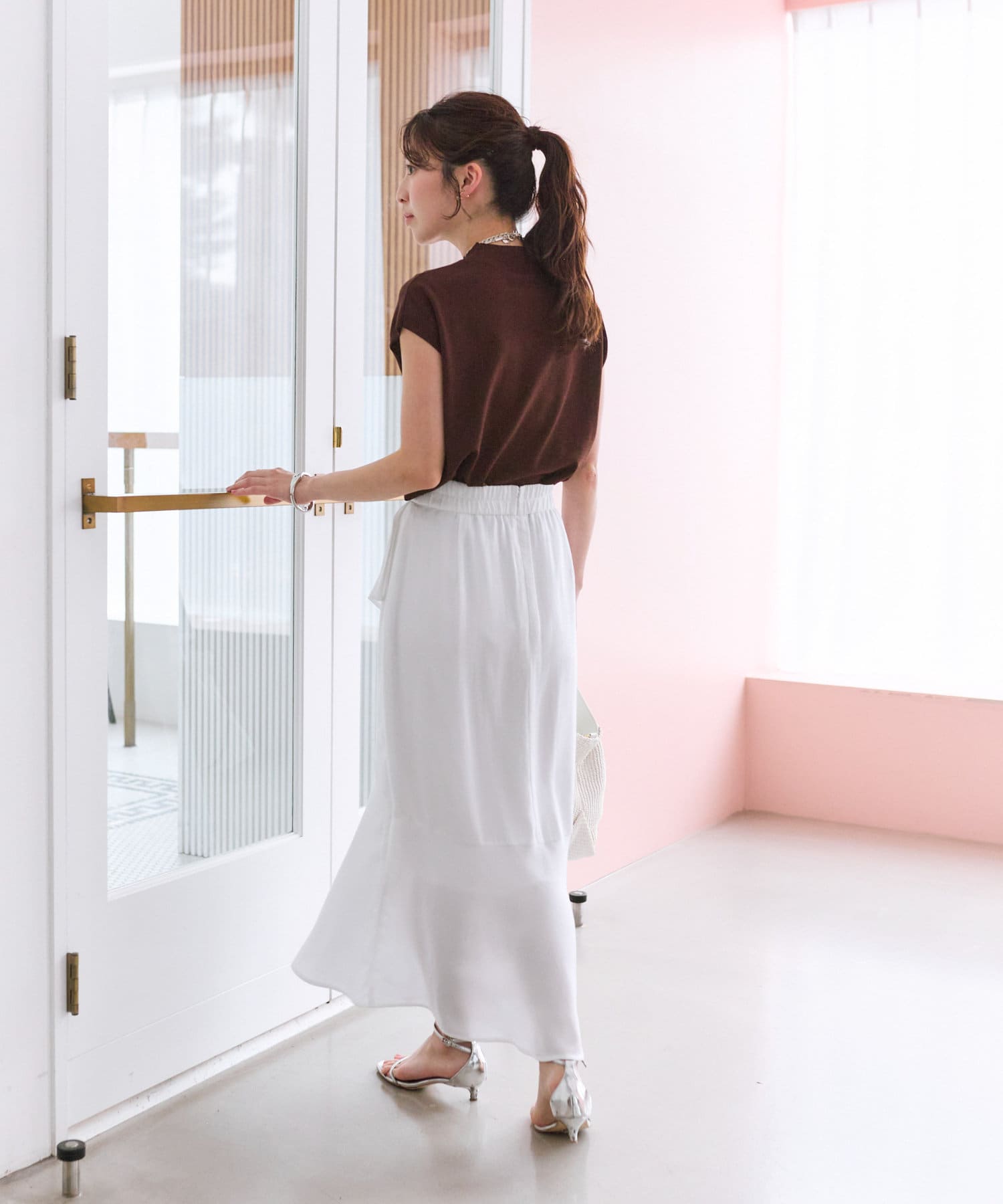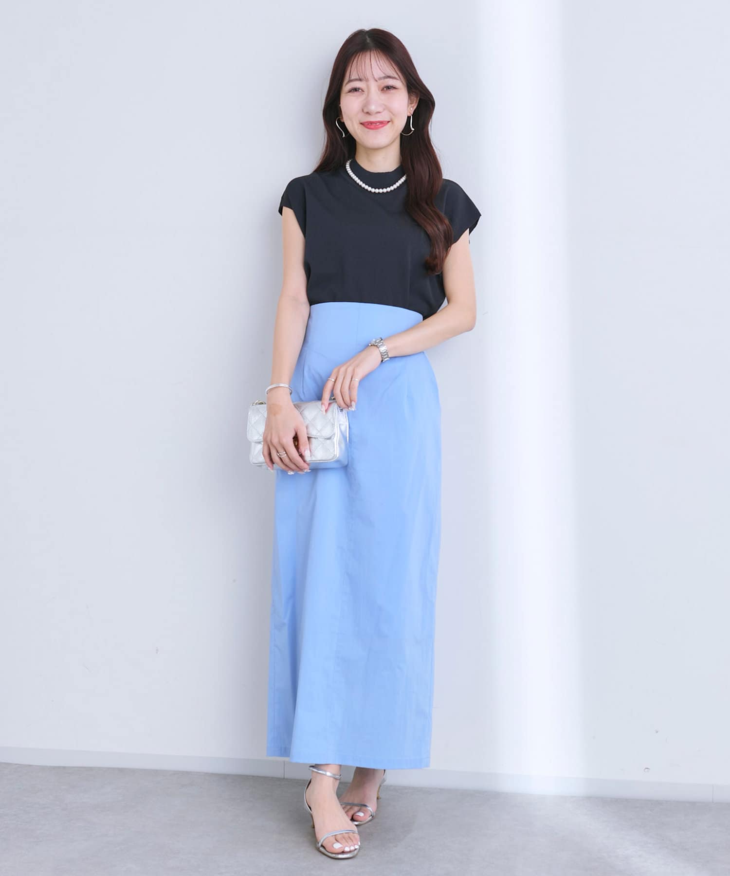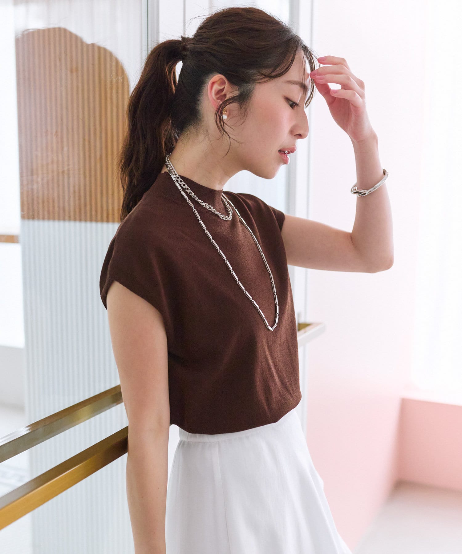 一見ベーシックなデザインですが、さり気なく色香を宿すハイネックや清潔感のあるフレンチスリーブで