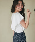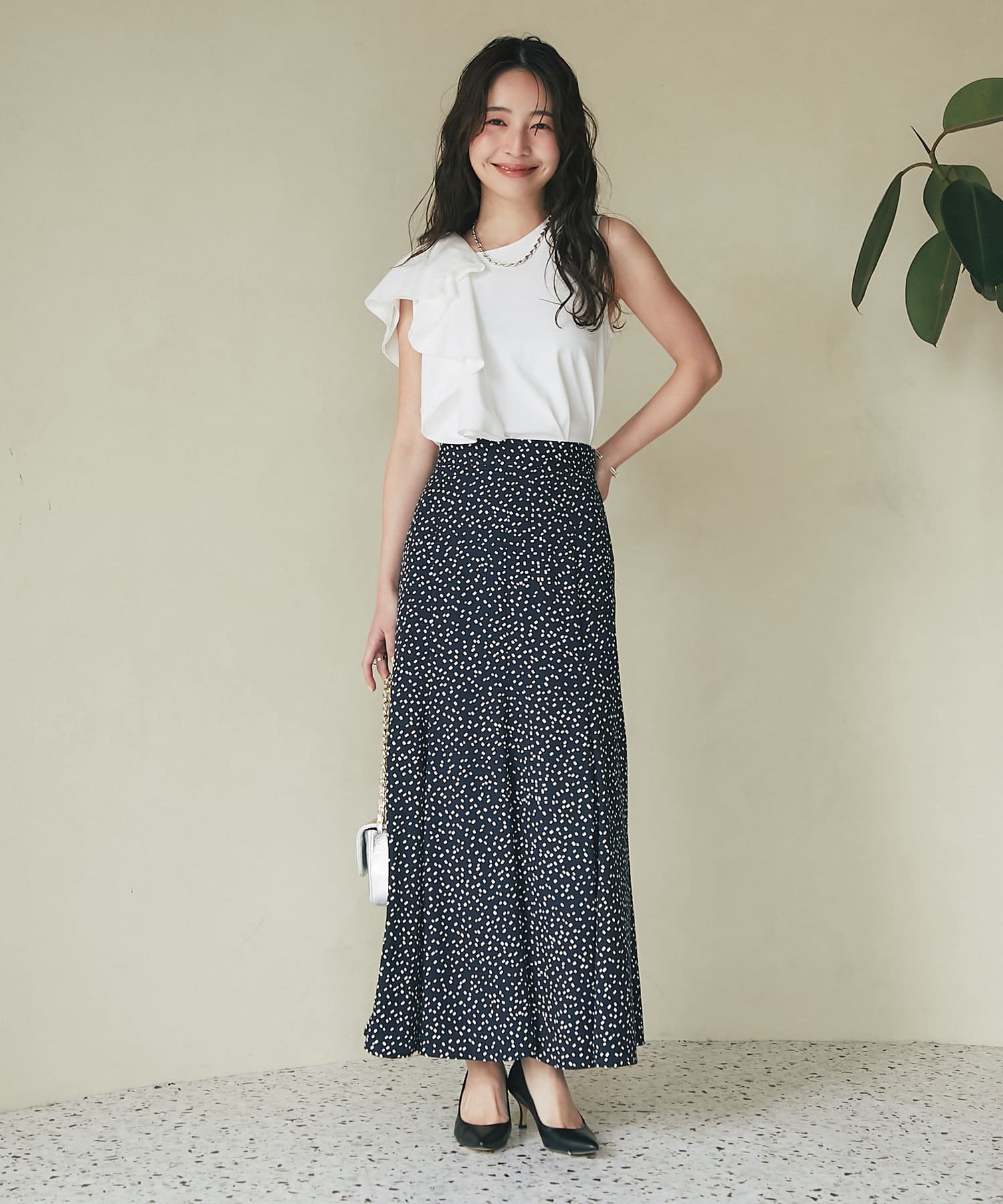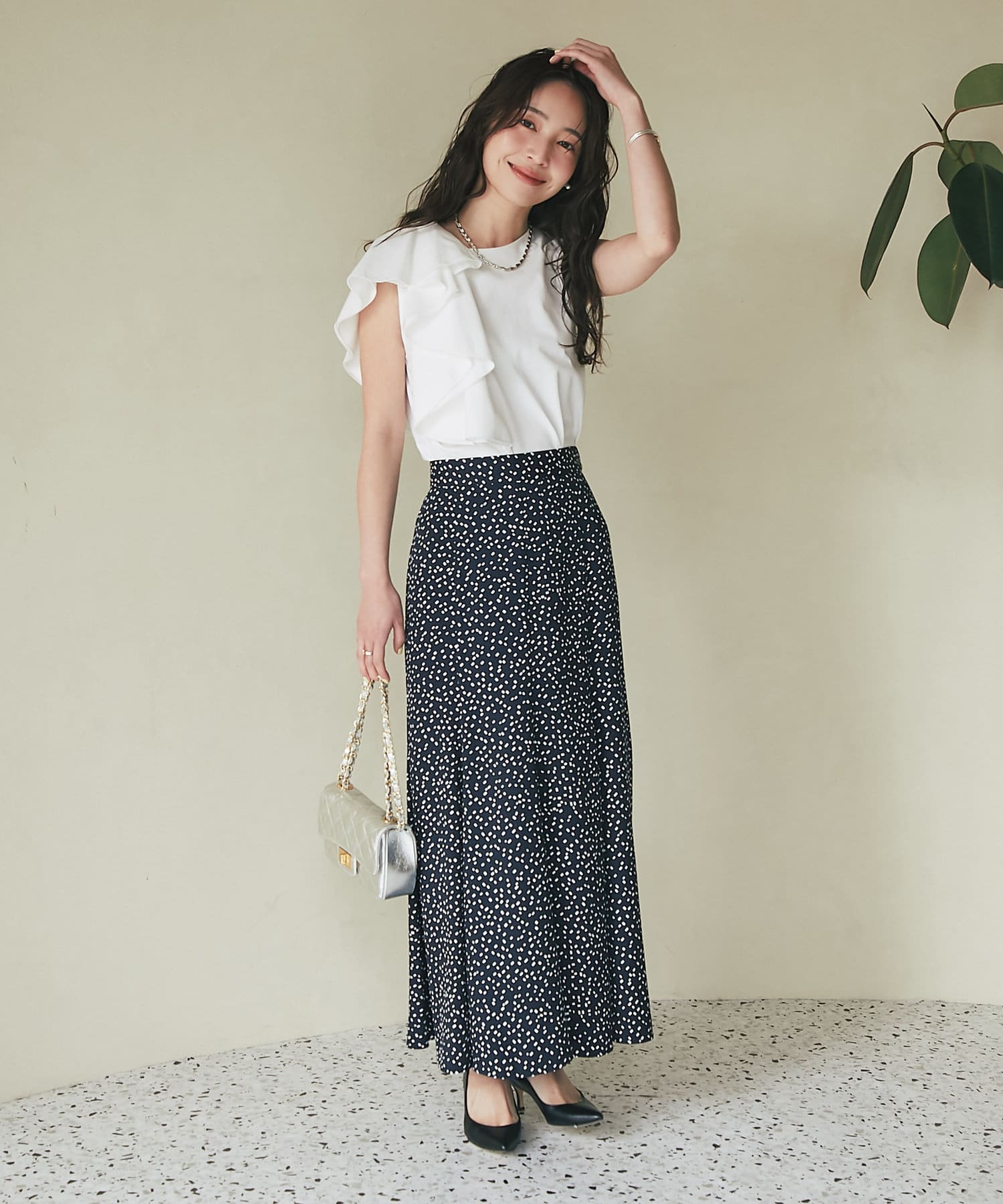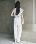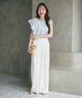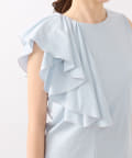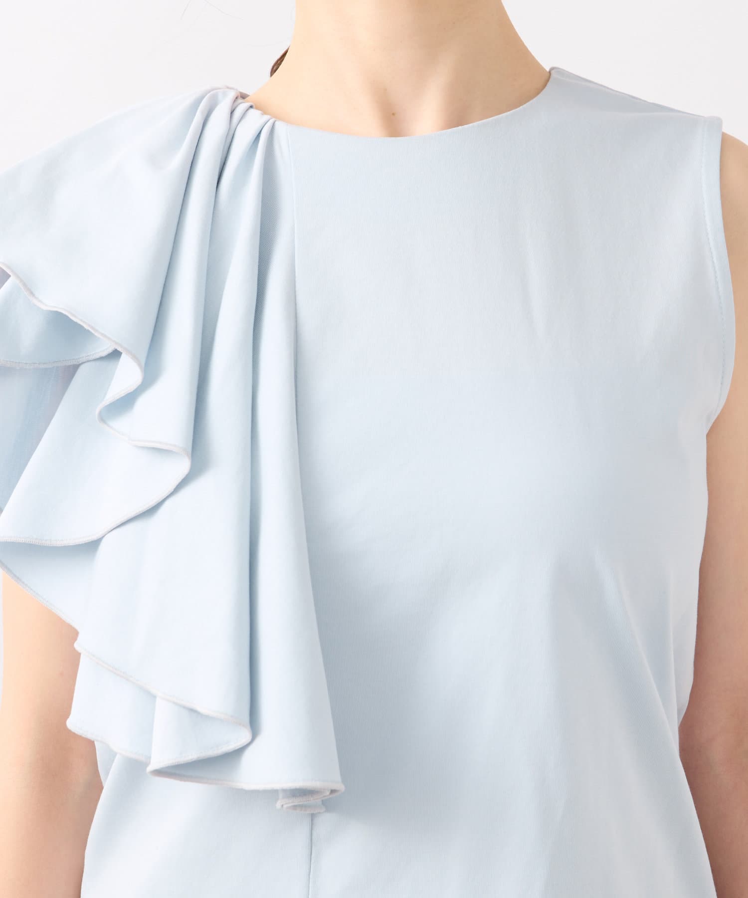 肩に施された繊細なフリルが、女性らしさと華やかさを演出。