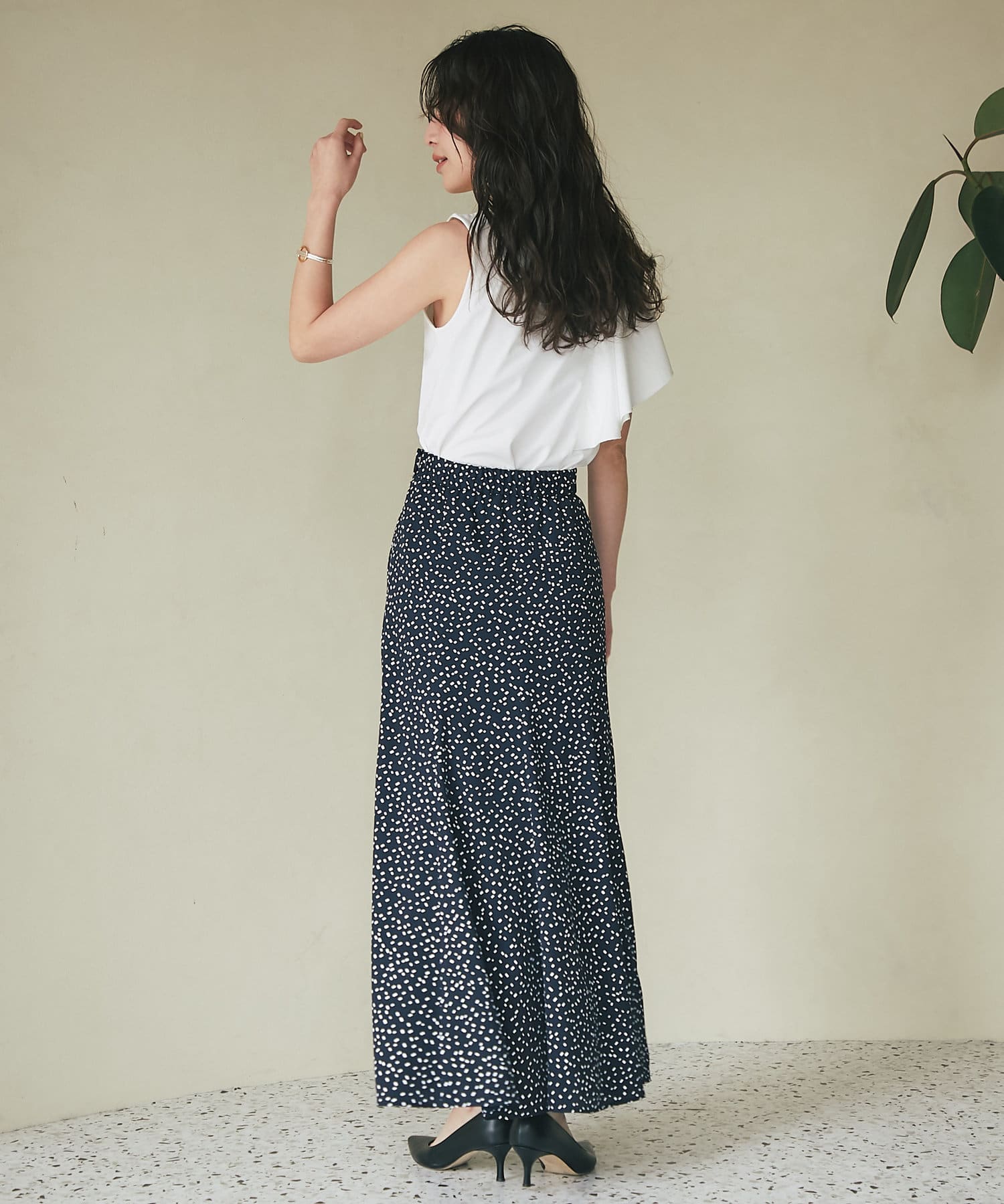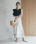 きちんと感のあるスカートやパンツを合わせてオフィススタイルに。