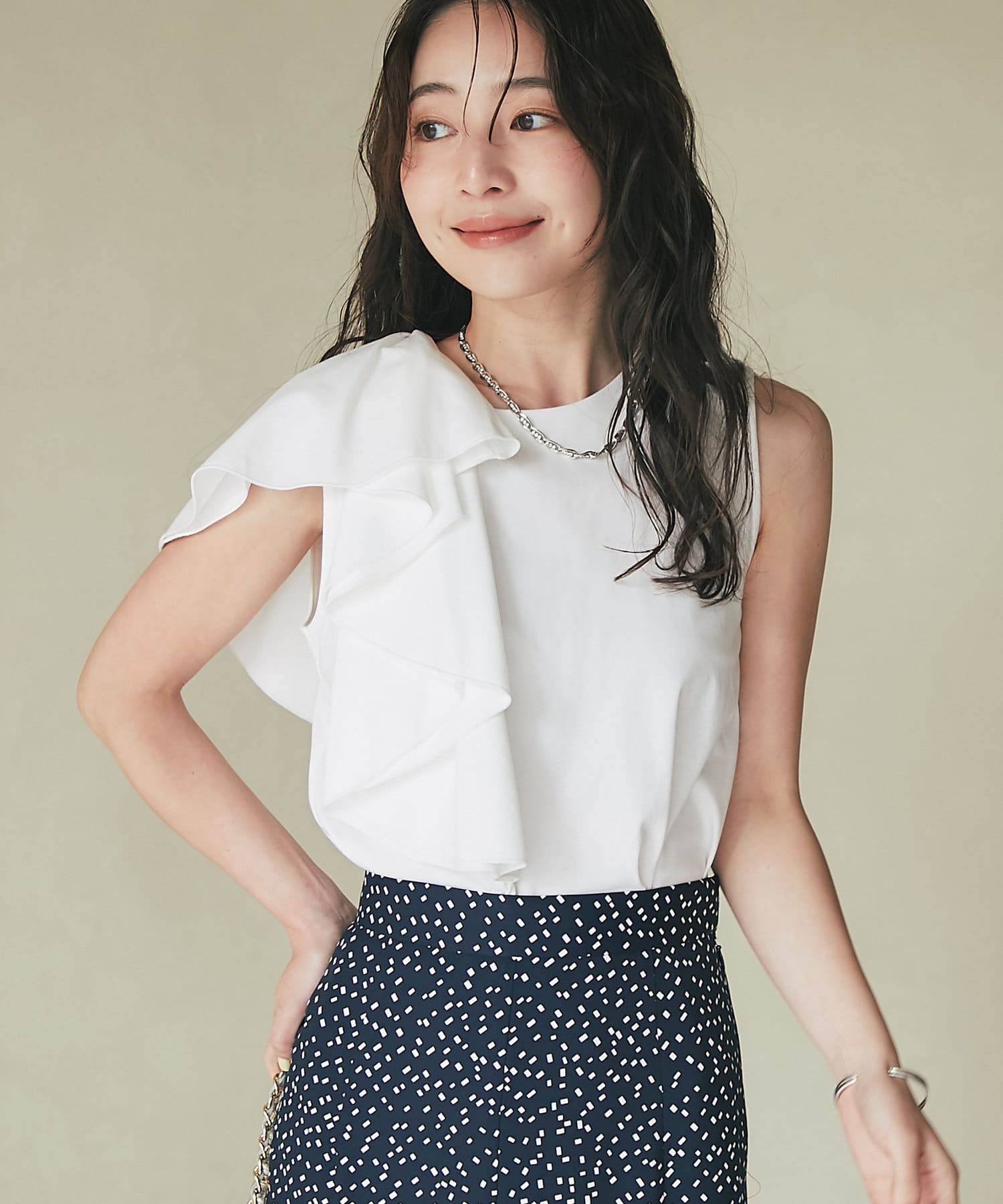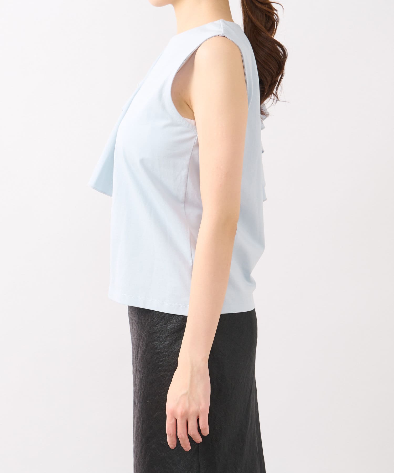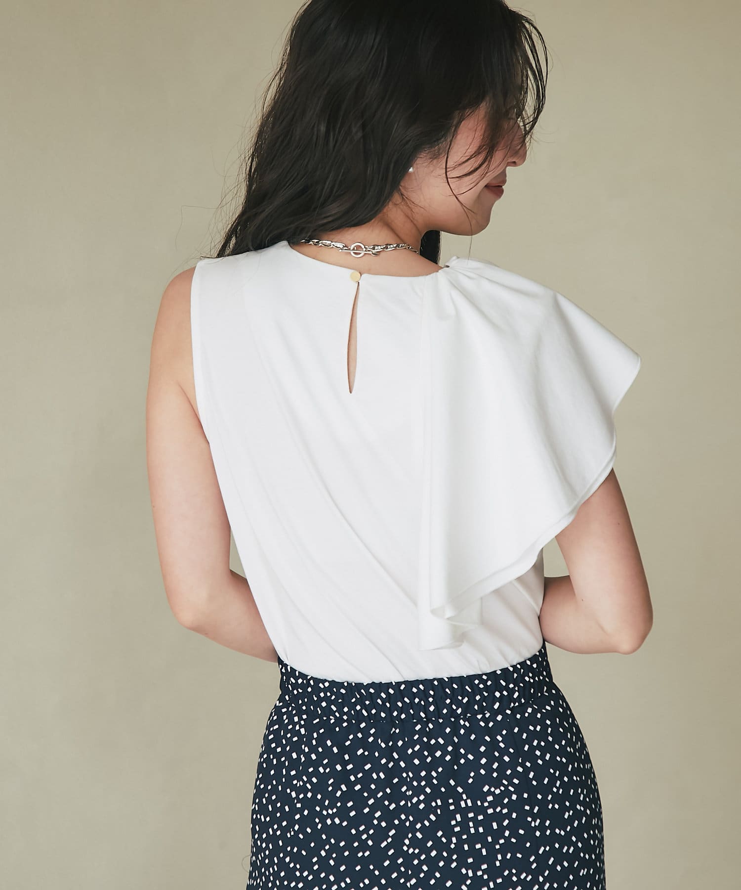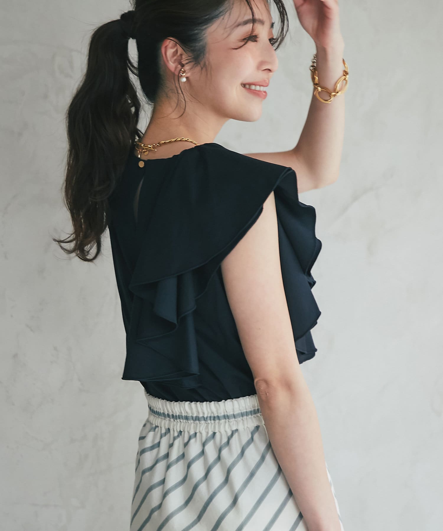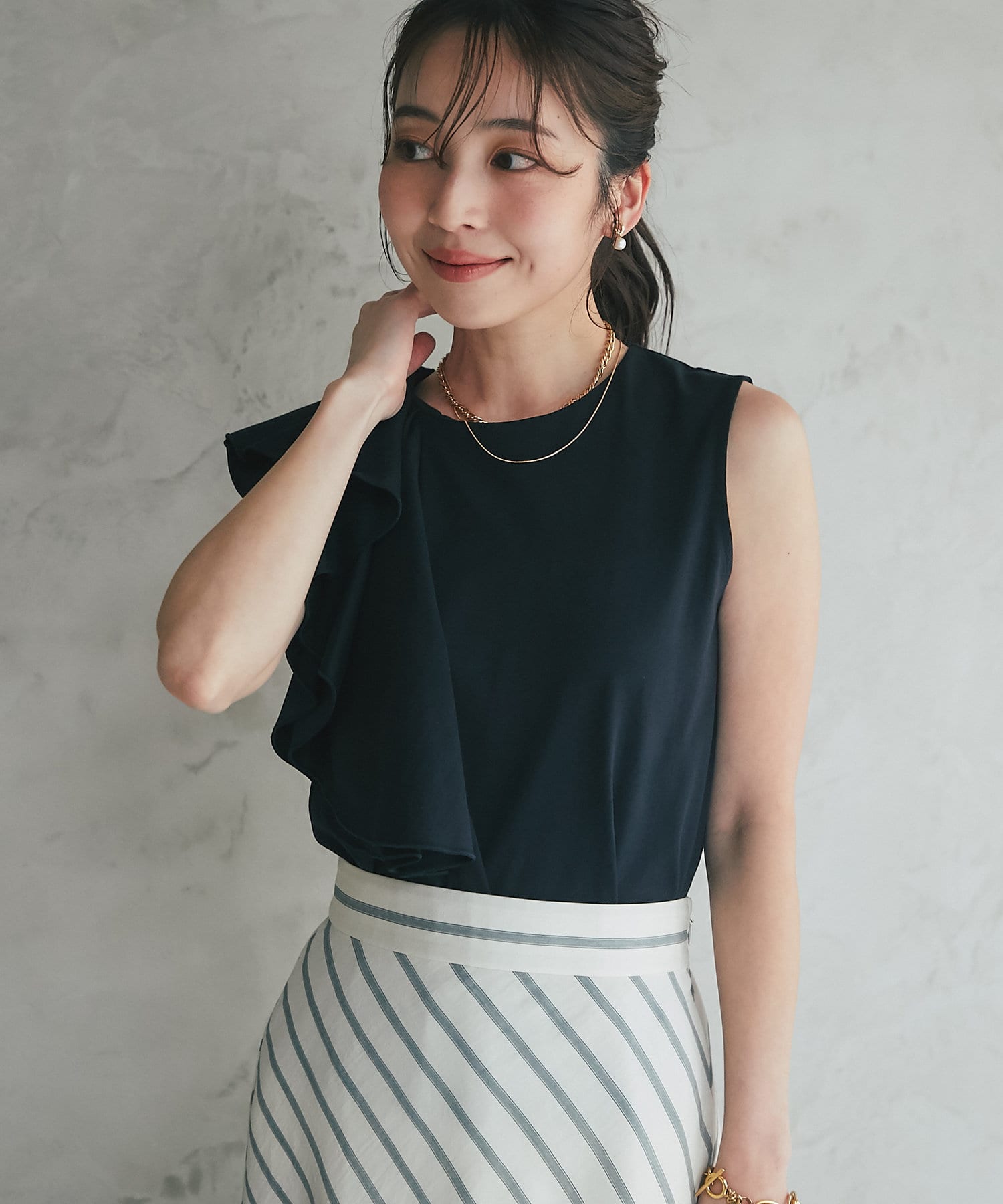 一枚で主役級!フリルが映える大人のノースリーブカットソー
