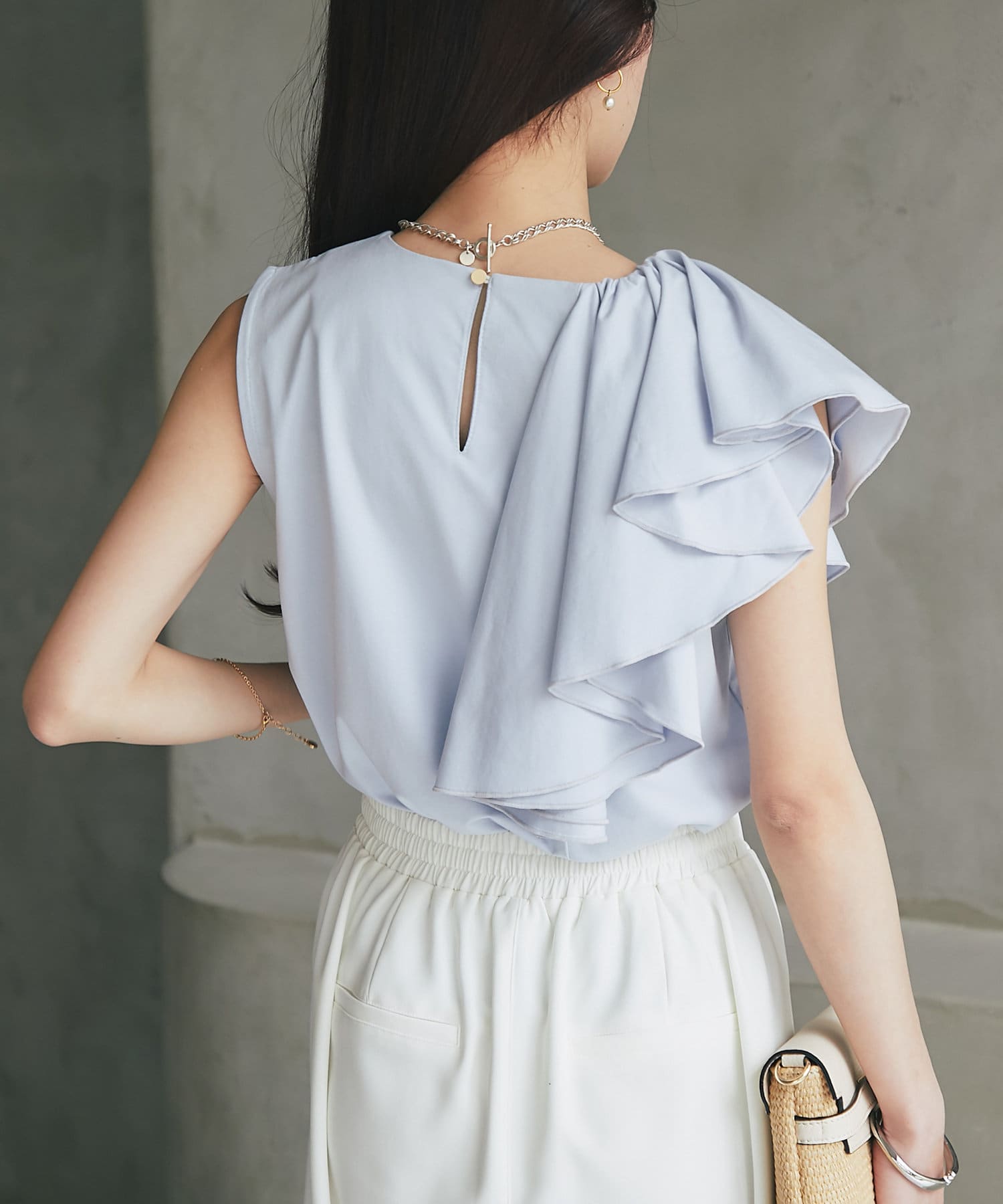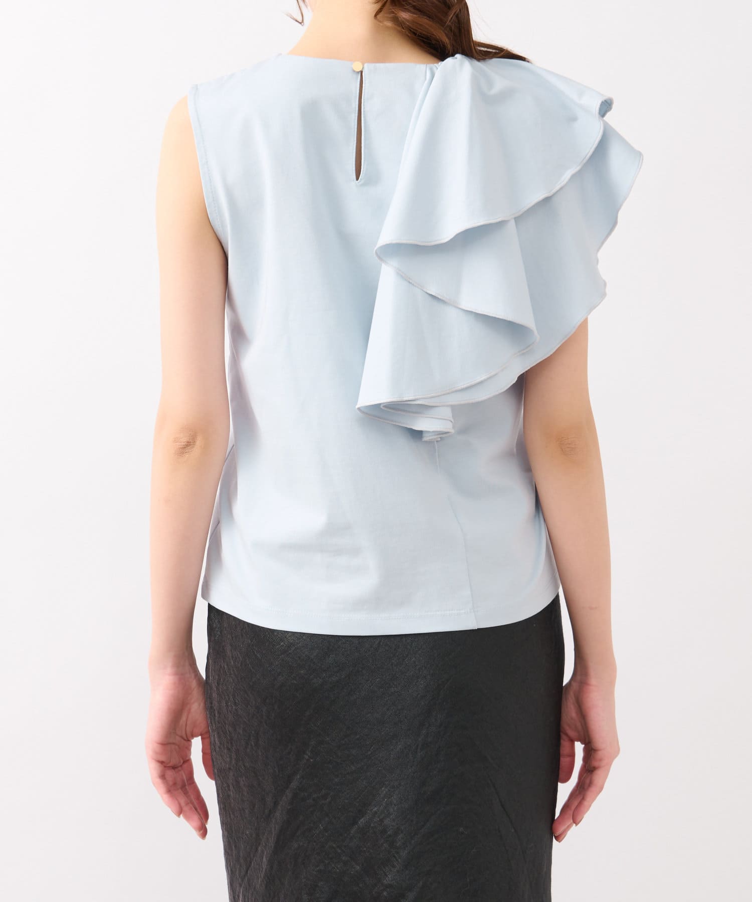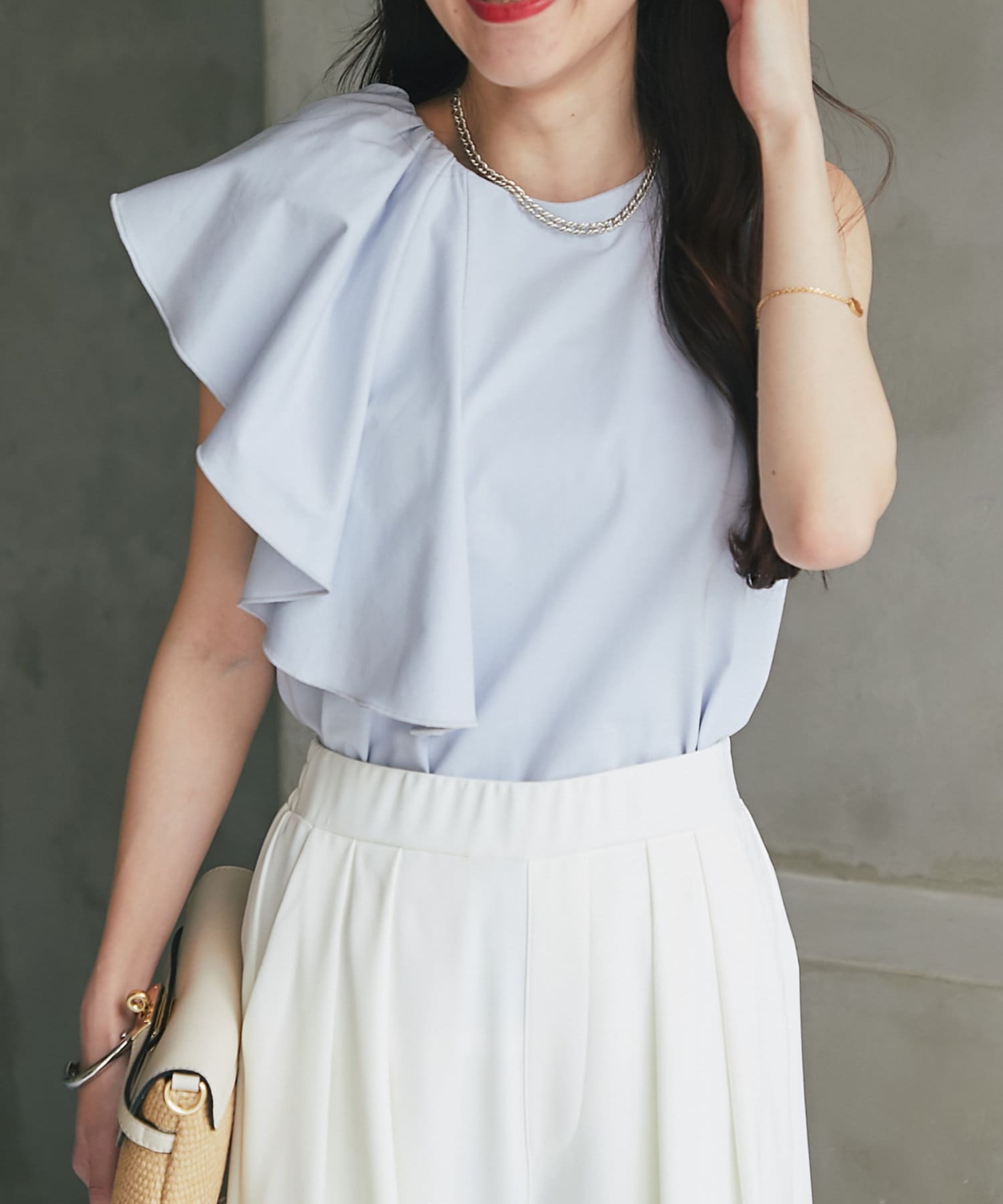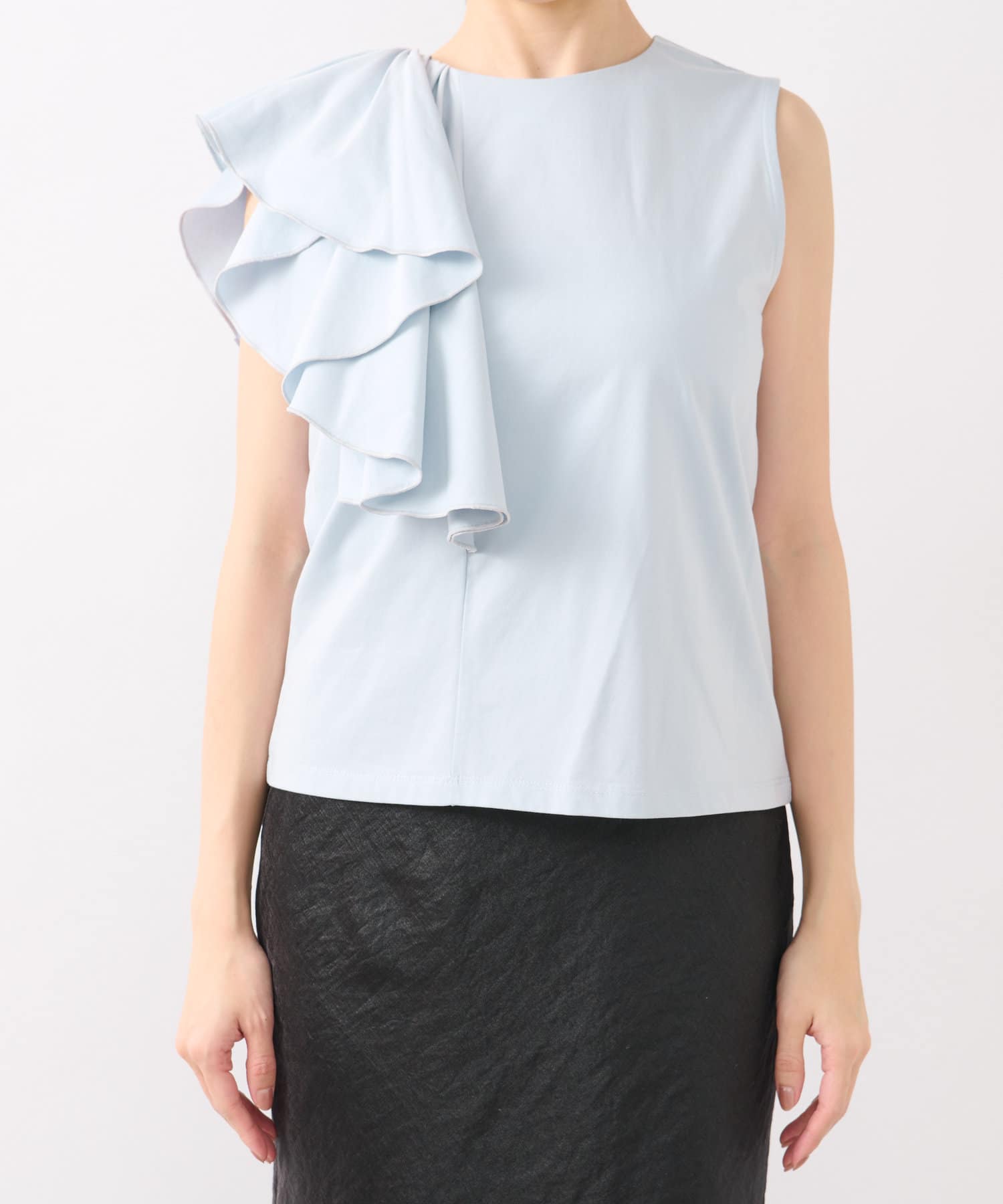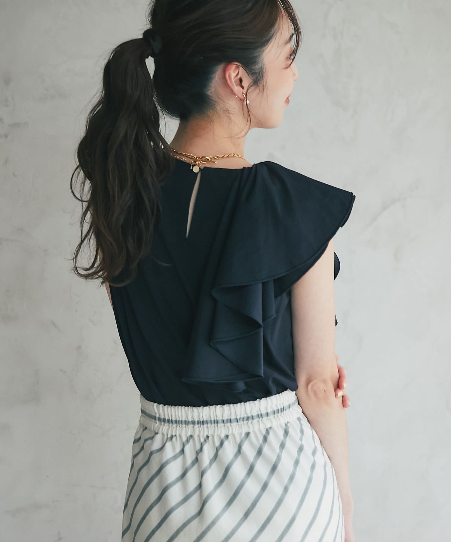 一枚で主役級!フリルが映える大人のノースリーブカットソー