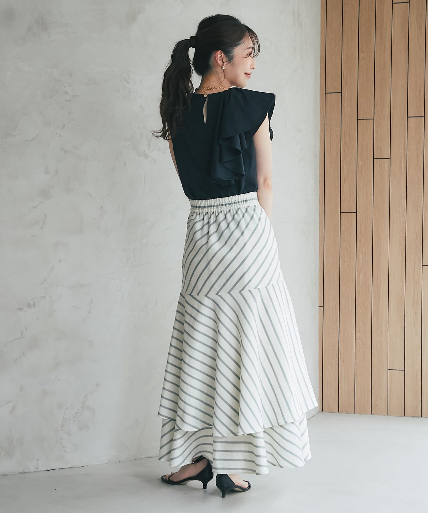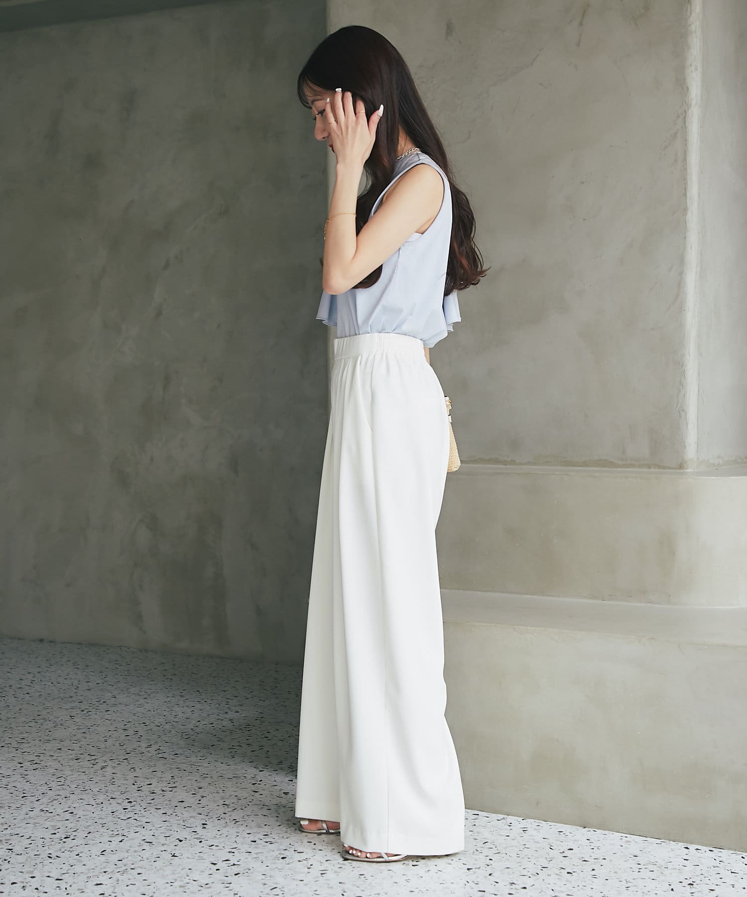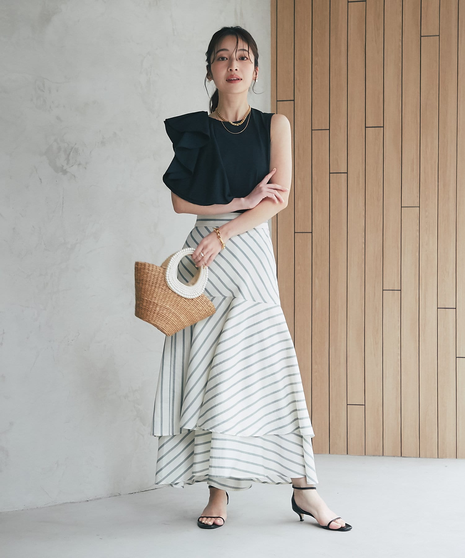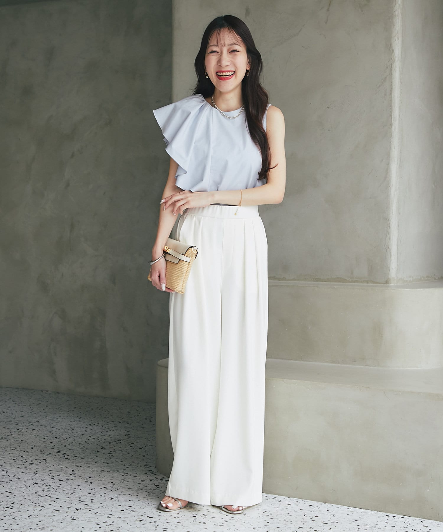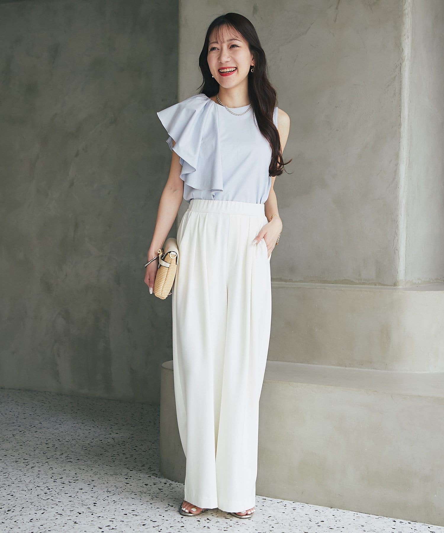 一枚で主役級!フリルが映える大人のノースリーブカットソー