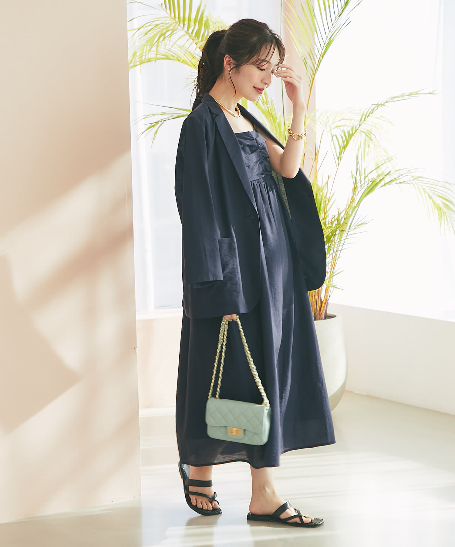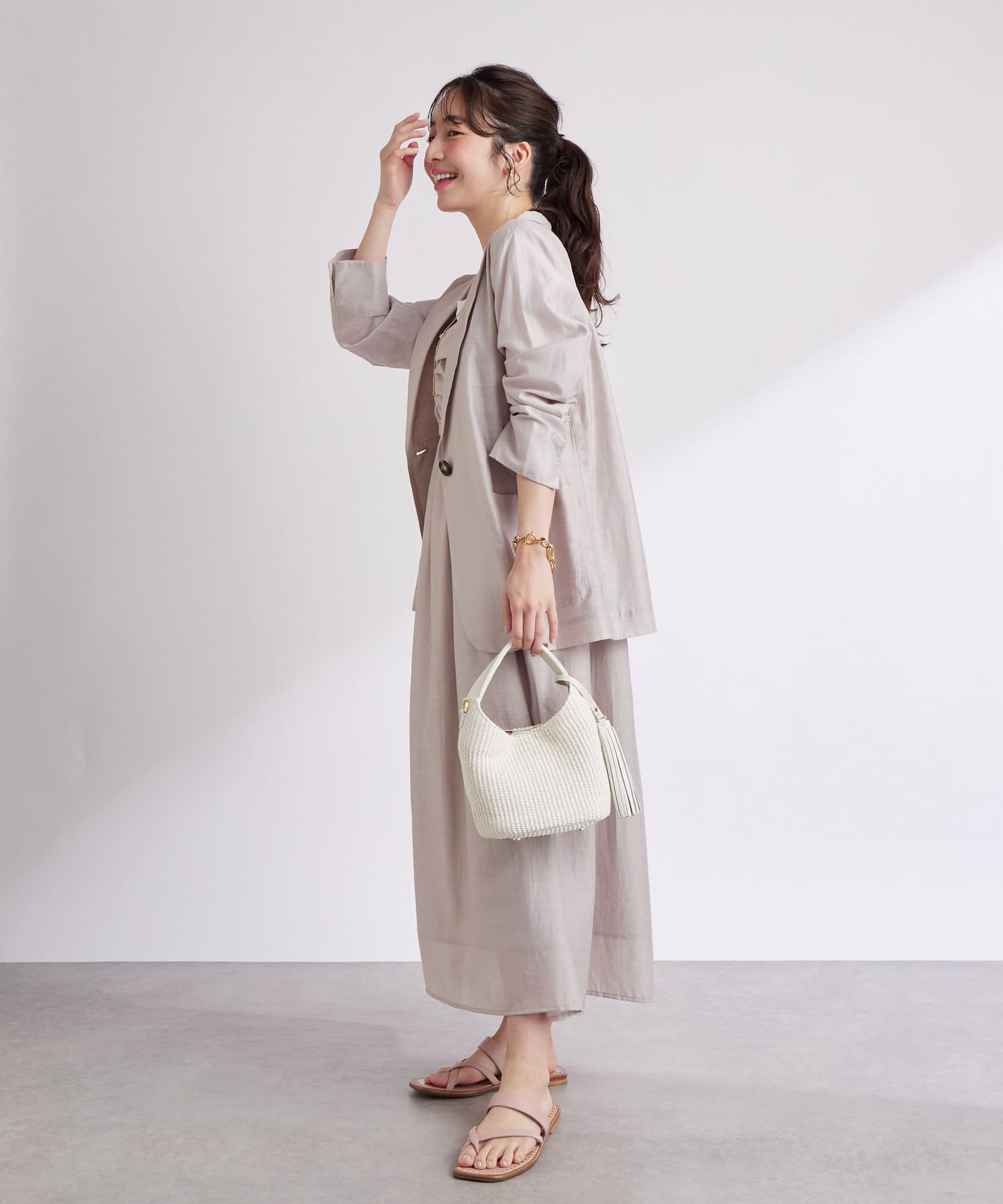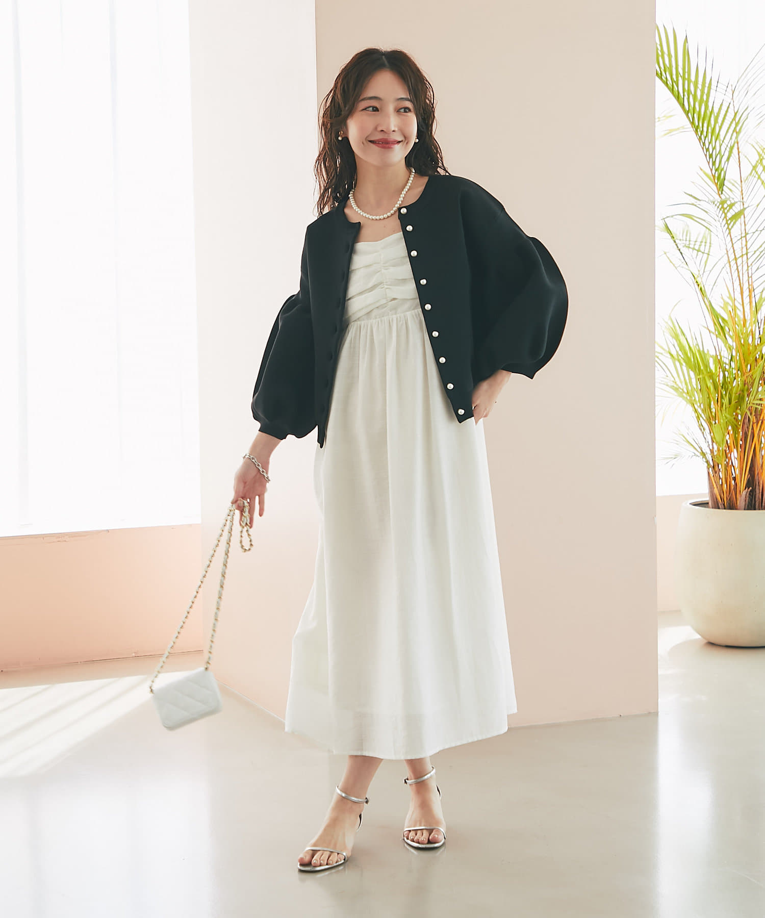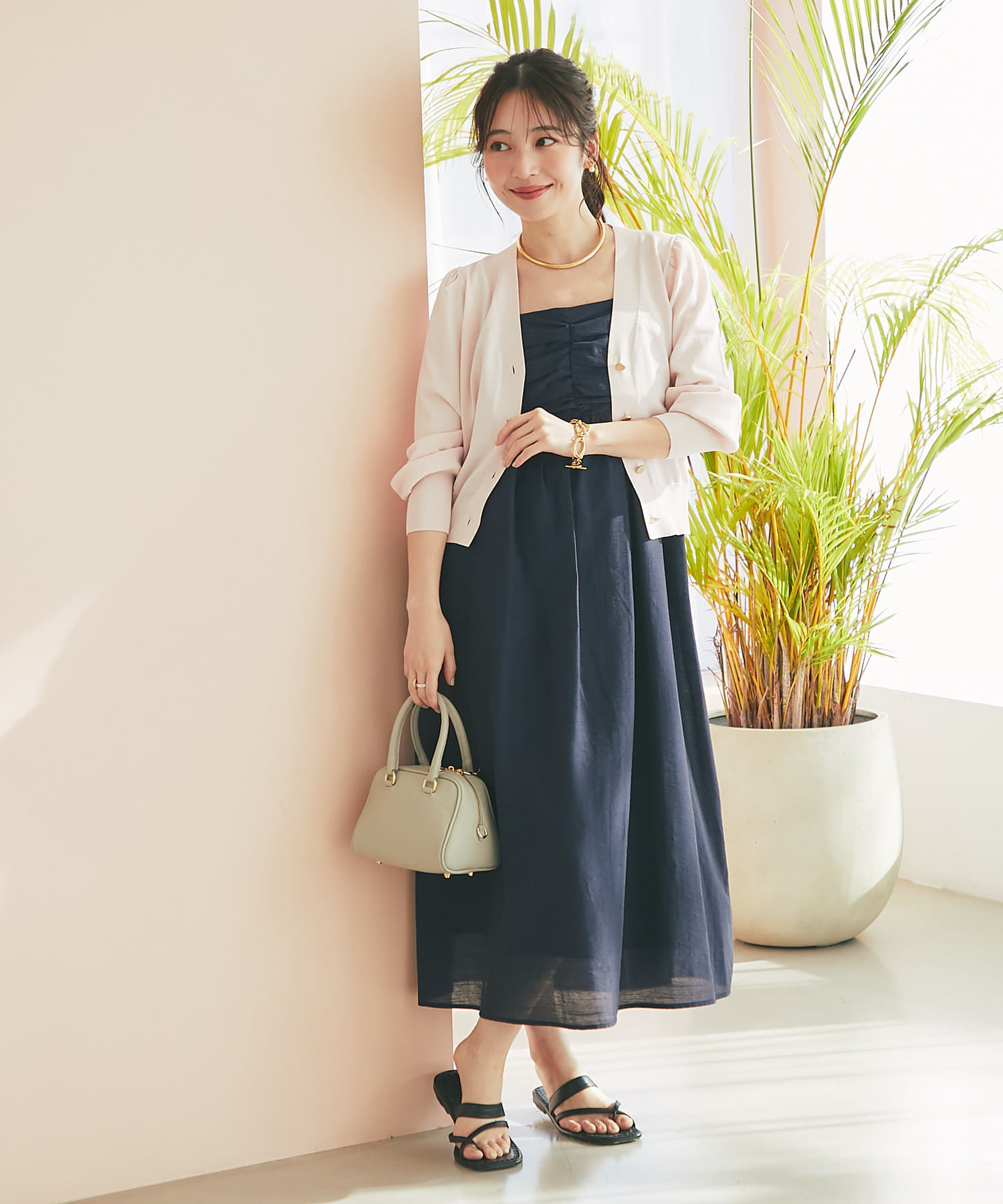 着心地の良いシンプルなデザインは、普段使いから特別な日のお出かけまで幅広く活用でき、ワードローブに一つあると重宝するアイテムです。