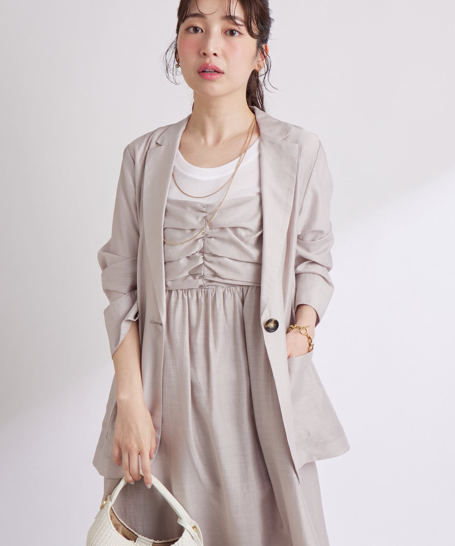 セットでの着用はもちろん、インナー次第で様々なコーデが楽しめます。