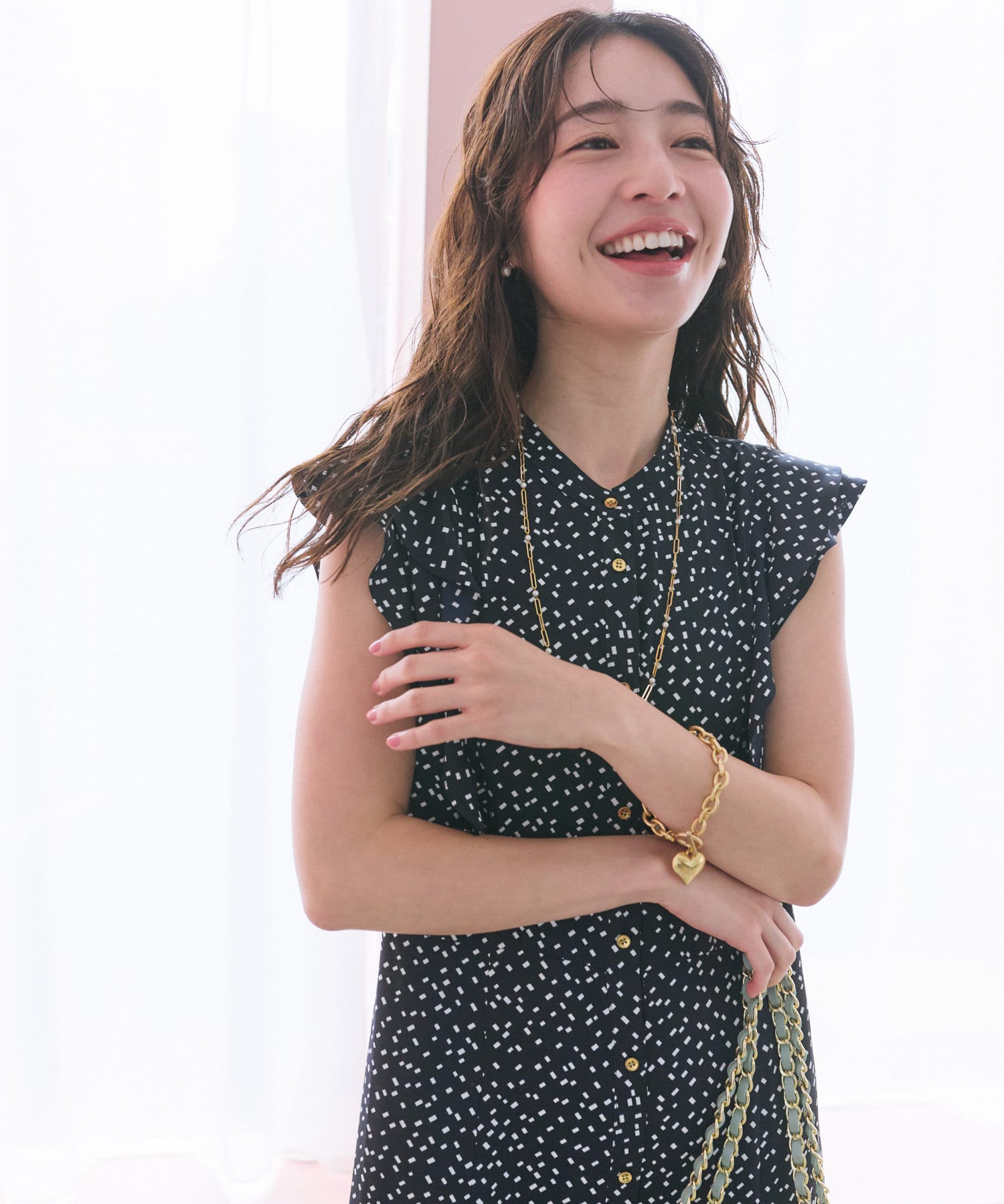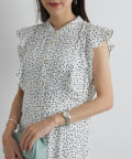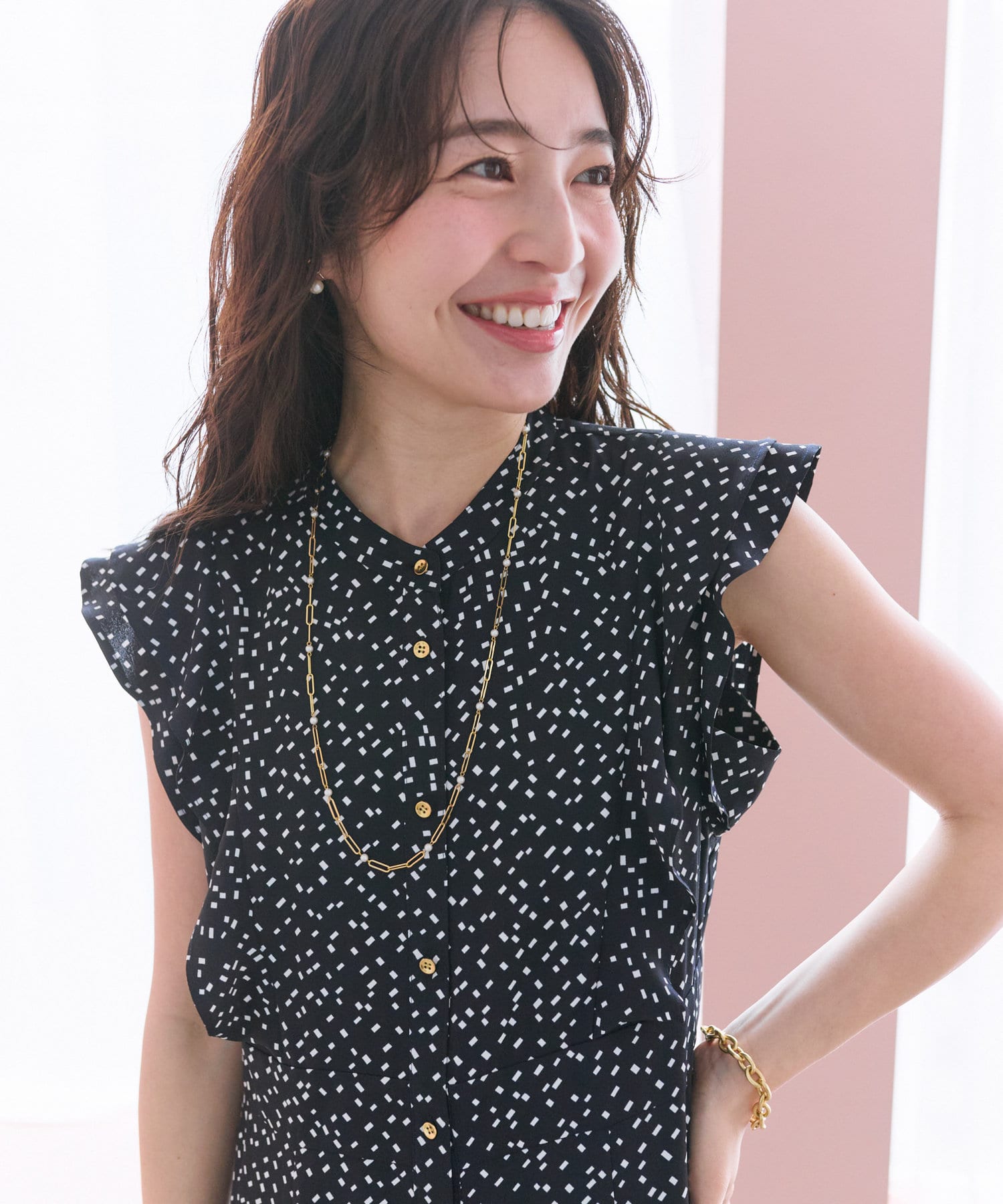 ジョーゼットの薄手生地を使用し、さらりとした落ち感のある素材が女性らしいシルエットを作ってくれます。