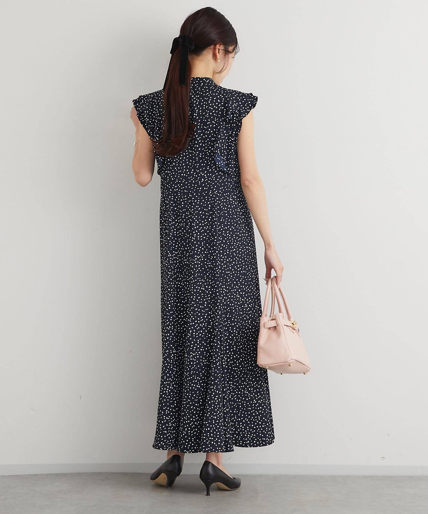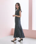スタンドカラーでネックラインはすっきりと、スカート部分は裾に向かって広がるマーメイドラインで上品な仕上がり。