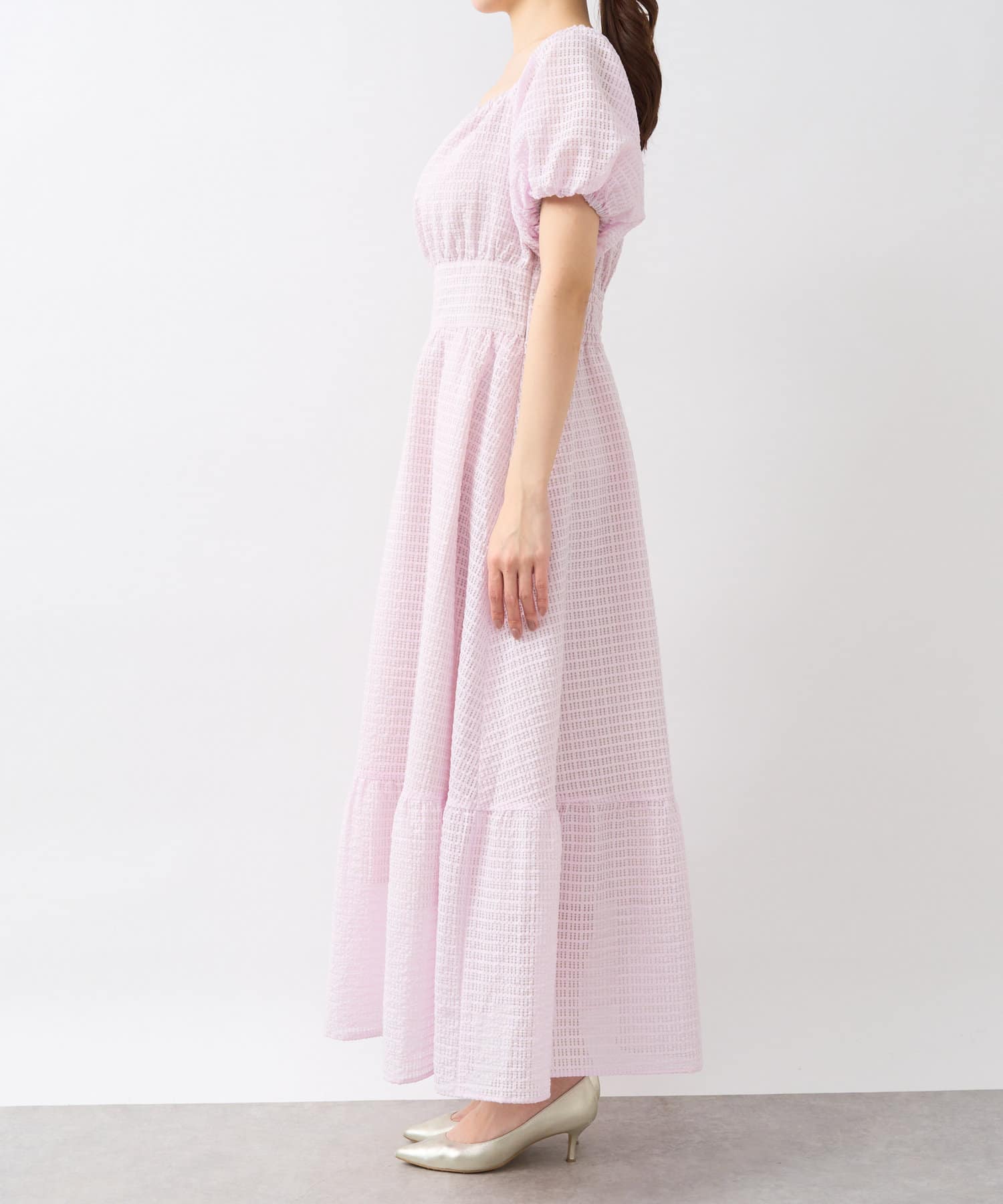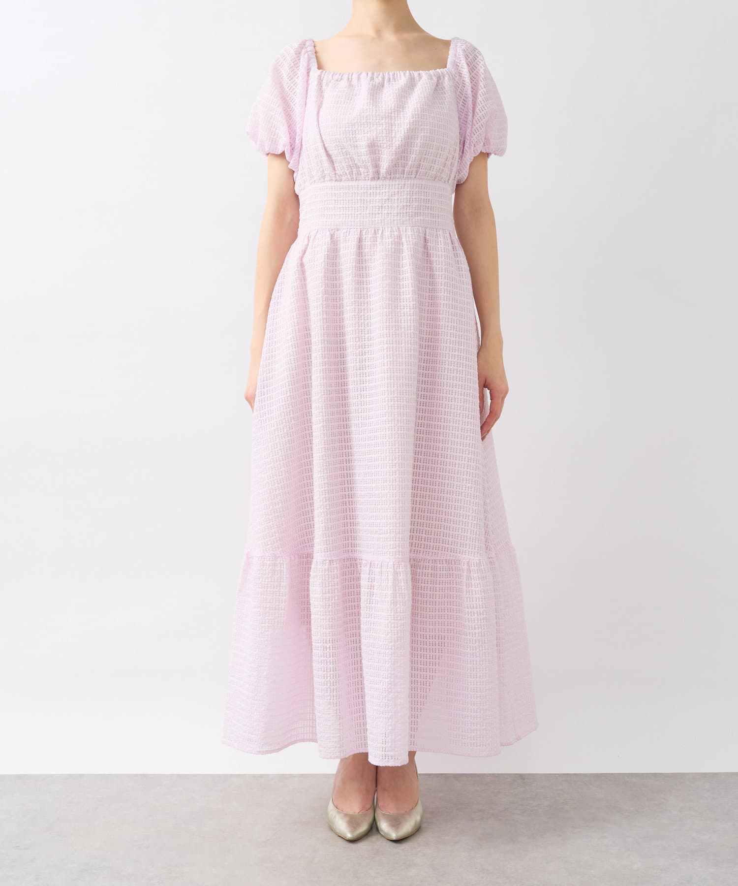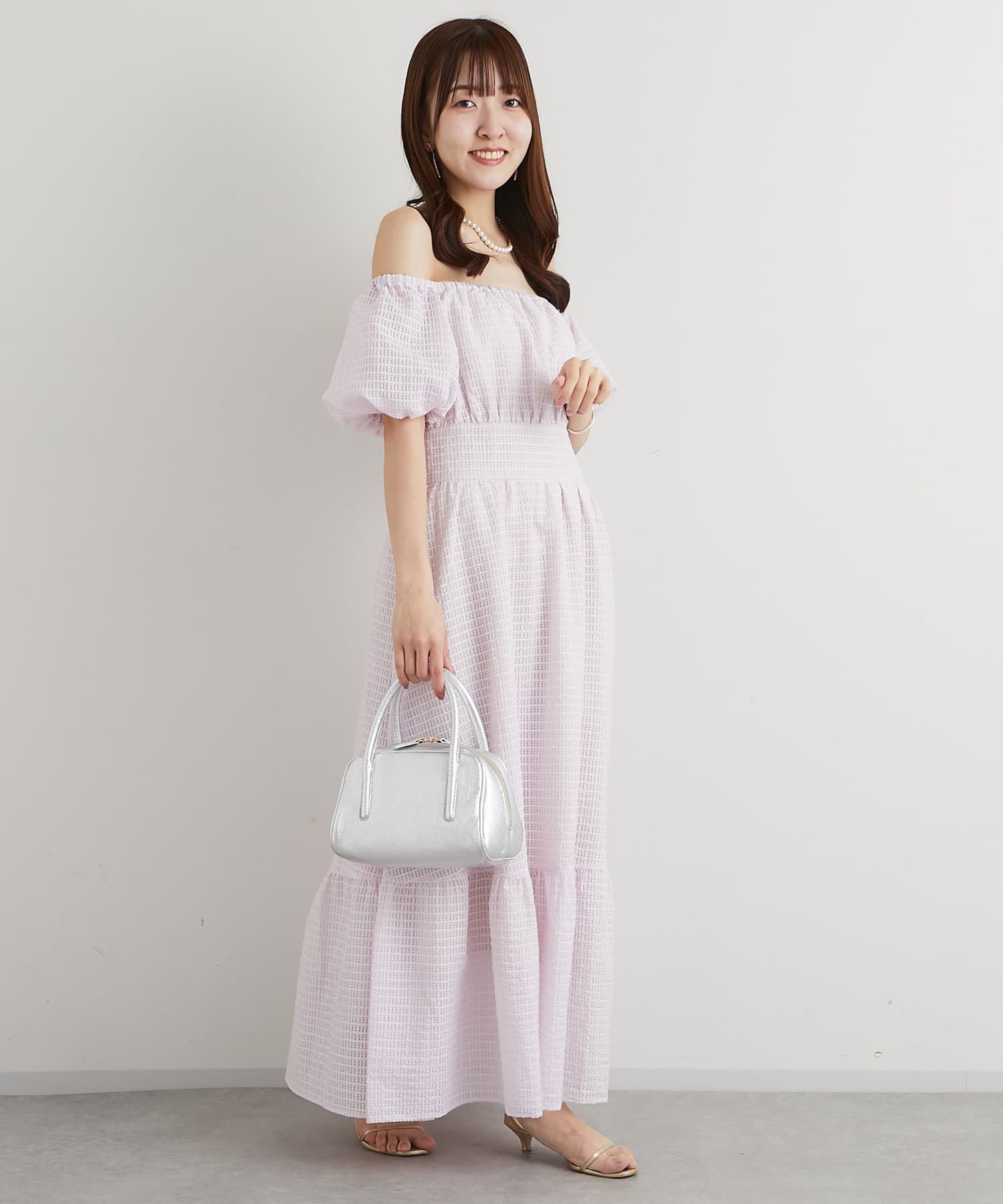 繊細な格子柄の生地が、女性らしい柔らかさと華やかさを演出してくれます。