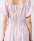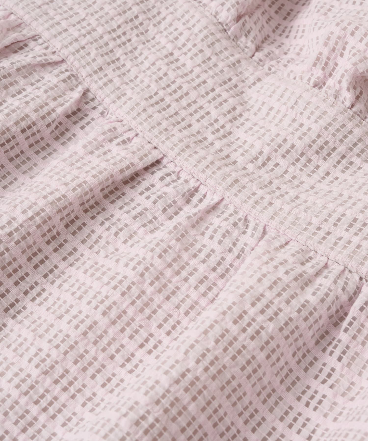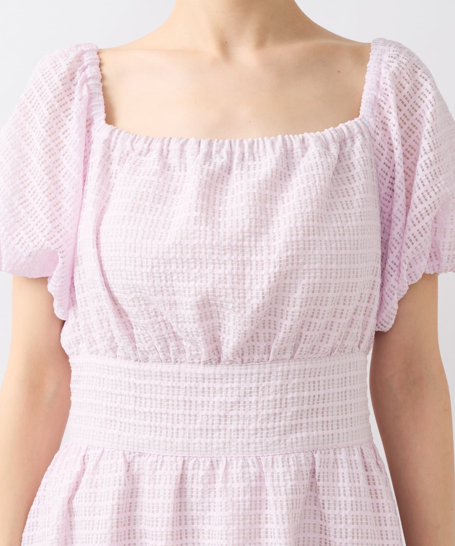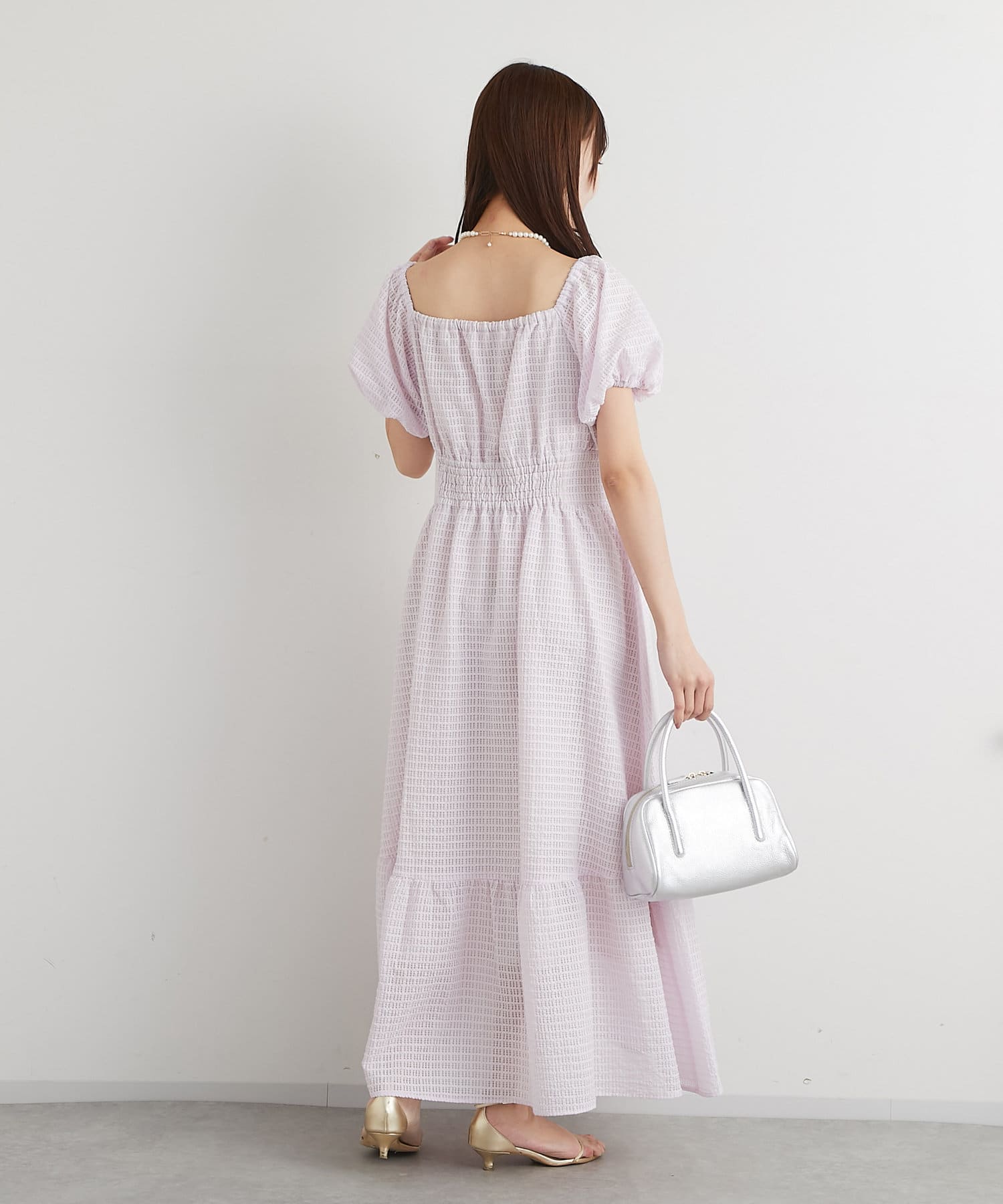 繊細な格子柄の生地が、女性らしい柔らかさと華やかさを演出してくれます。