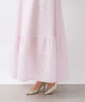 裾に向かって広がる裾のデザインが、軽やかでフェミニンな印象を与え、