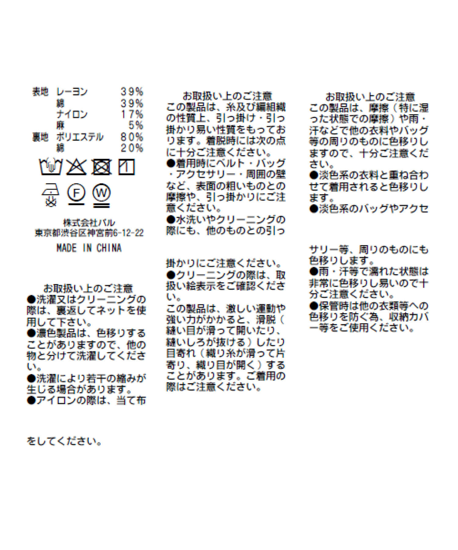 品番 LBZ1051409A0009 素材 表地:レーヨン39% 綿39% ナイロン17% 麻5%
