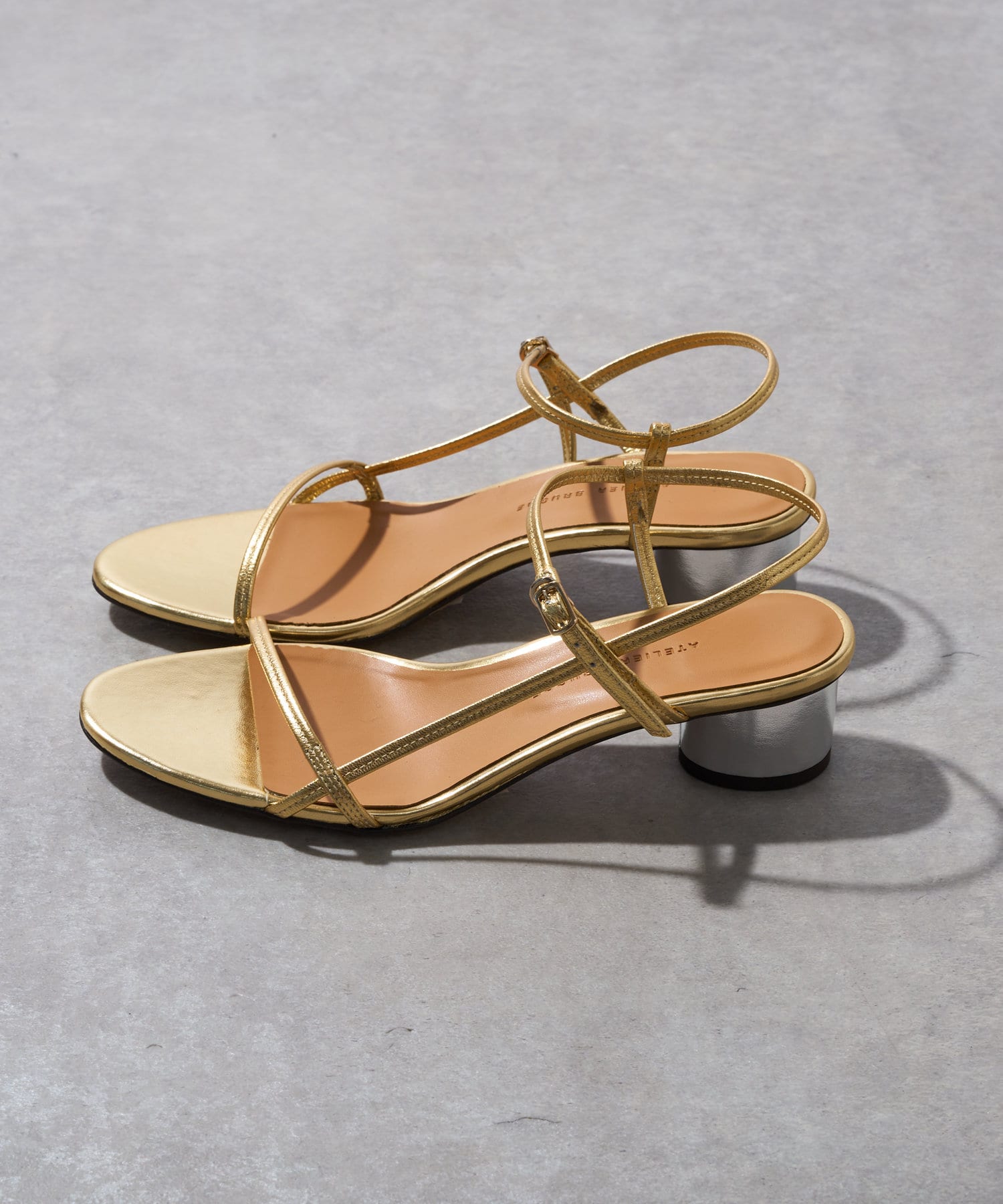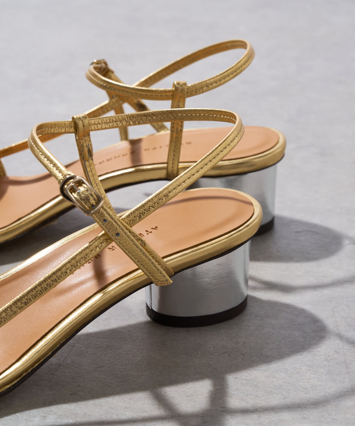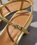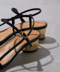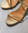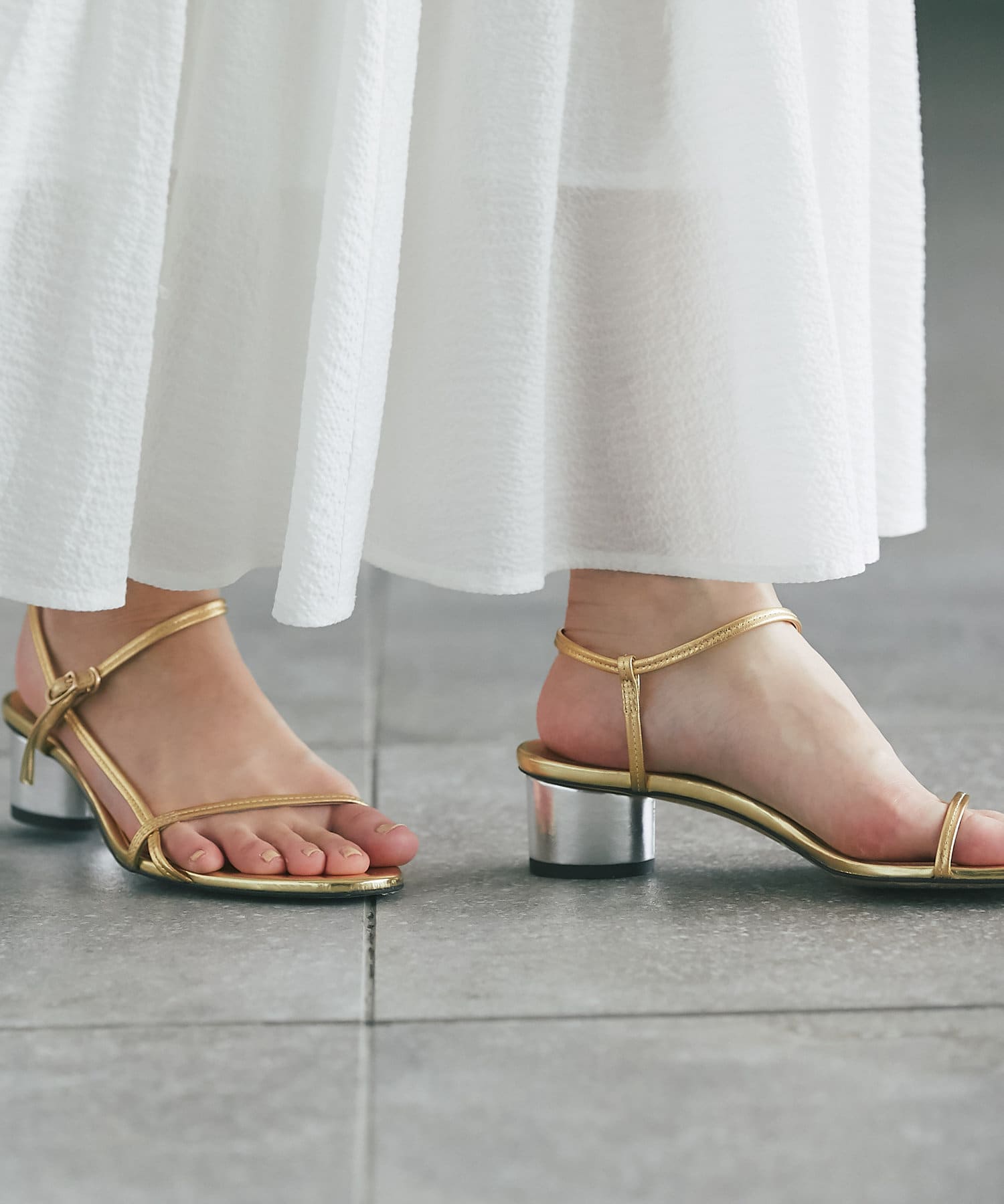 メタリックヒールが存在感のある上品な雰囲気のサンダル。