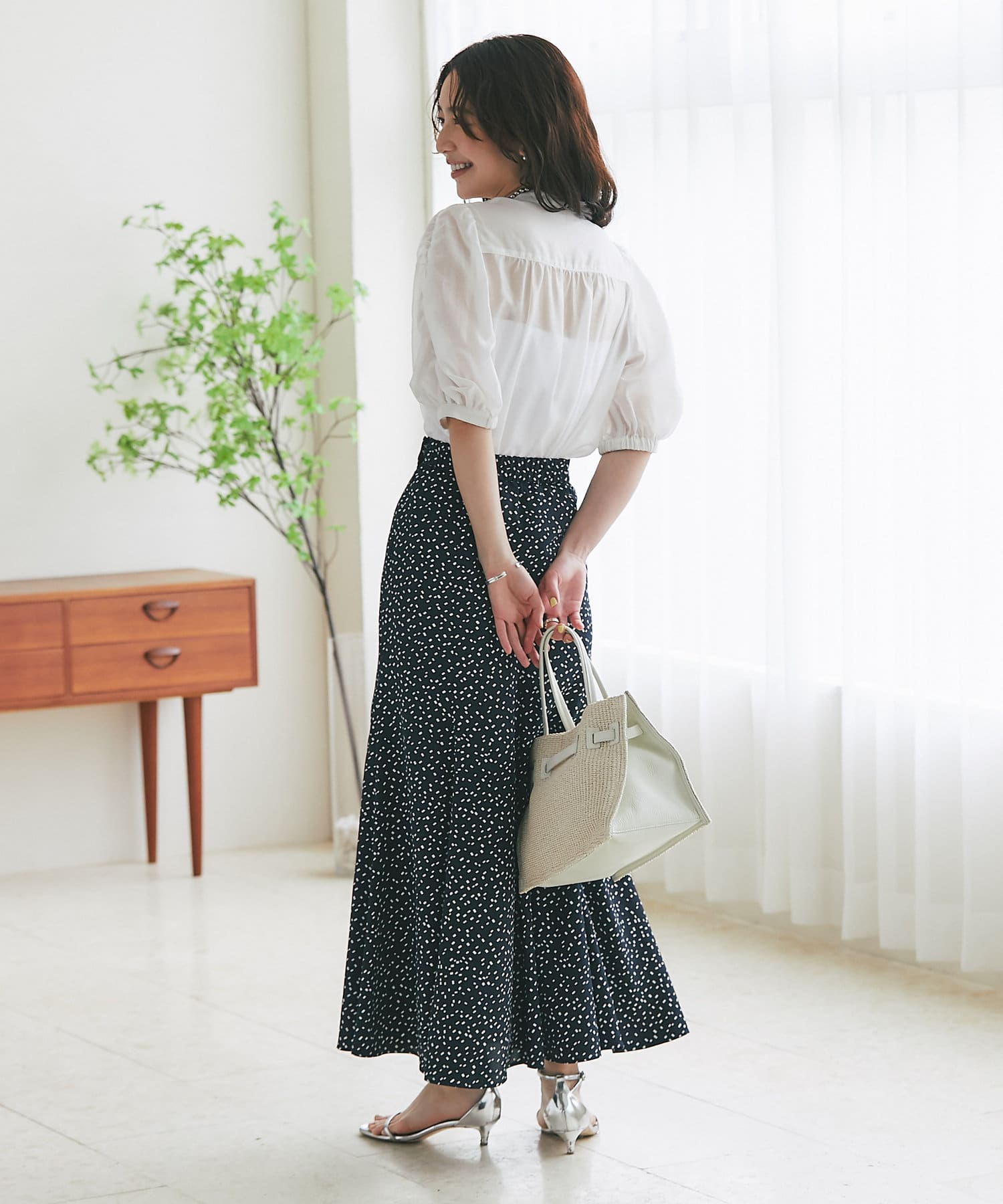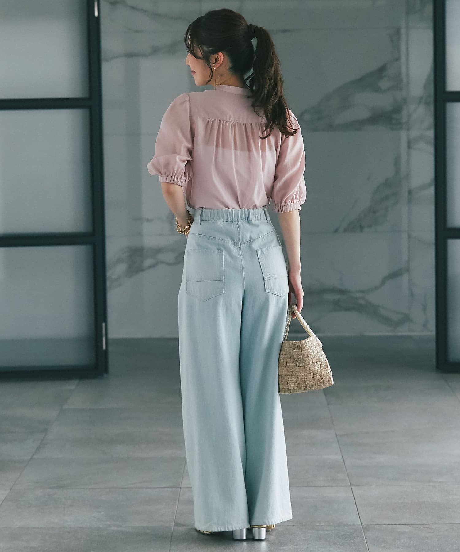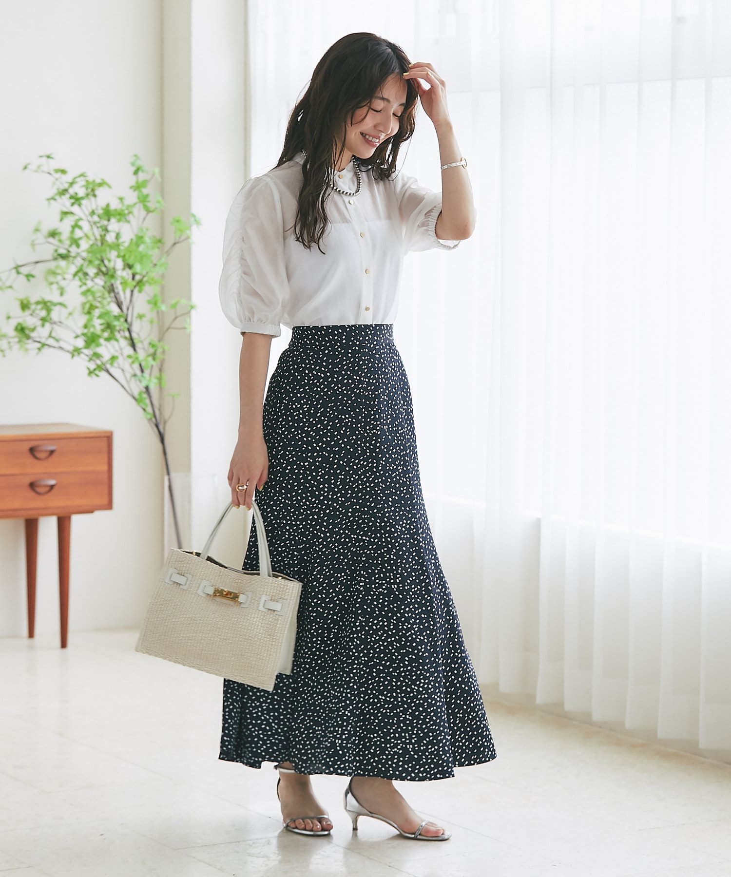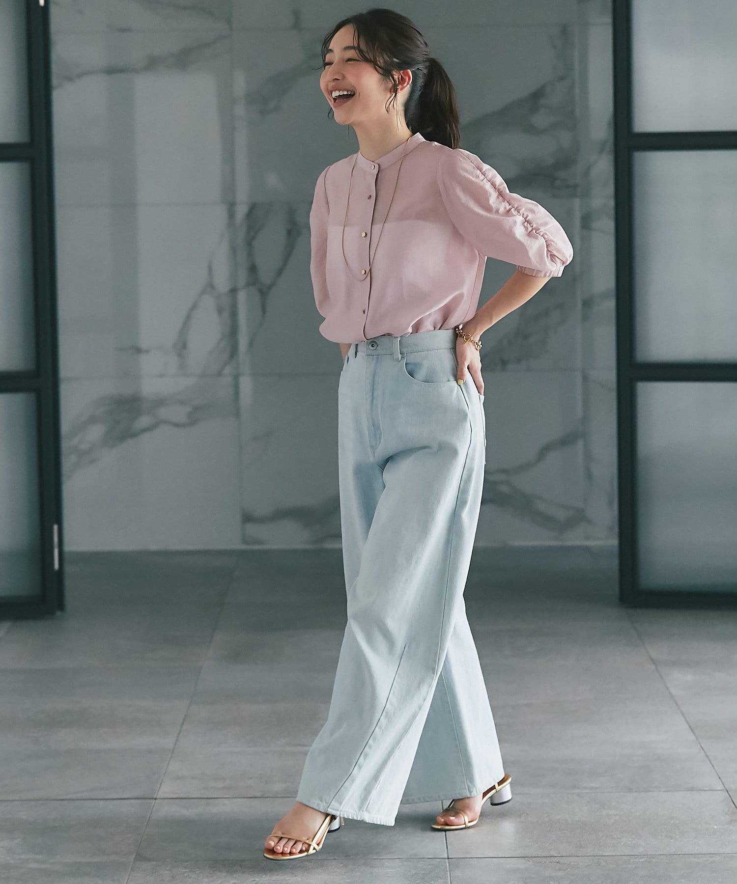 きちんと感のあるテーパードパンツやスカートと合わせてオフィスコーデに。