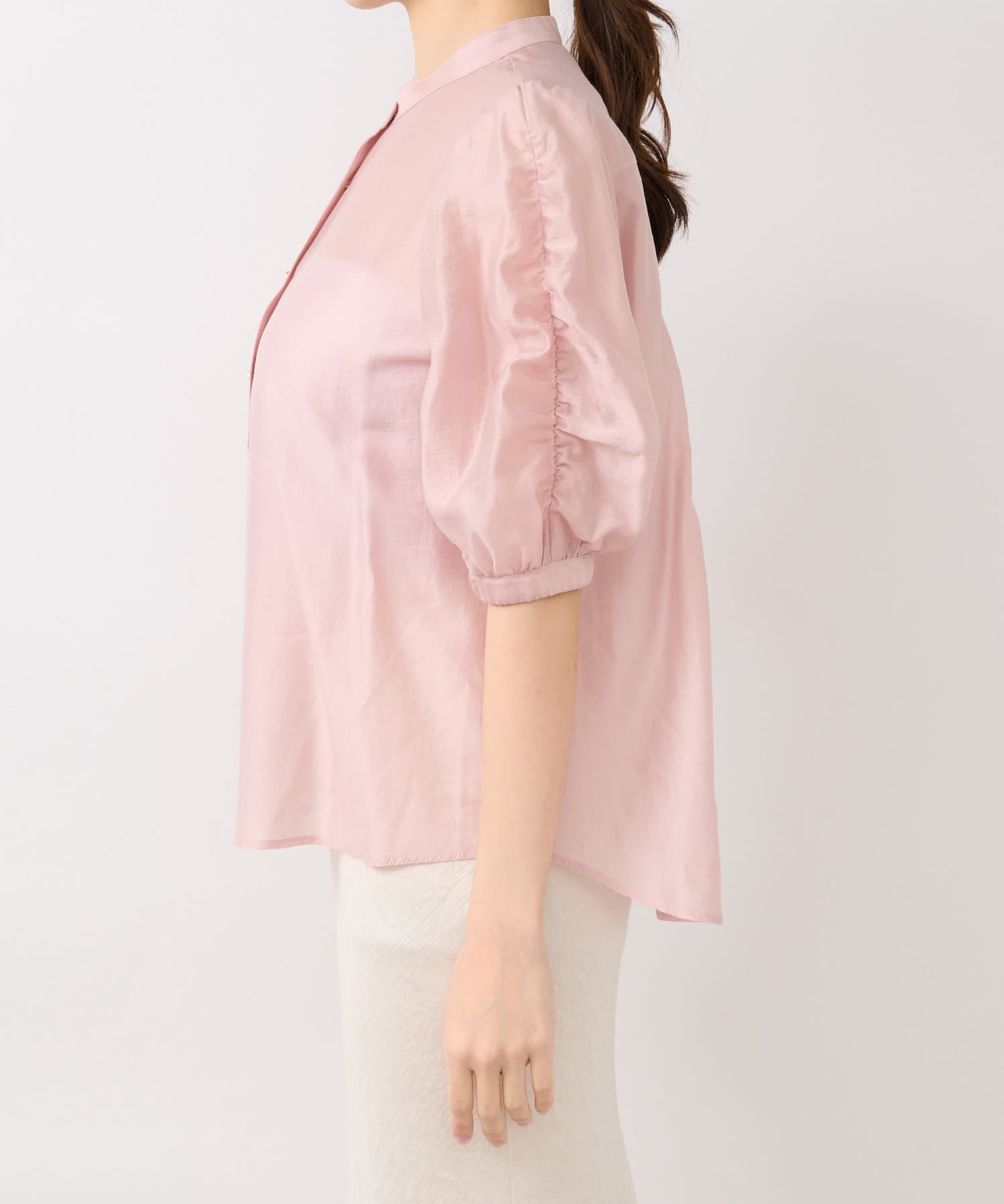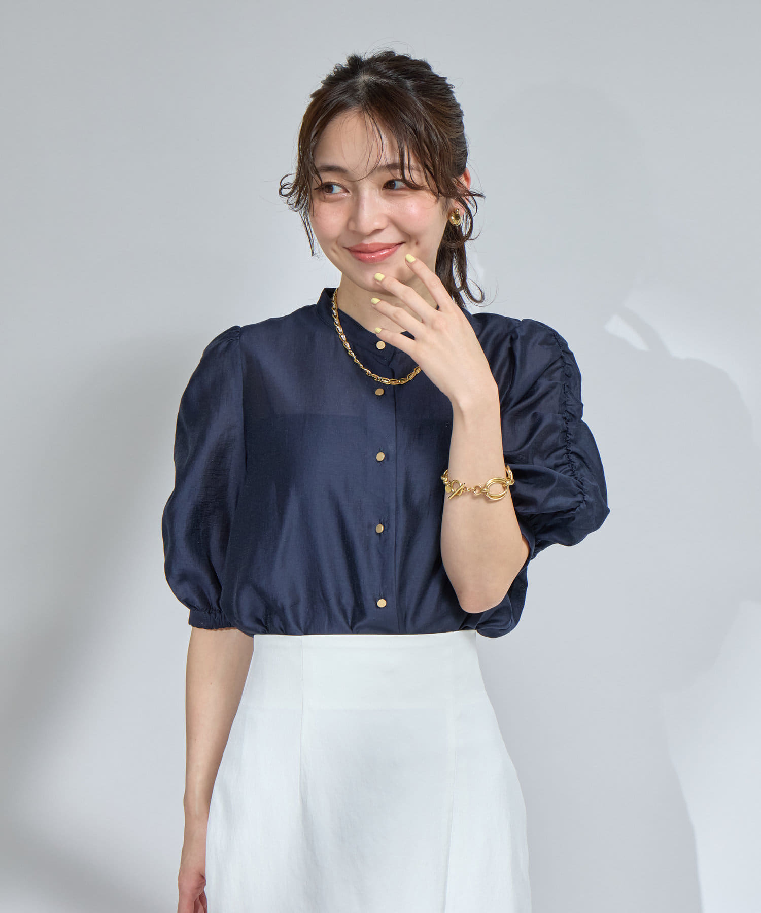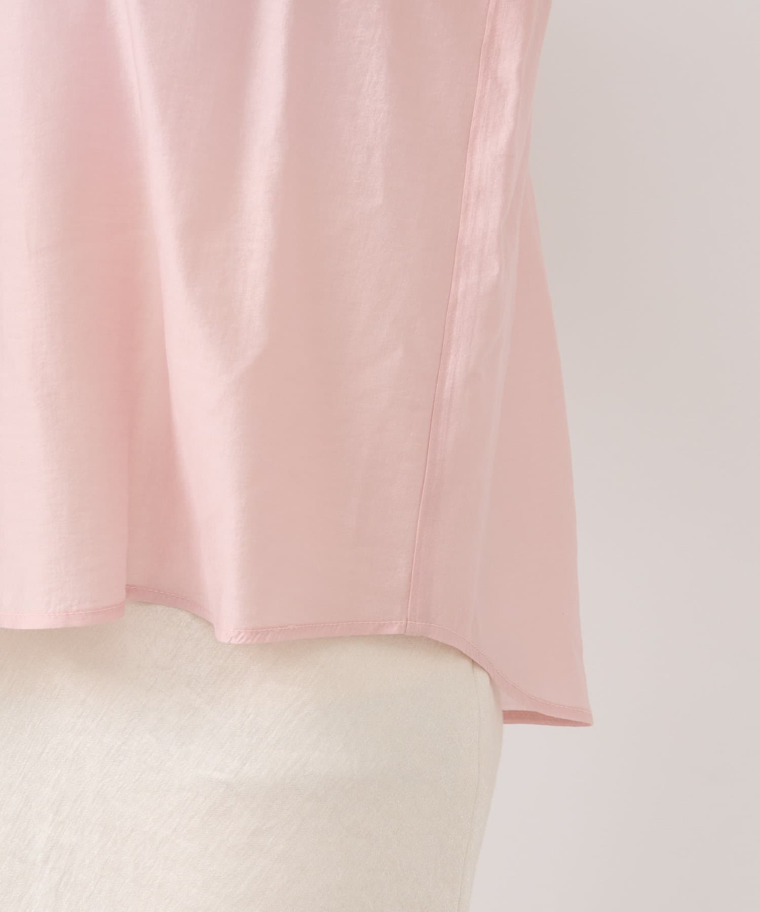 光沢感と、上品なドレープが女性らしさを最大限に引き立ててくれるブラウス