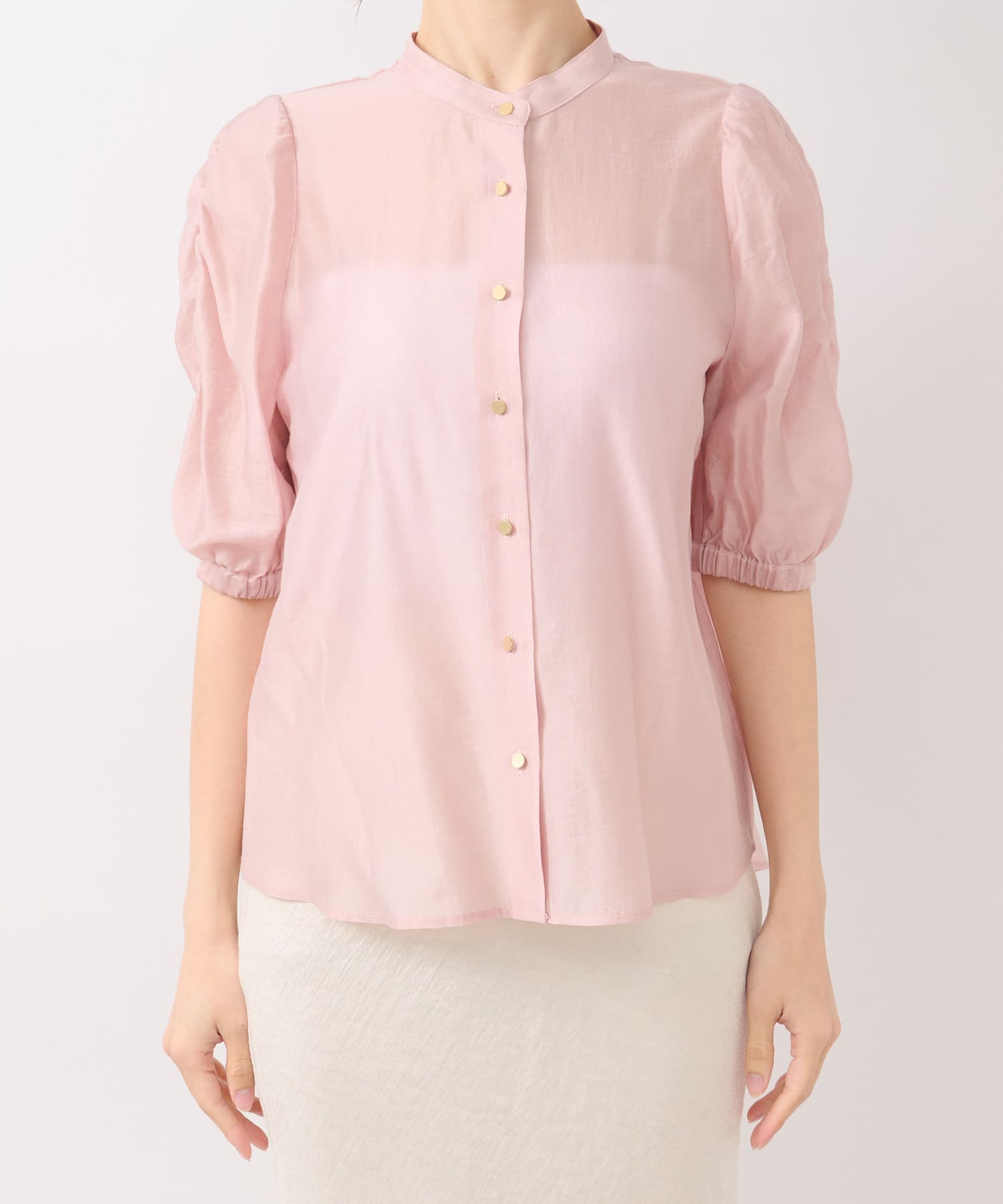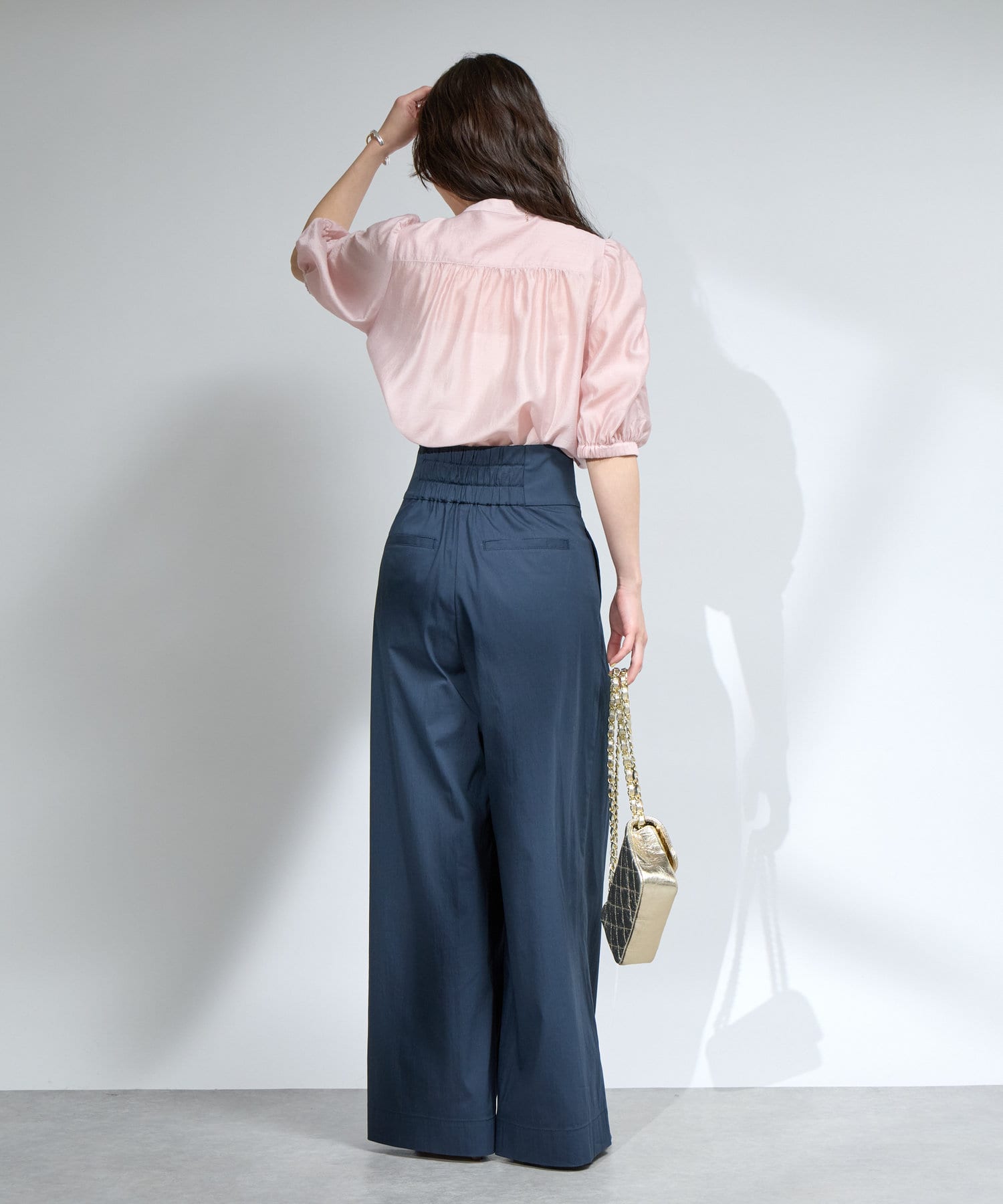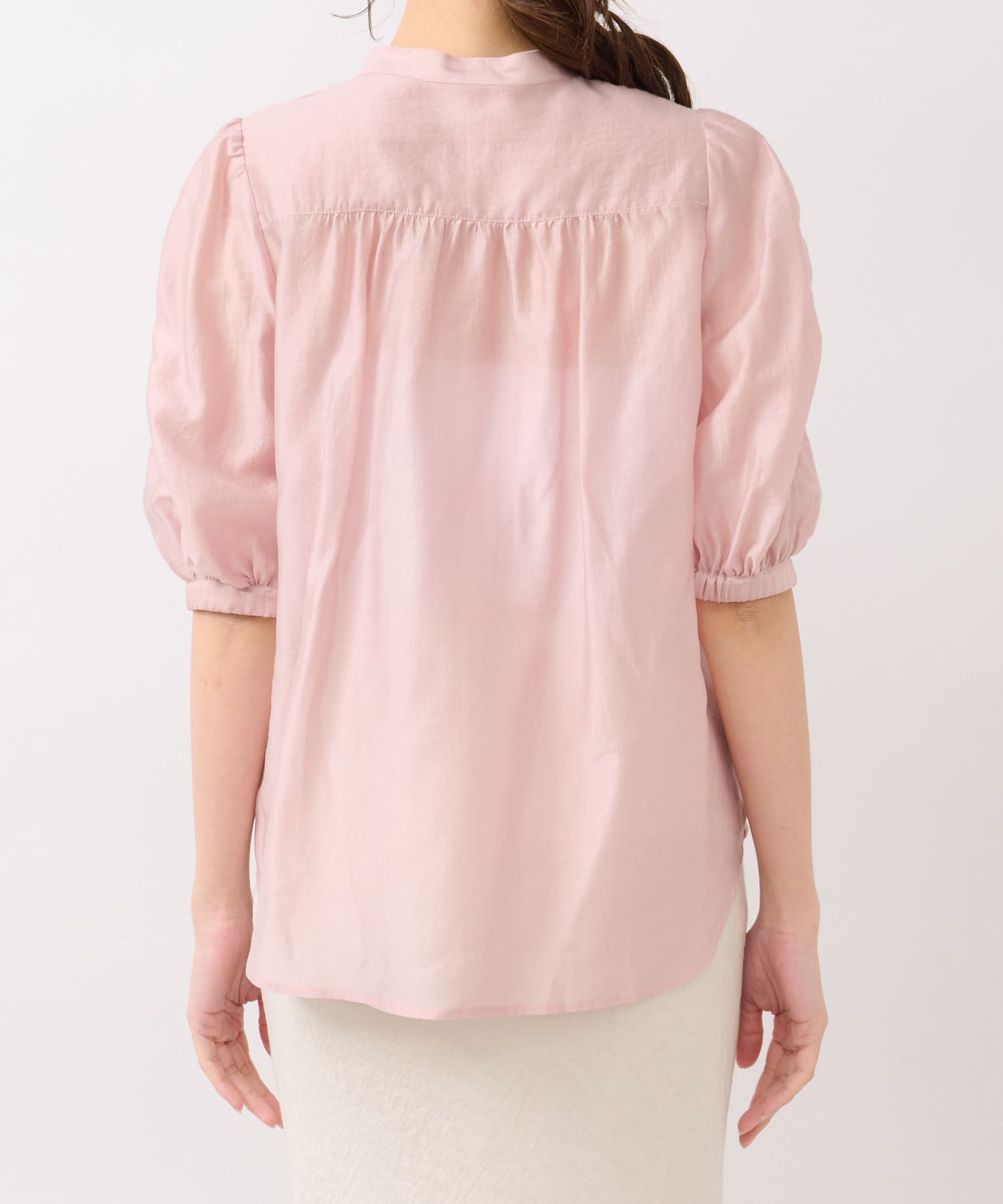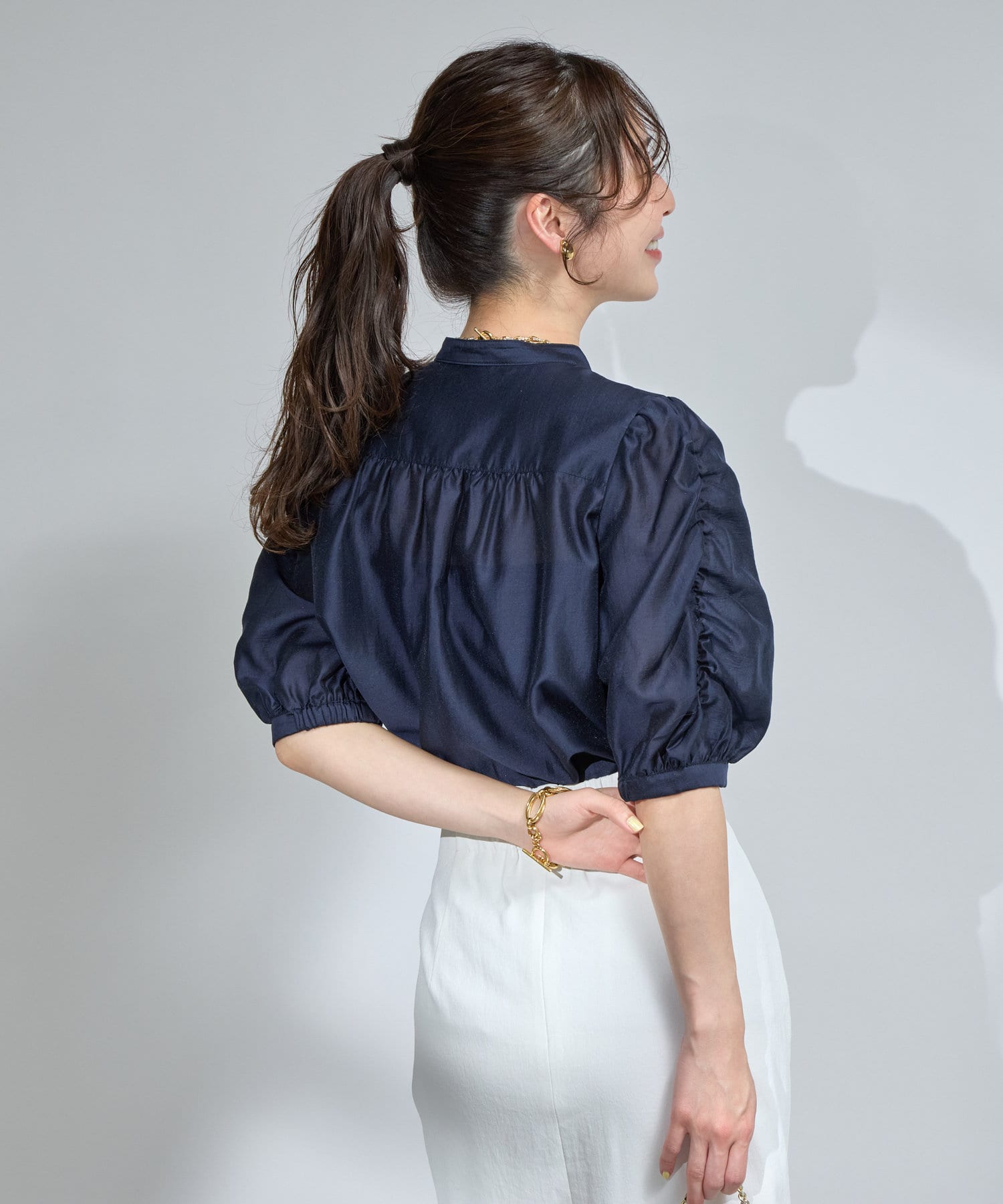 光沢感と、上品なドレープが女性らしさを最大限に引き立ててくれるブラウス