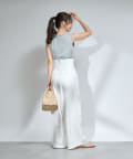 デニムやワイドパンツと合わせてリラックス感のあるスタイルに。