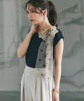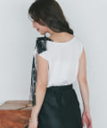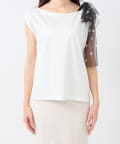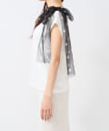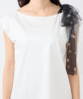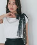 アシンメトリーなドットチュールが目を惹くデザイントップス。