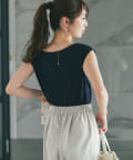 上品な印象のボートネックが、デコルテラインを美しく演出。
