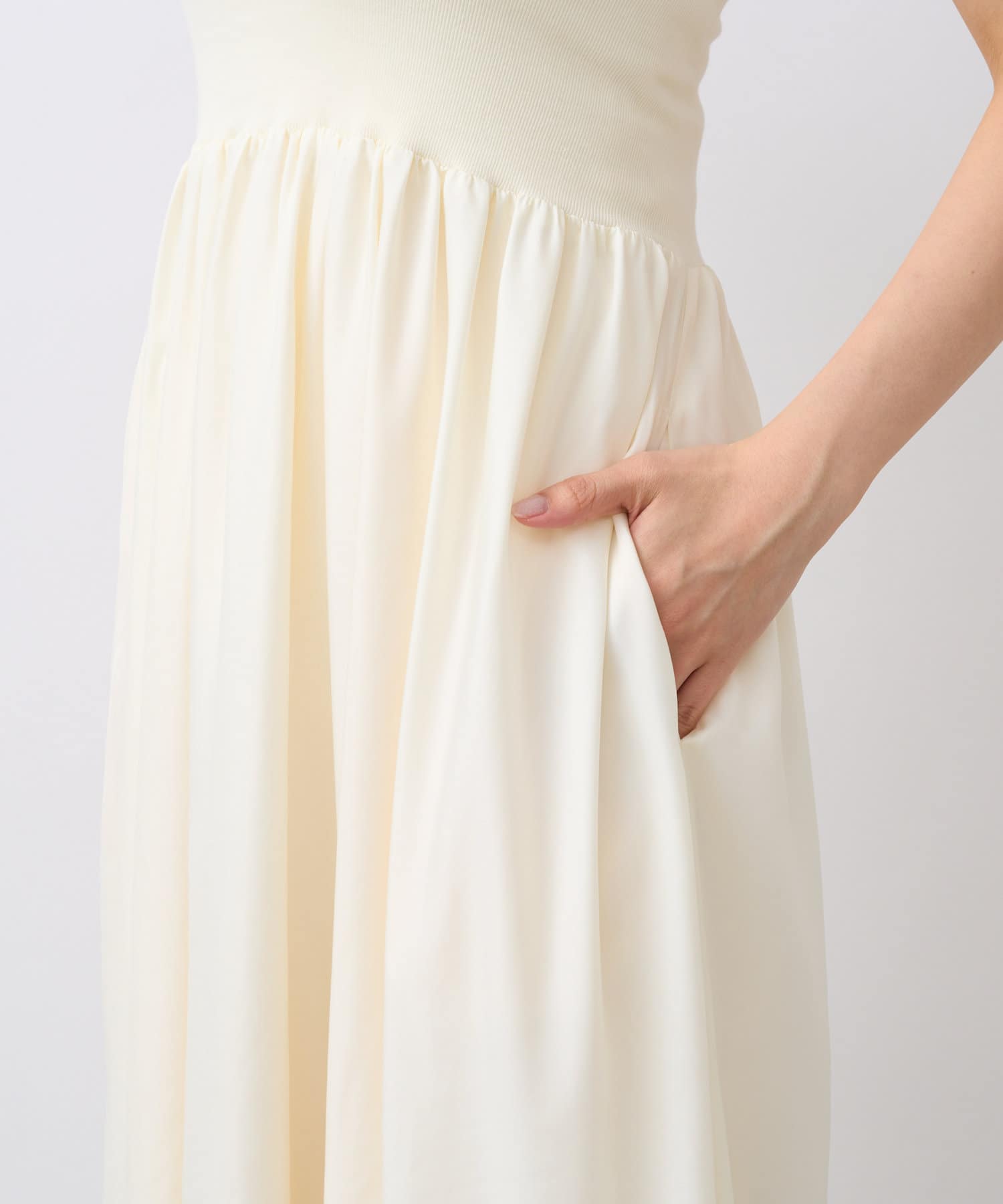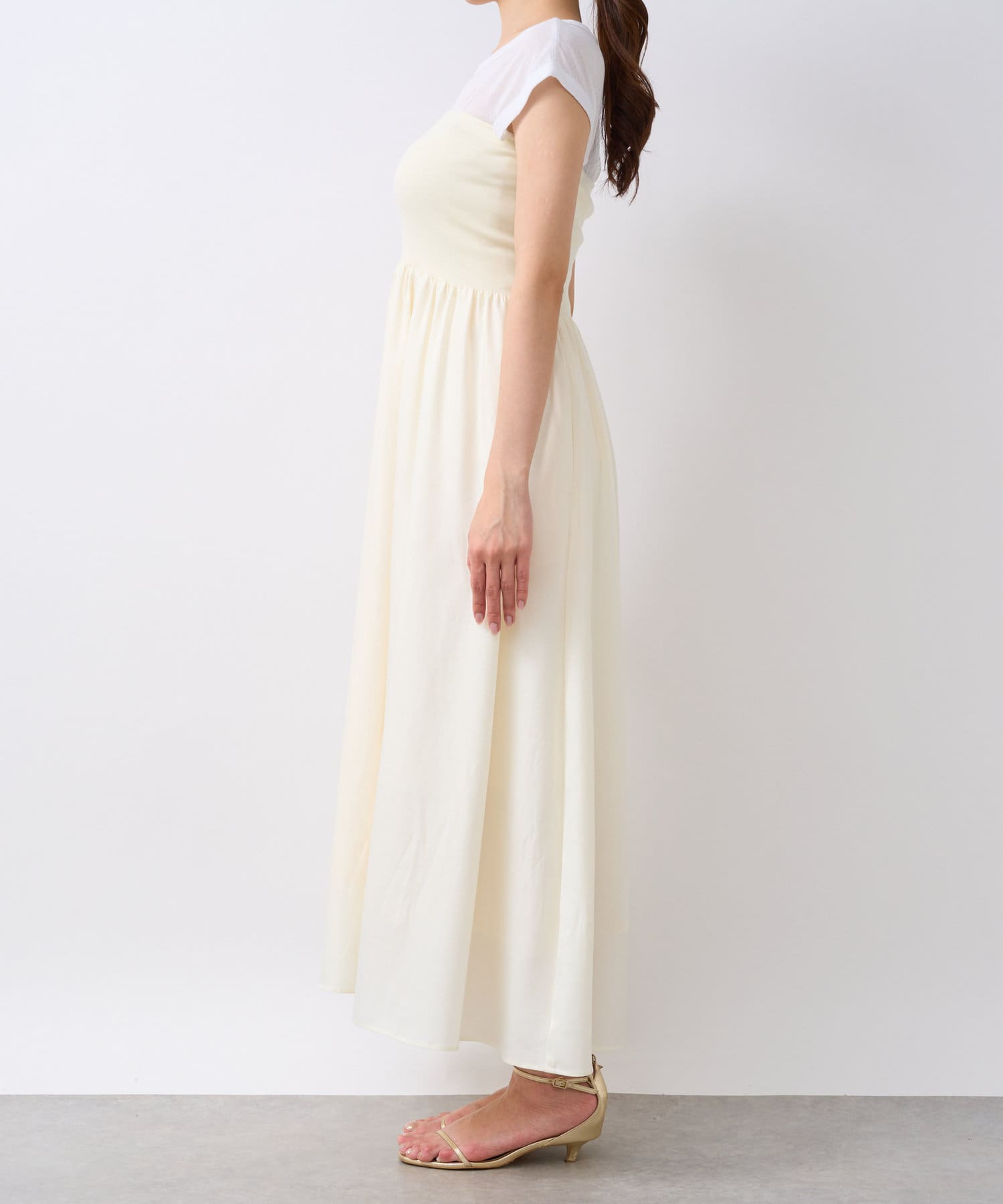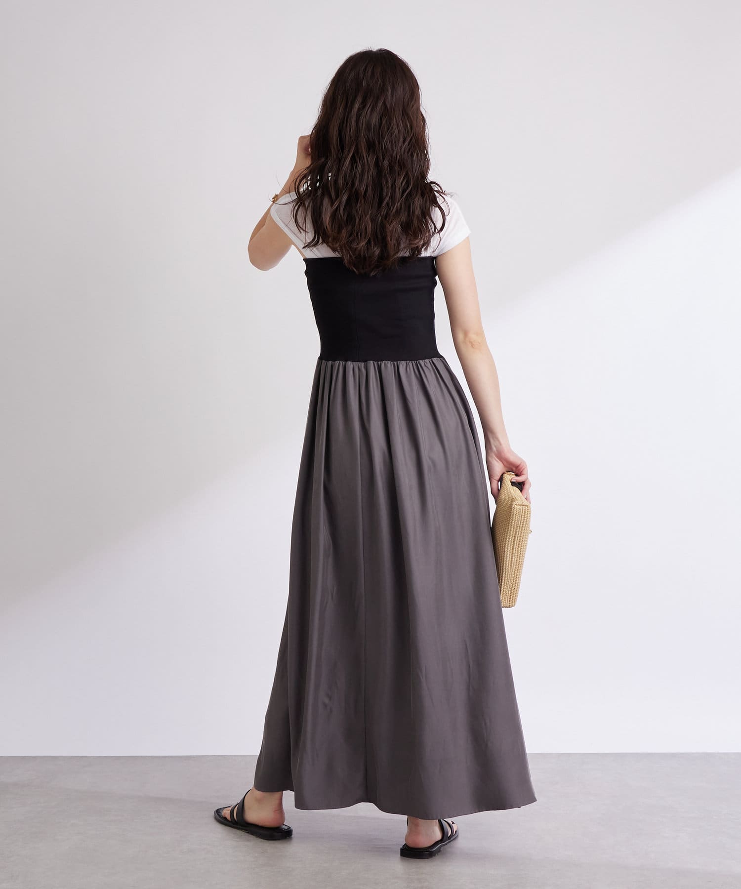 フィブリルなキュプラ素材がシーズンムードを高めてくれるベアトップワンピース。