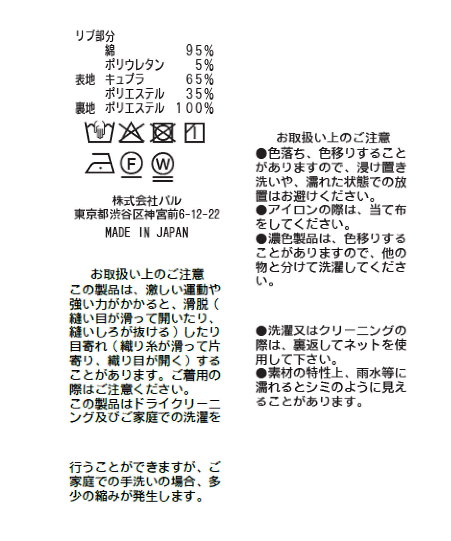 アイテム詳細 品番 LBZ1051509A0003 素材 リブ部分:綿95%ポリウレタン5%