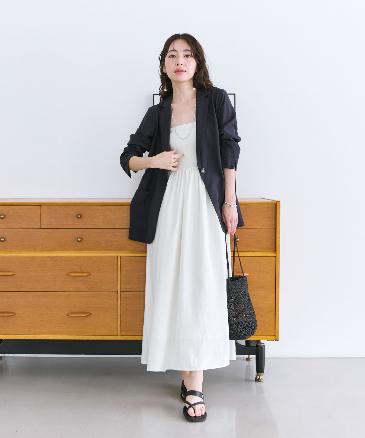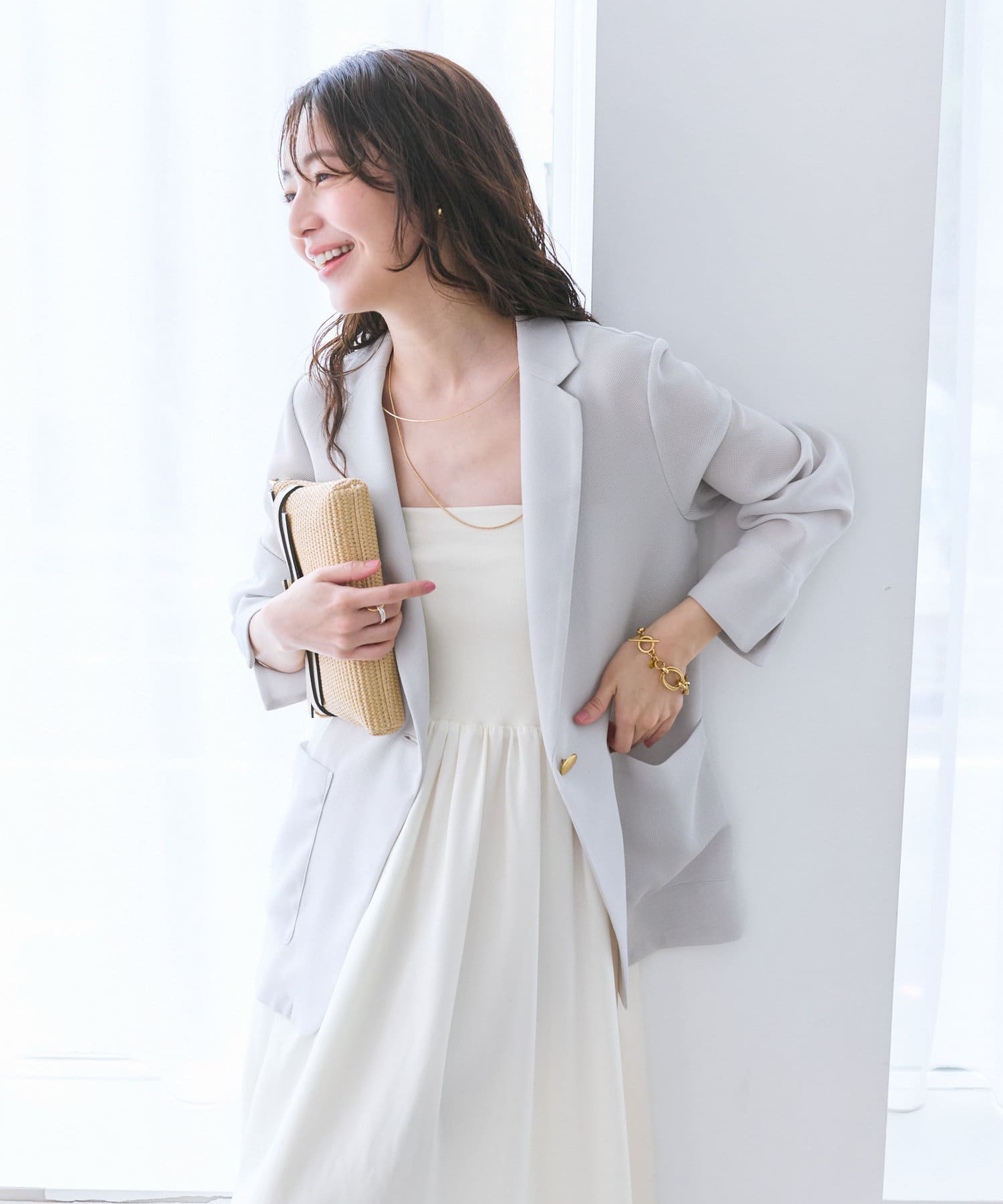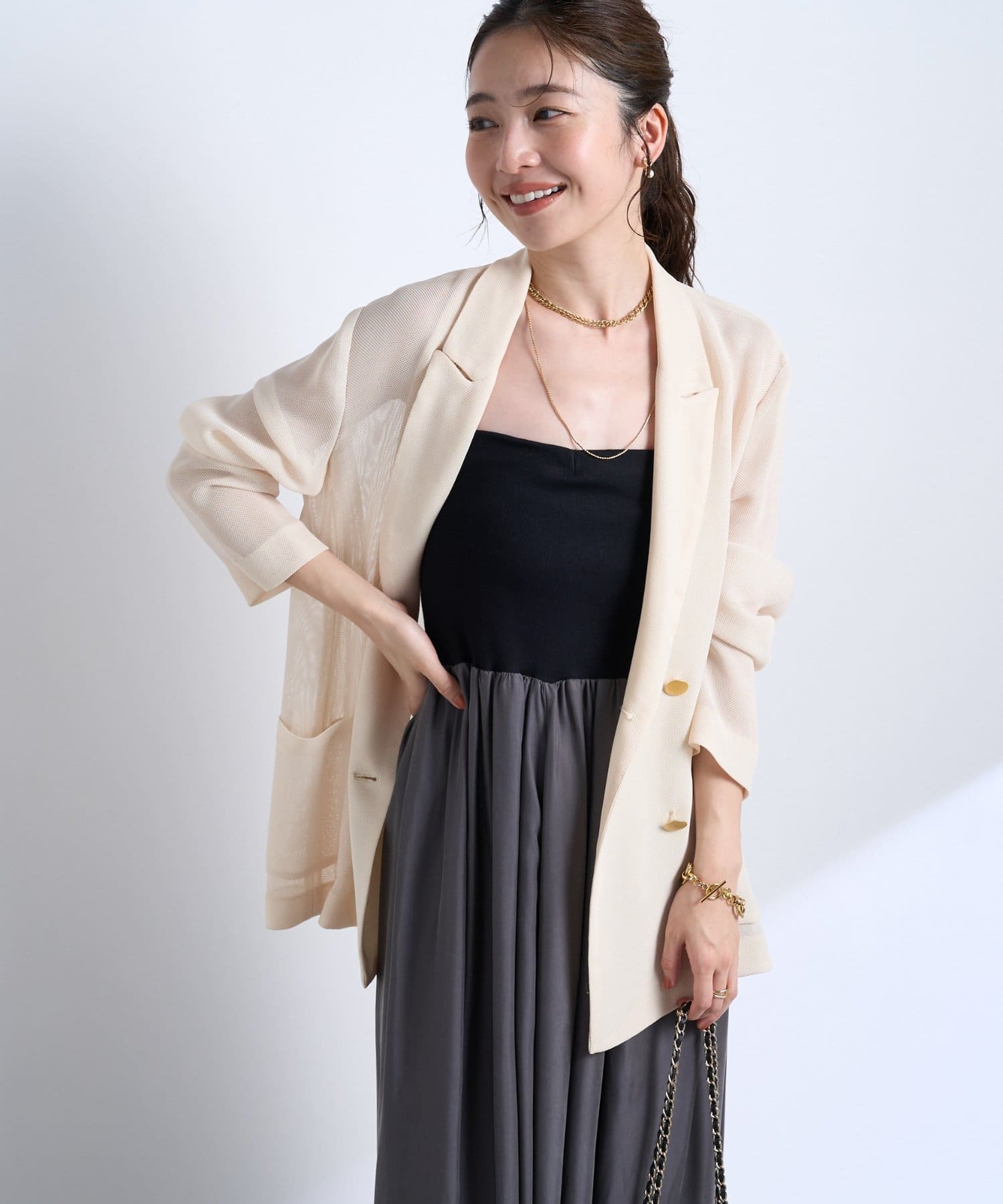 一枚できるのはもちろん、フレンチのシアーカットソーやTシャツ合わせでカジュアルに着るのがお勧めです。