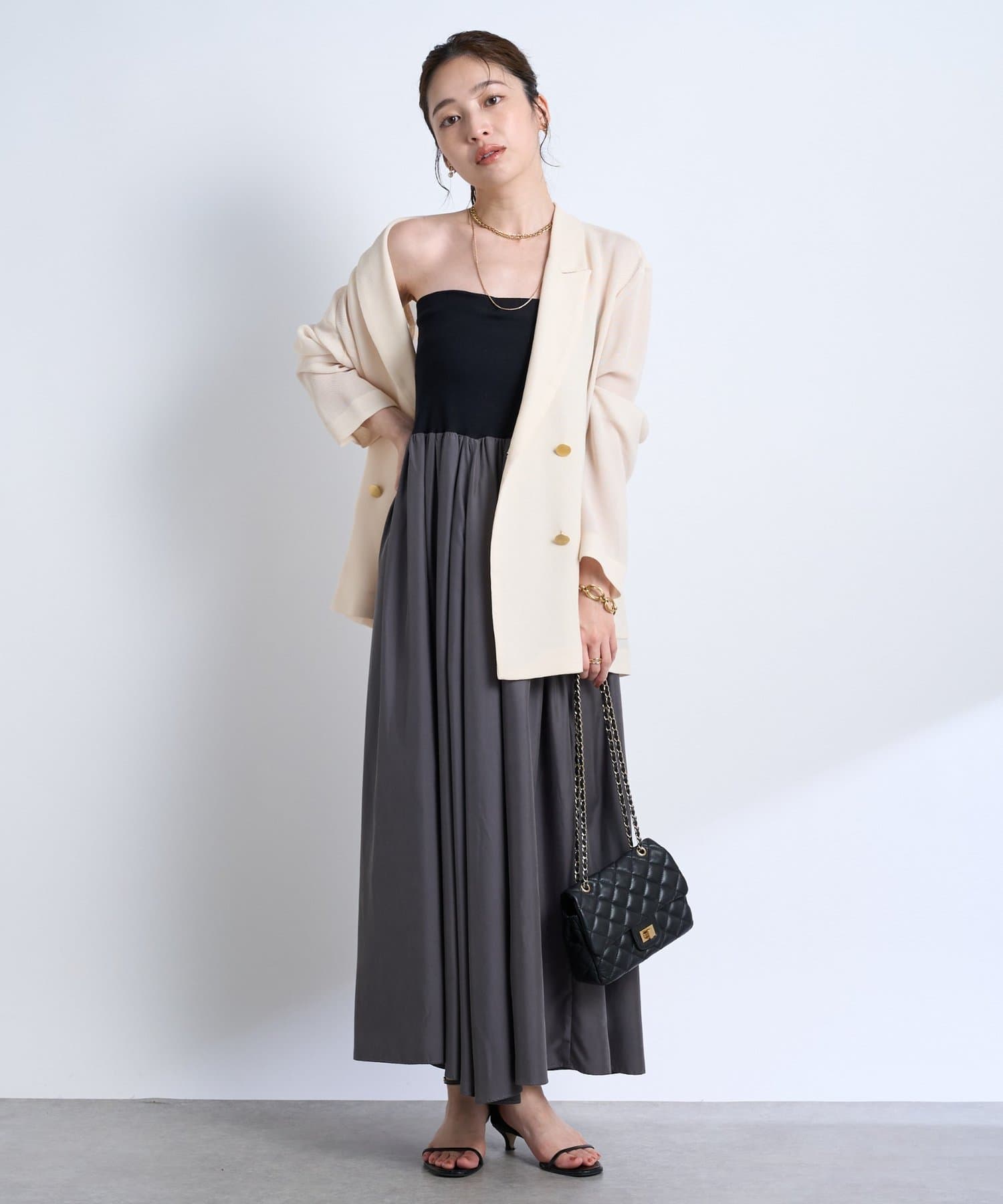 即おしゃれ度UP!ベアトップギャザーワンピース
