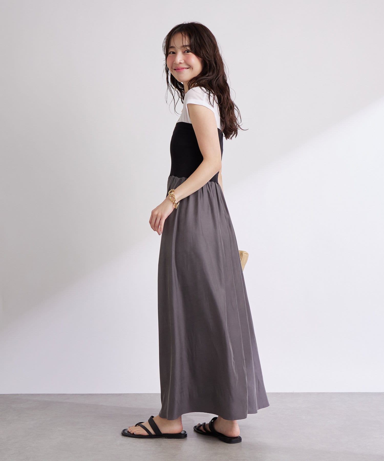 バスト部分はテレコのカットソー素材を使用しフィット感がありながらも上端はゴム仕様で安心な着用感に仕上げました。