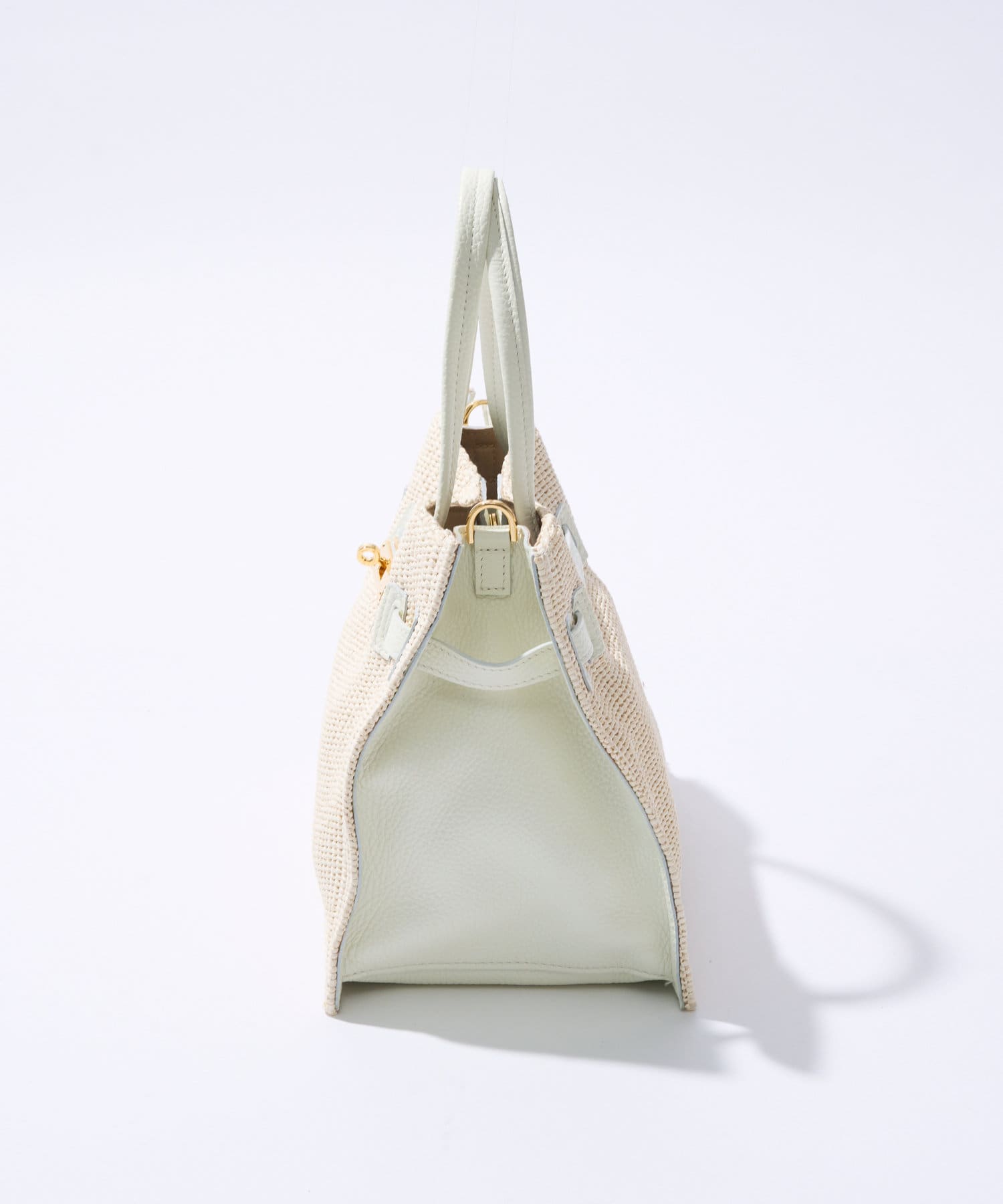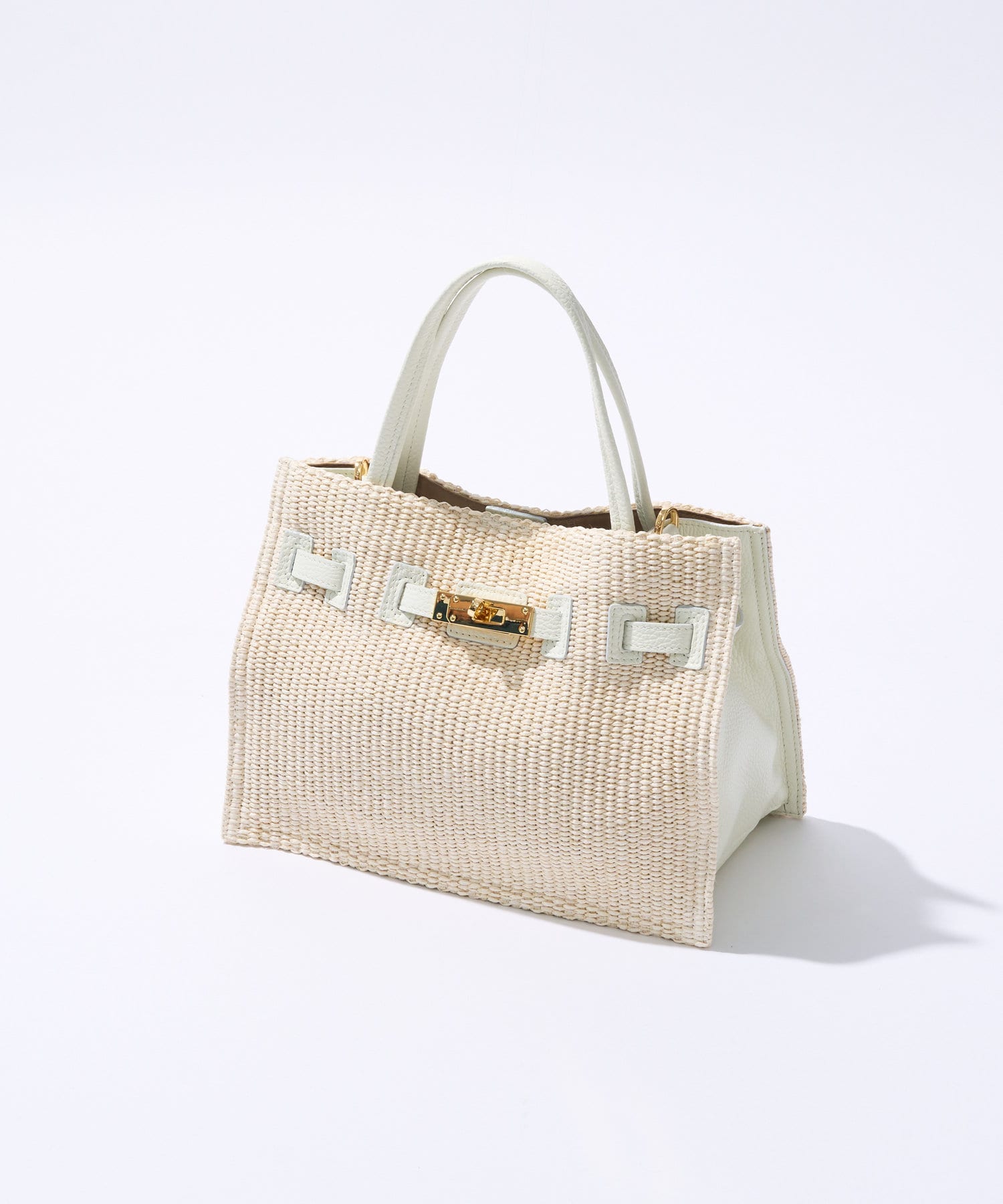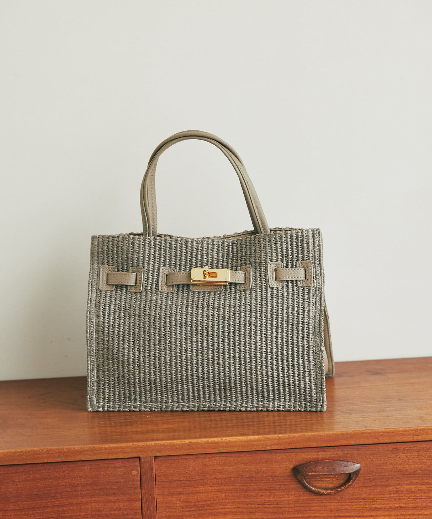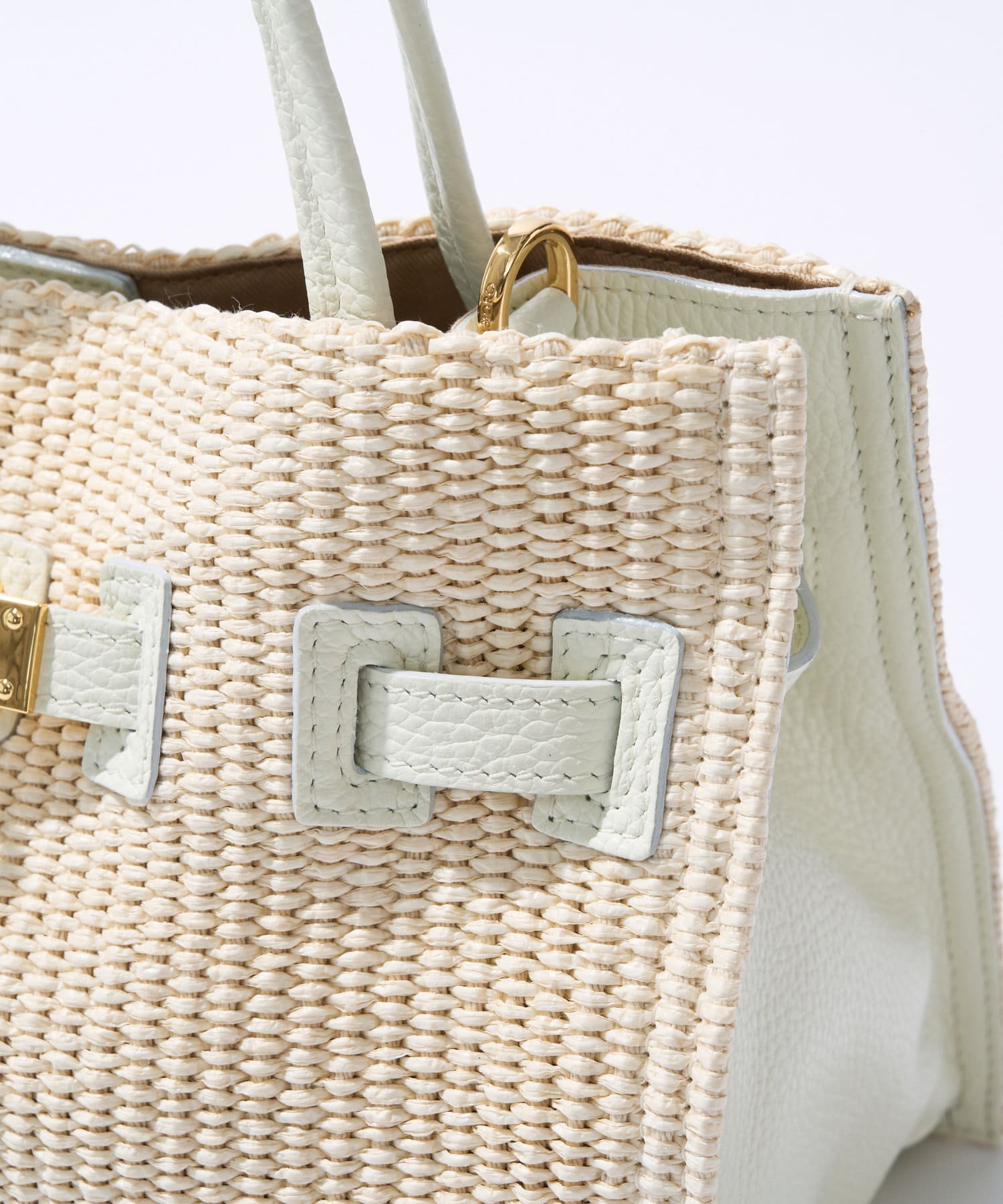 上品な風合いが魅力のラフィア調シートを使用したトートバッグ。
