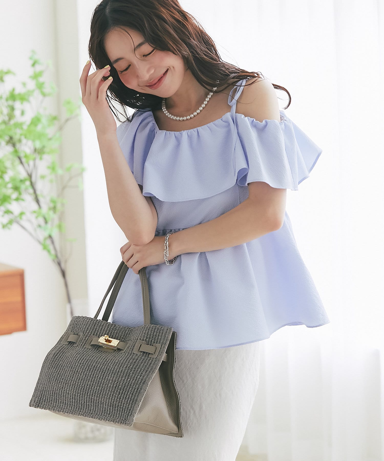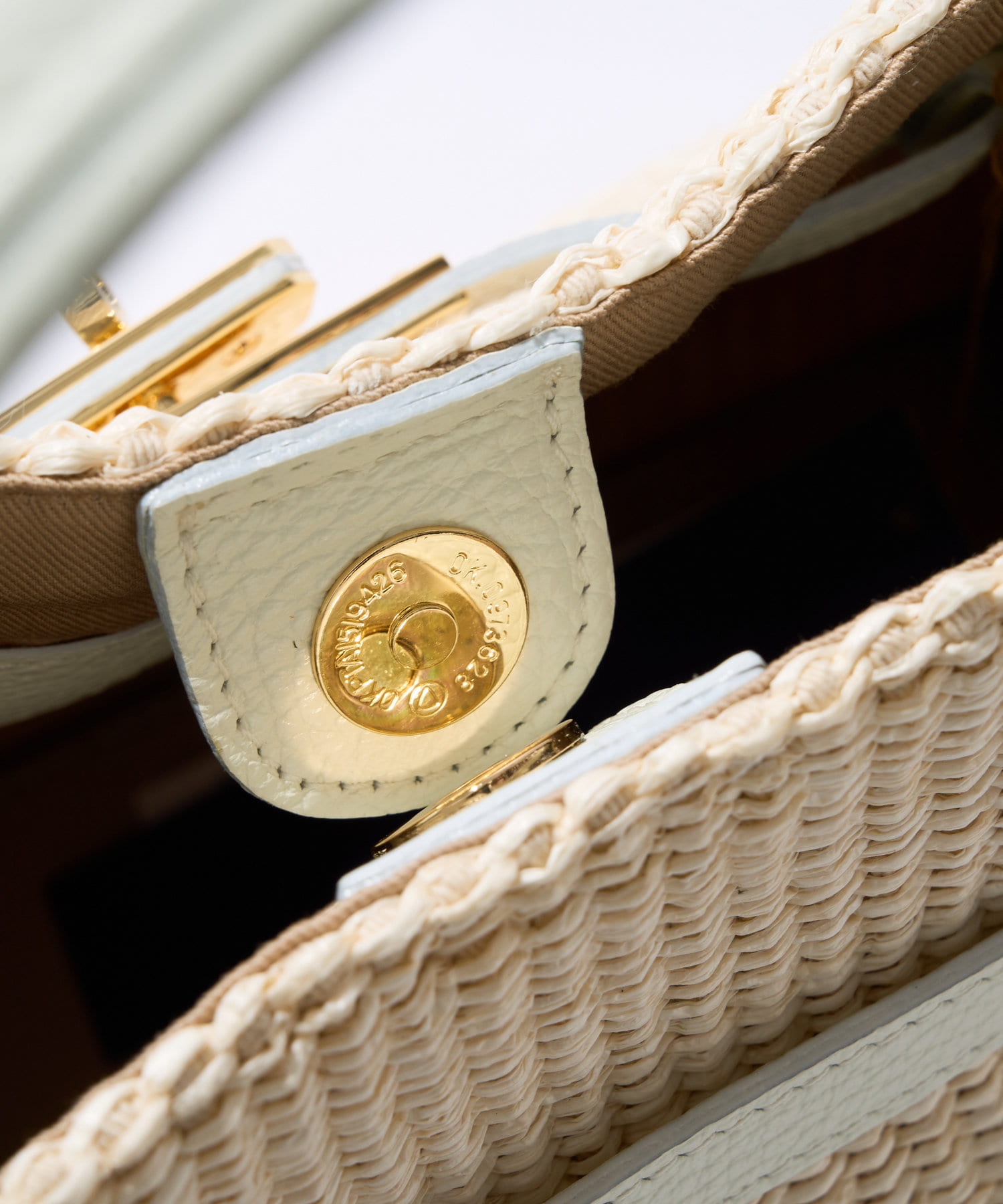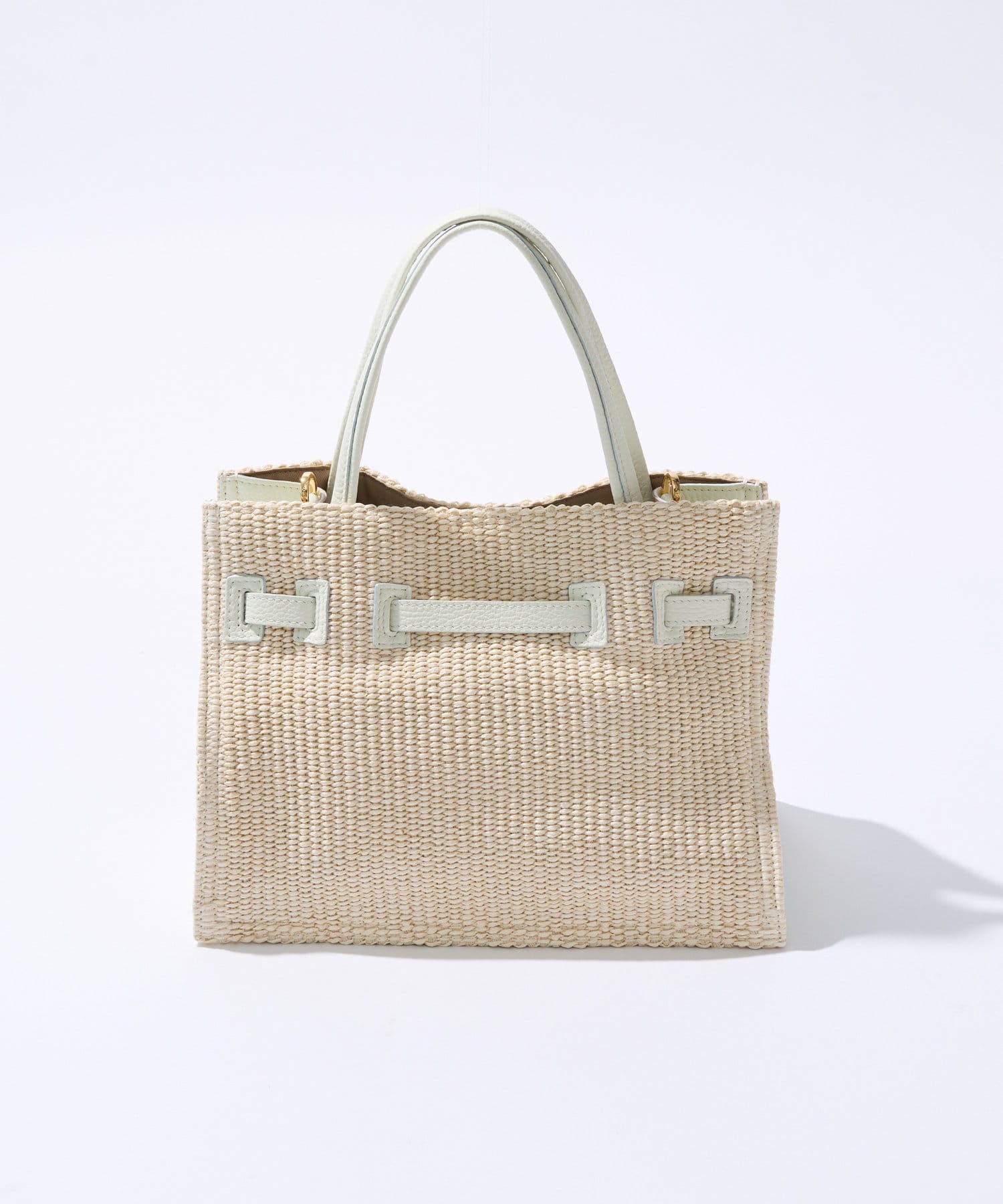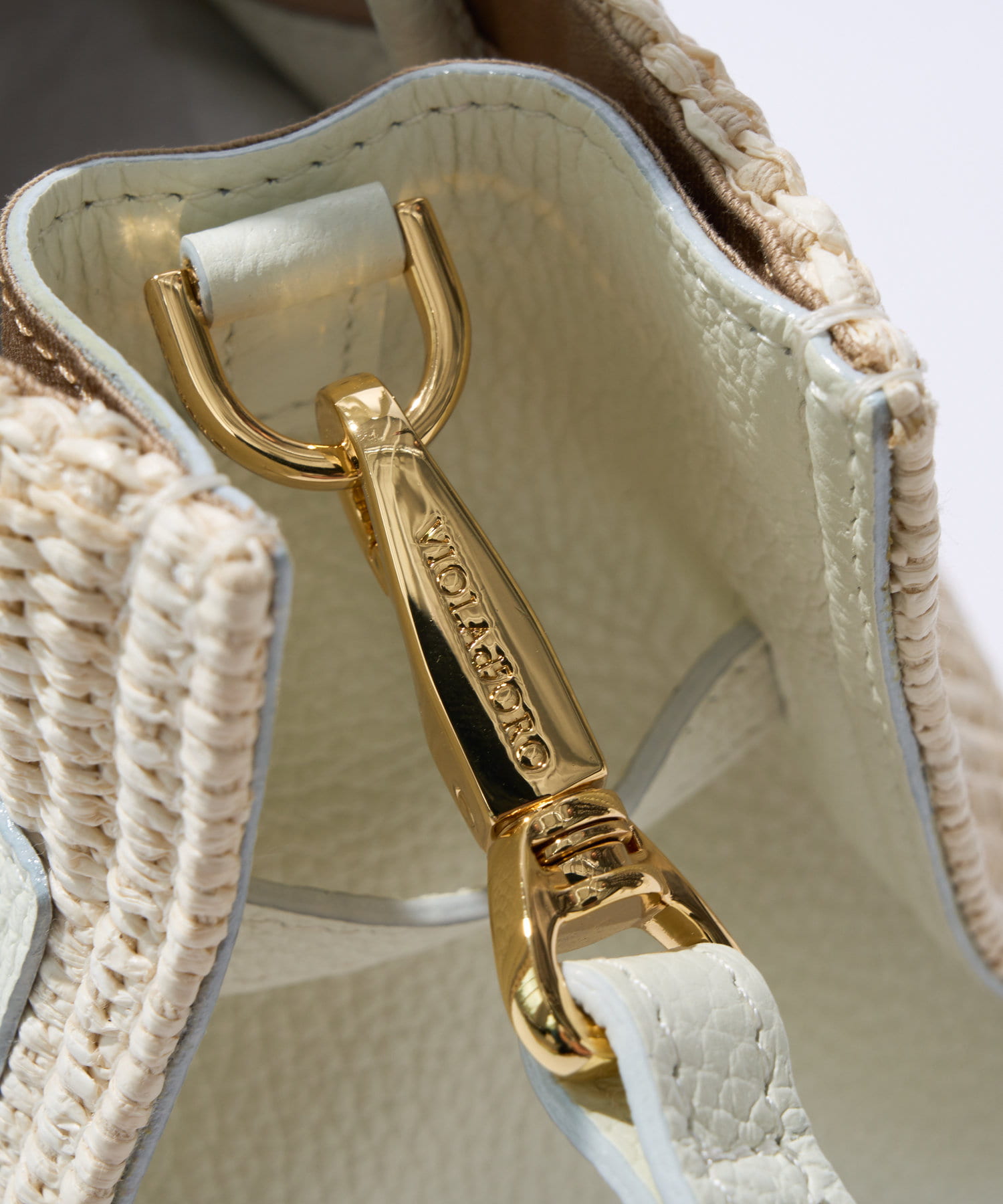 【ヴィオラドーロ】ラフィア調シートxレザートートバッグストラップ付