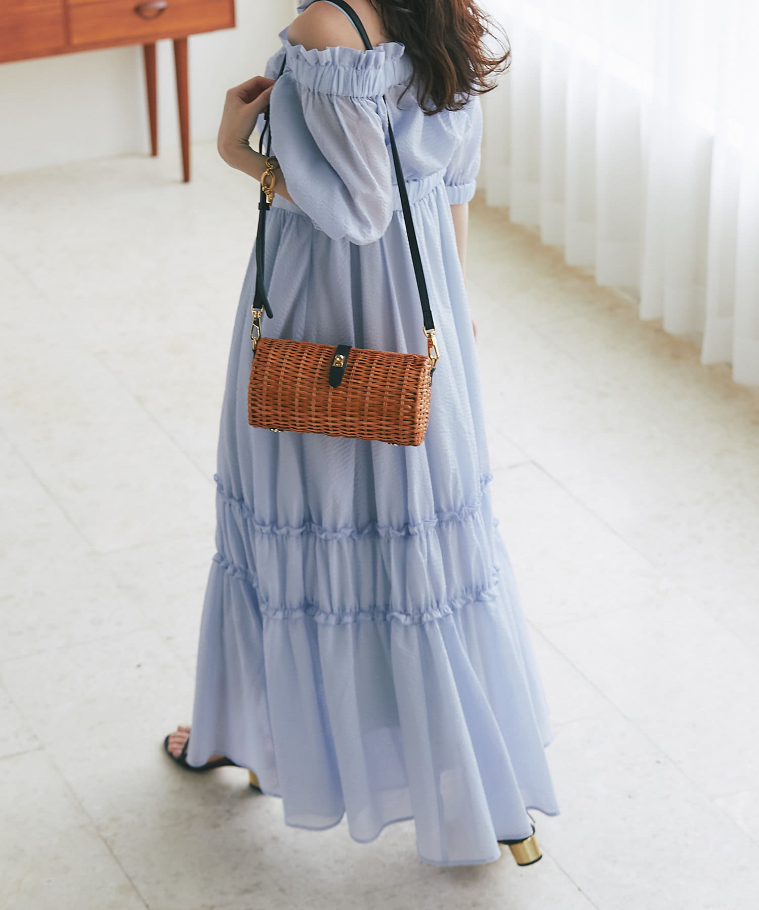 【ヴィオラドーロ】スプリットラタン筒形ショルダーバッグ