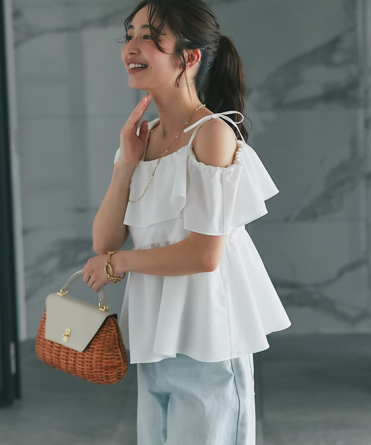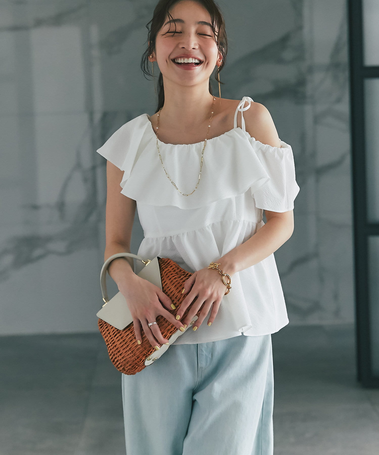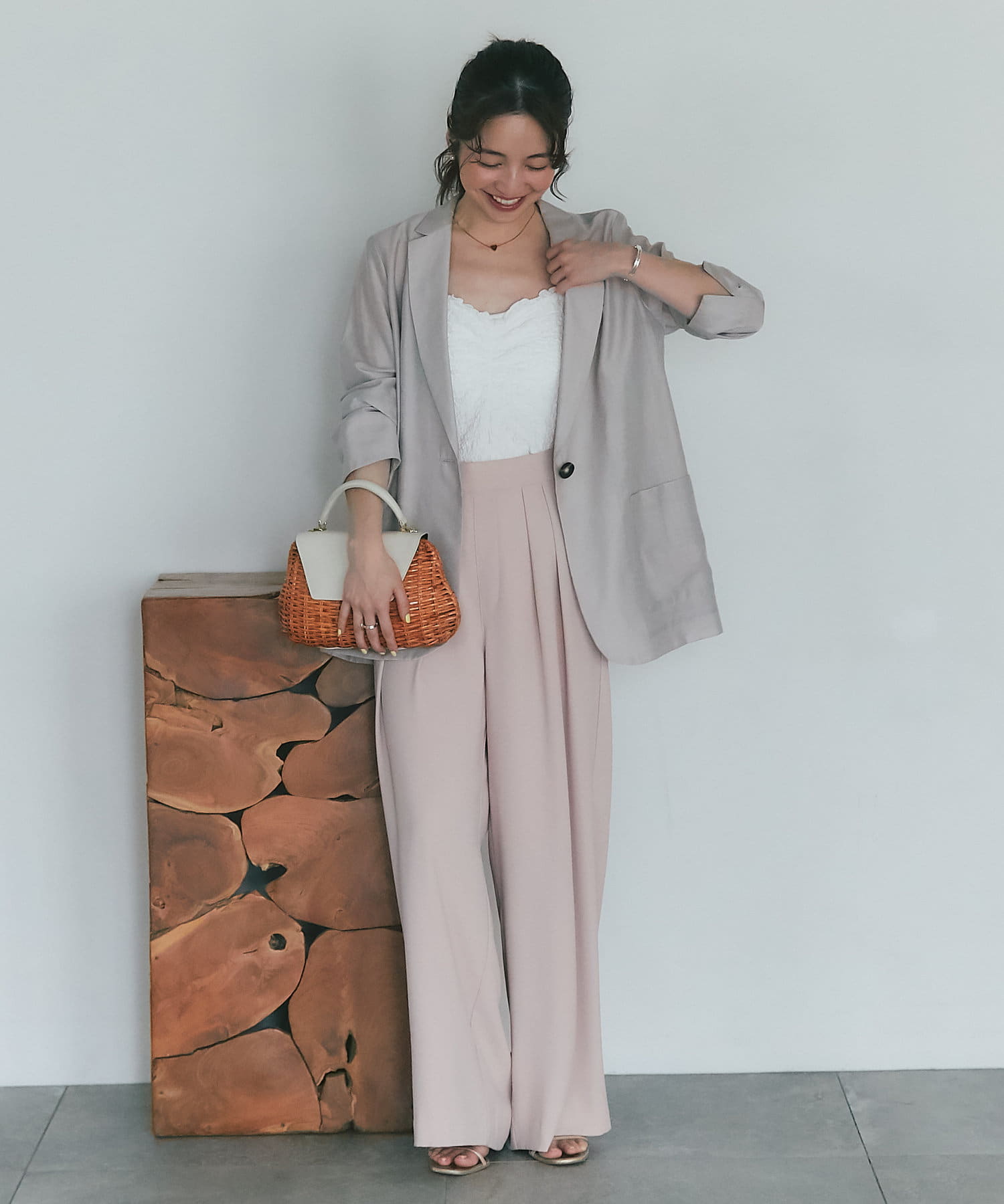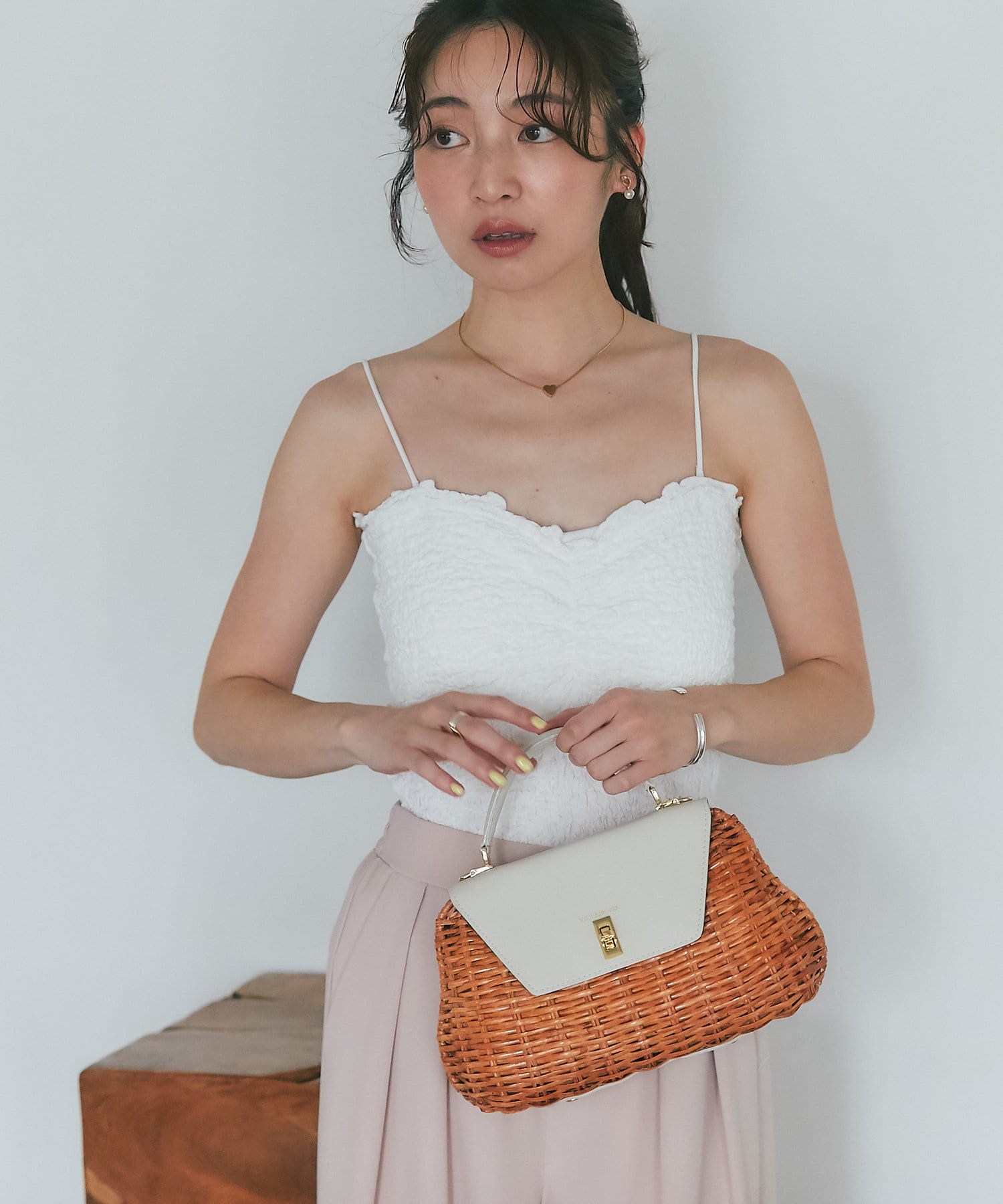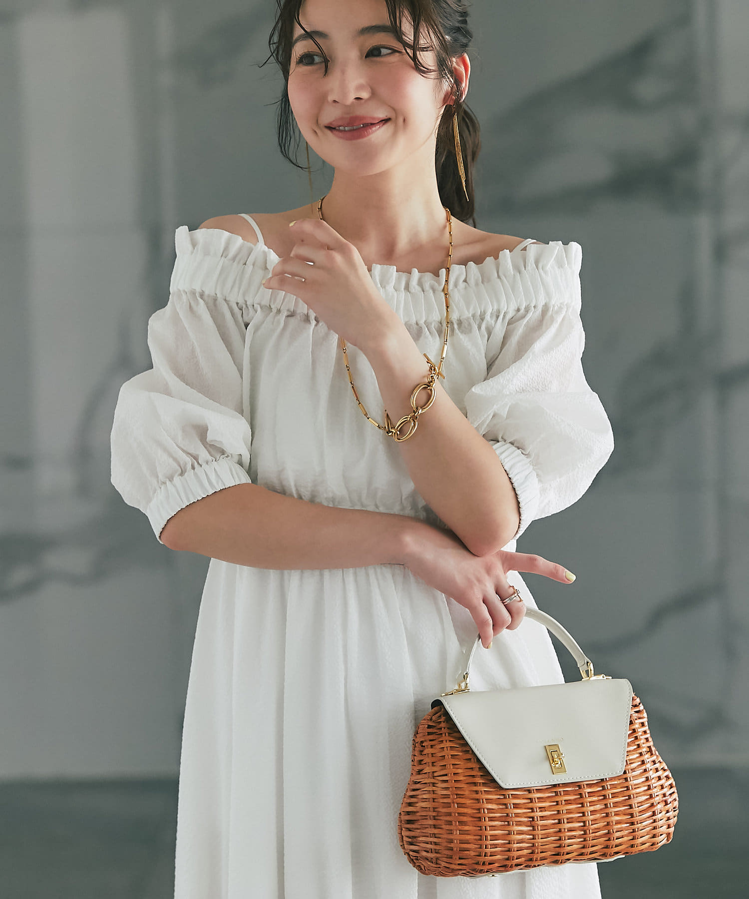 天然素材のカジュアル感がありながらも、上品でフェミニンな印象に仕上がっているので幅広いシーンでお使い頂けます。