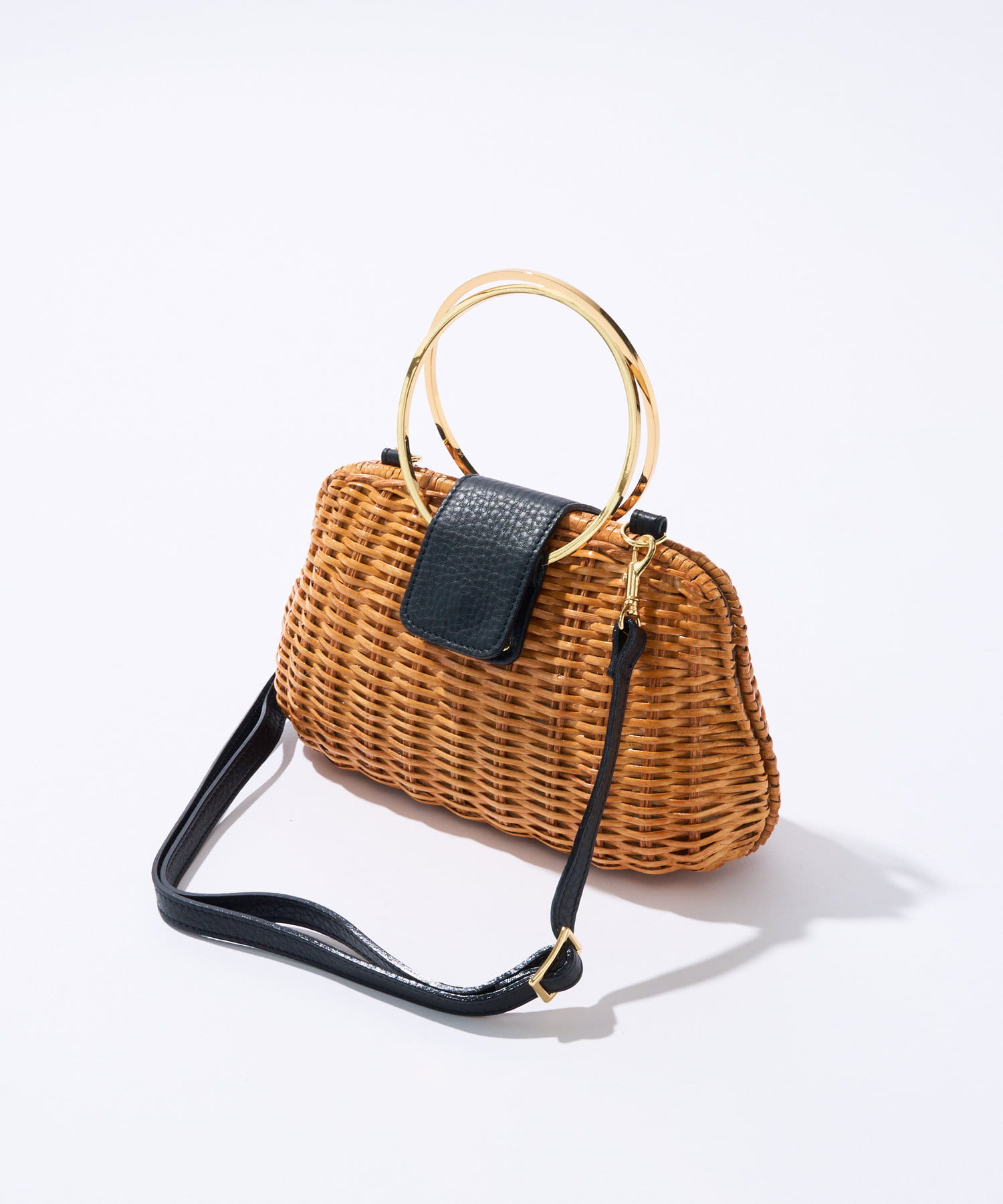 【ヴィオラドーロ】スプリットラタンゴールドハンドルバッグ