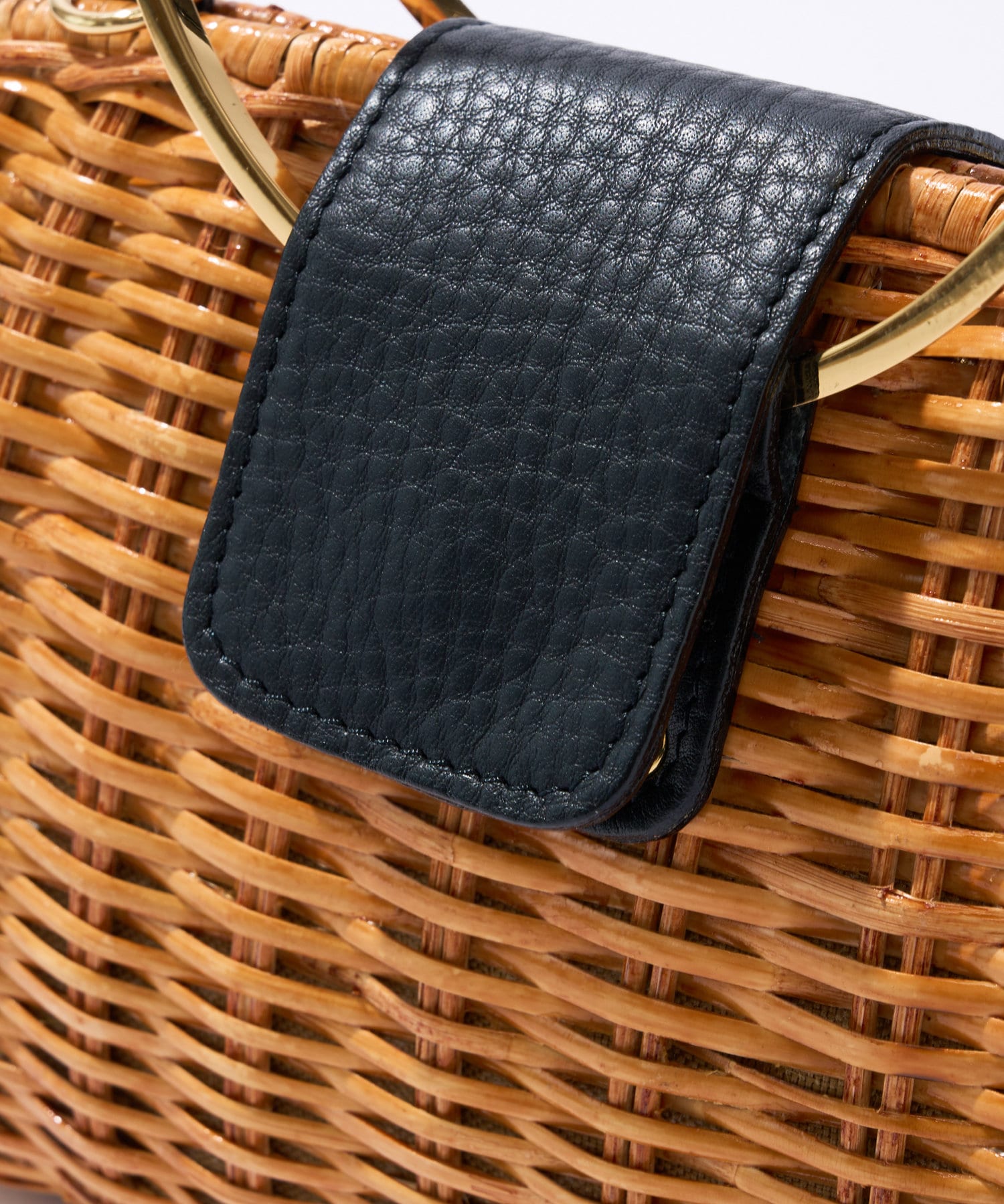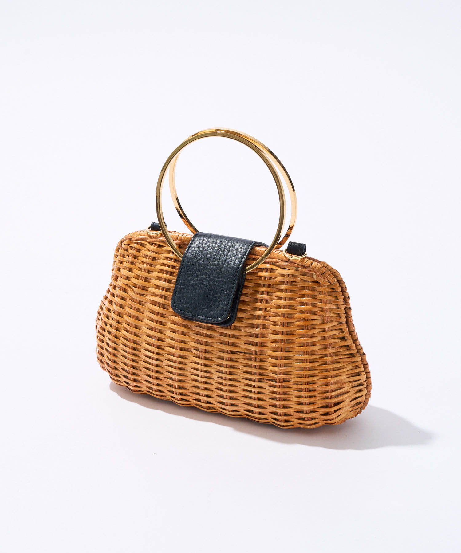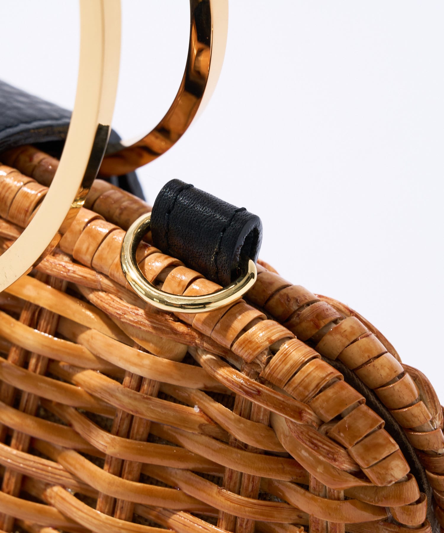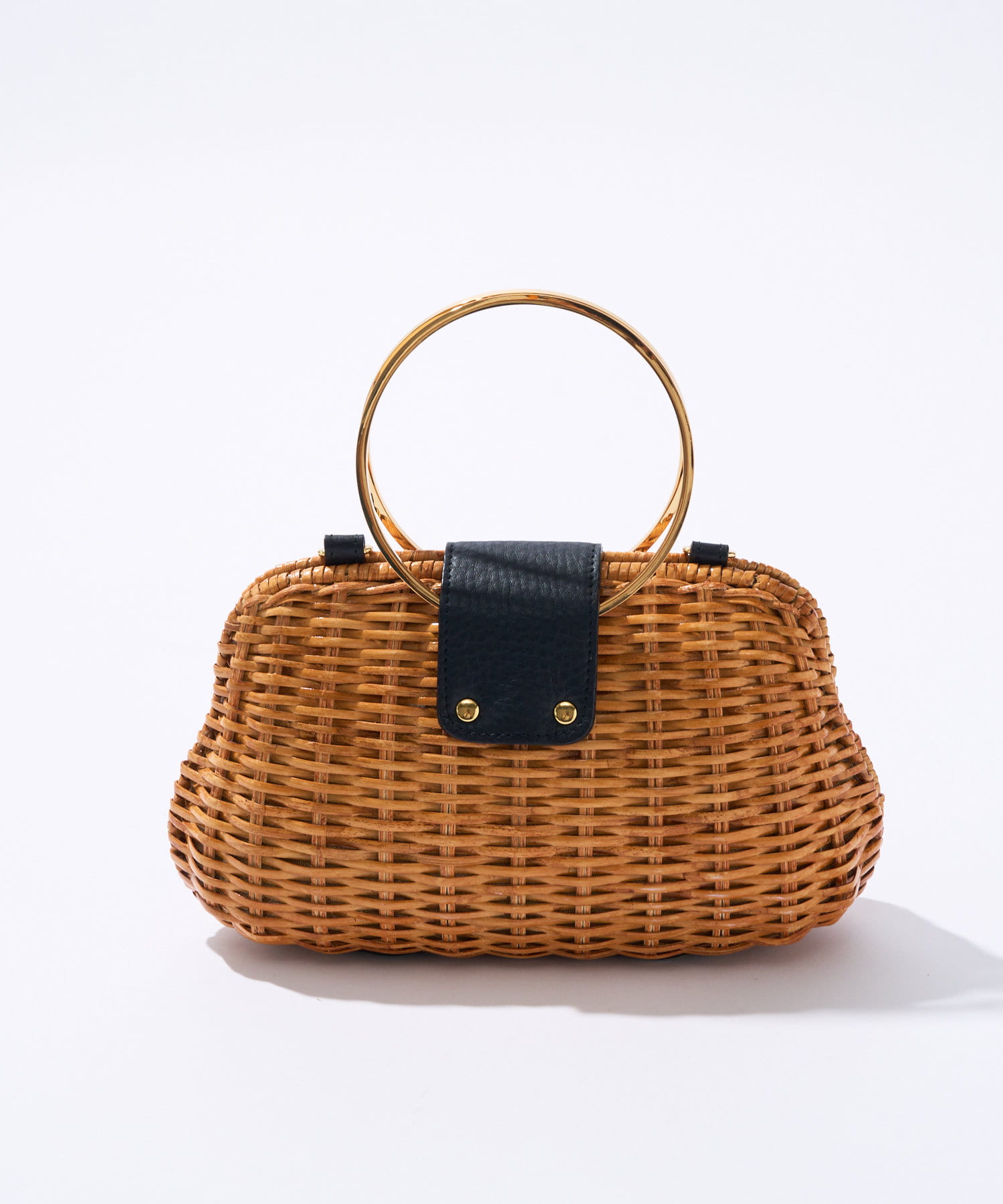 天然素材スプリットラタンに、ゴールドのリングハンドルとレザー使いが上品な大人のためのカゴバッグです。