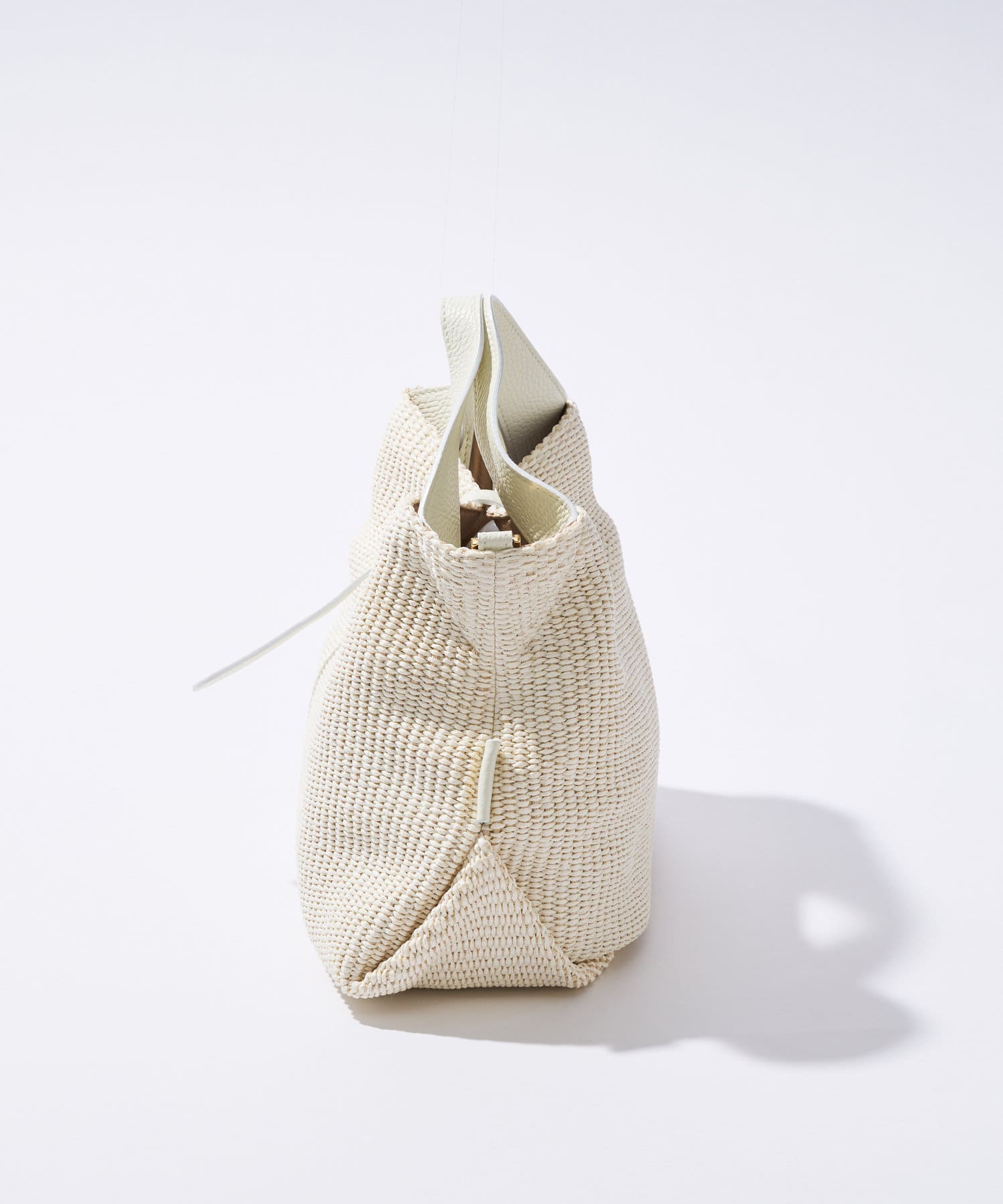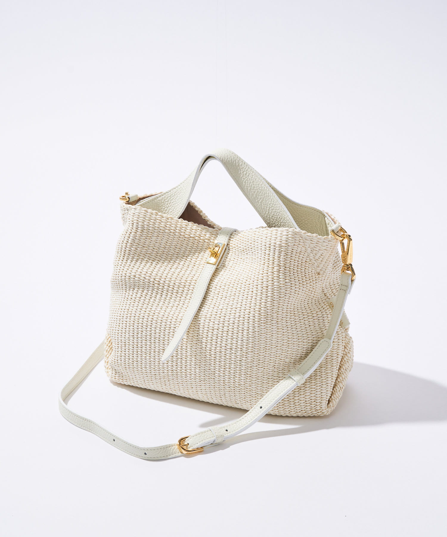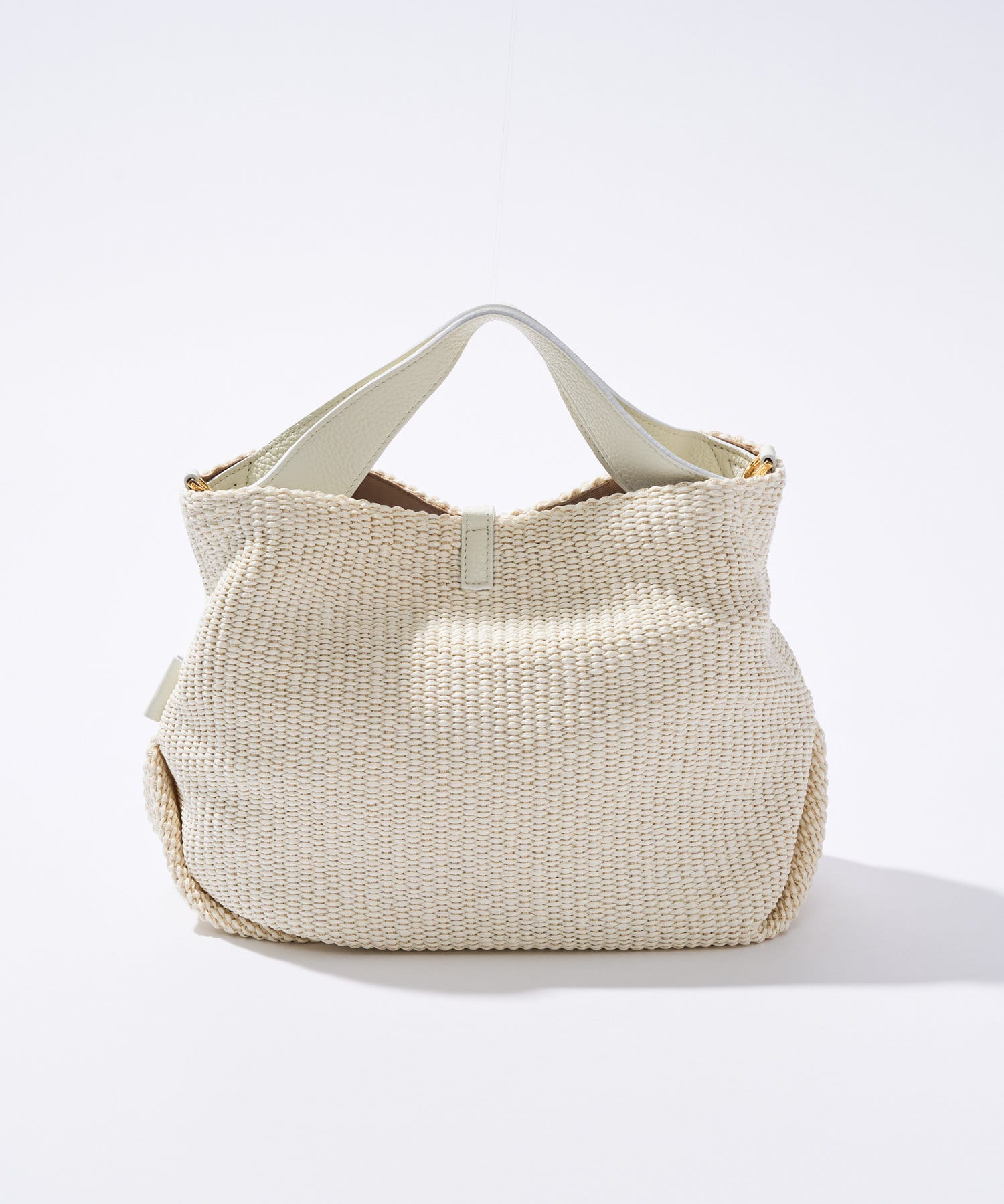 上品な風合いとカラーが魅力のイタリア製のラフィア調シートを使用したかごバッグ。